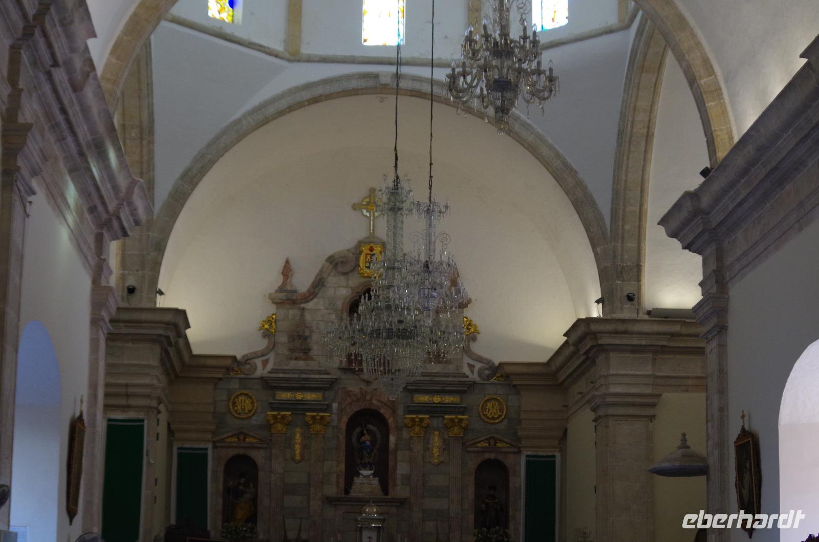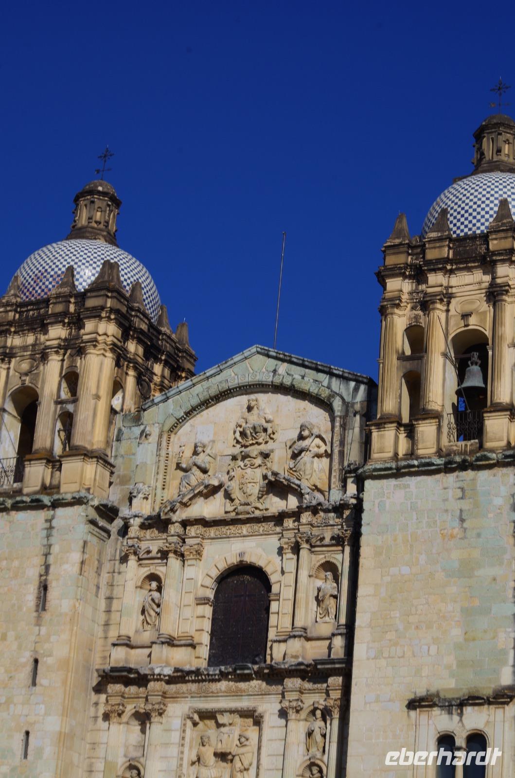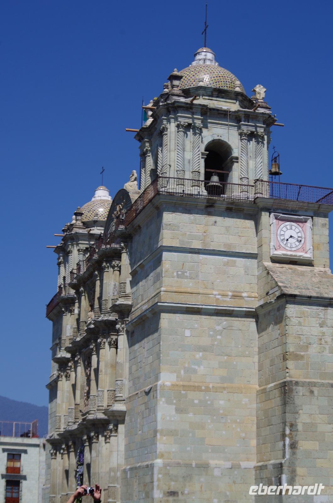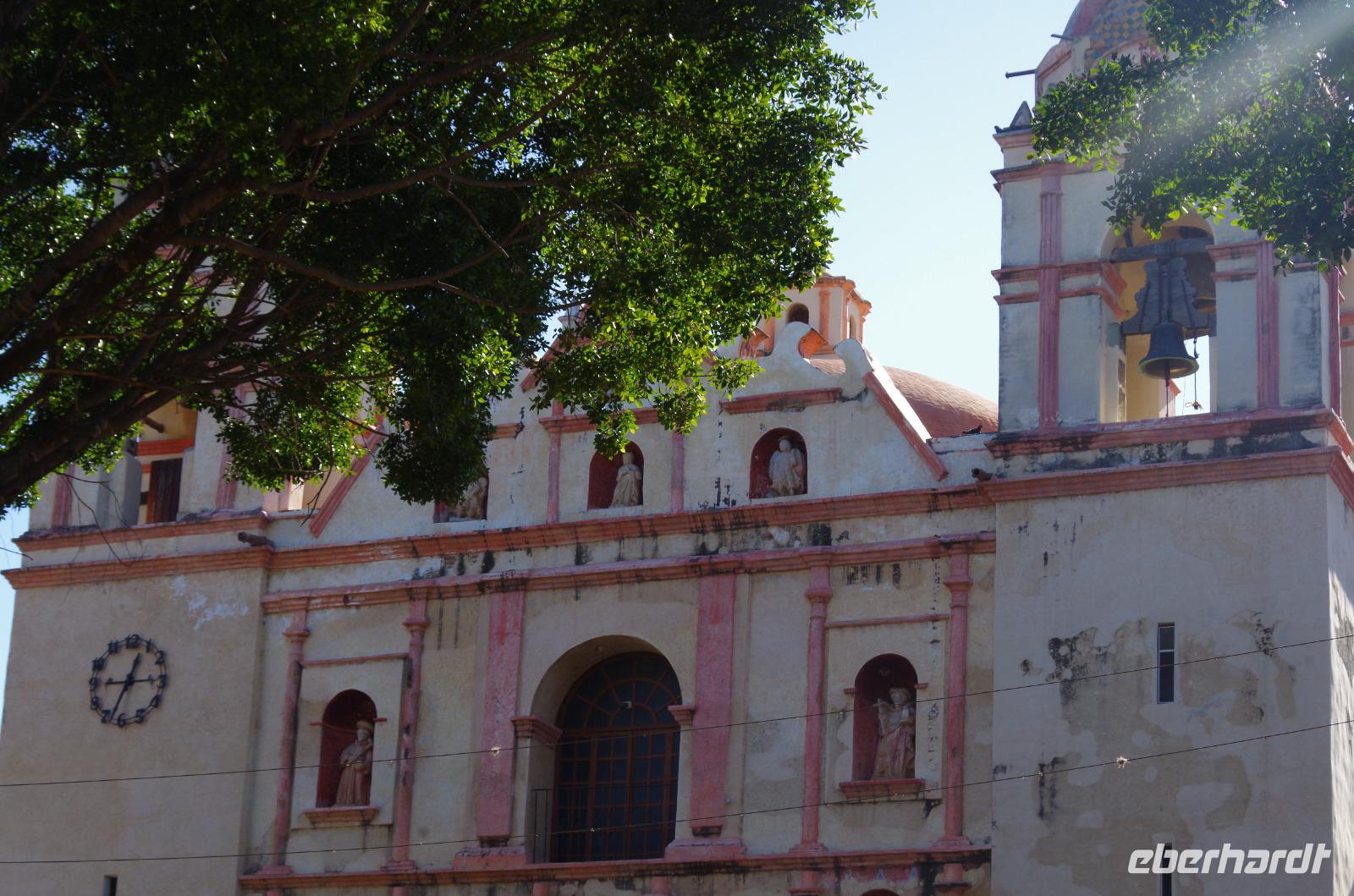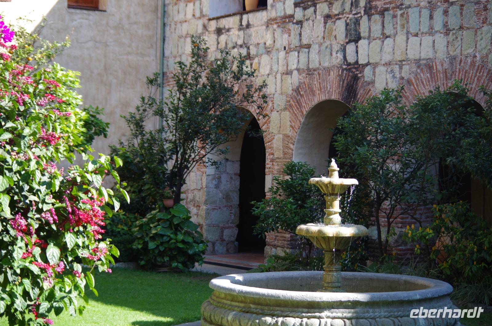 Danach spazierten wir durch die Stadt und bummelten über den Markt, wo Ruth uns viele Erklärungen gab, bis zum Zócalo. Nach einer Mittagspause besuchten wir die Kathedrale der Stadt und spazierten zum botanischen Garten und durften uns sogar das ehemalige Katharinenkloster anschauen, welches heute ein 5-Sterne Hotel ist. Wir warfen noch einen Blick in den botanischen Garten und besuchten zum Schluss noch die Dominikanerkirche. Diese öffnete etwas später als erwartet, die mexikanische Mentalität eben. Einige Gäste entschieden sich schon für den Rückweg zum Hotel, doch im letzten Moment öffneten sich die Türen der Kirche. Aufgrund mehrere Erdbeben wurde sie von 1724 bis 1736 mit deutlich kleineren Türmen neu erbaut. Wir sahen dort auch wieder die Rosenkranzkapelle mit der Rosenkranzkönigin.