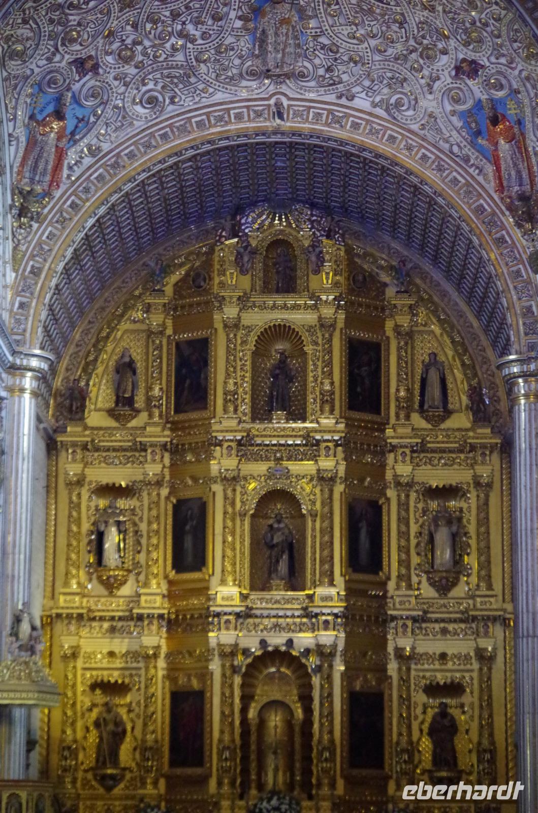 Danach stand die Besichtigung der Kathedrale der Stadt an. Diese ist eine Mischung verschiedener Baustile, unter anderem Renaissance und Barock. Der Baubeginn der Kathedrale war bereits 1573, die Fertigstellung jedoch erst 1813. Wir sahen zum Beispiel den goldenen Altar mit einem schwarzen Christus am Kreuz, den Altar de los Reyes und die große sowie die kleine Orgel.