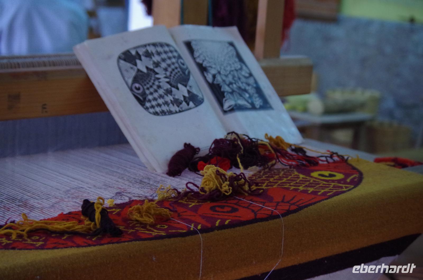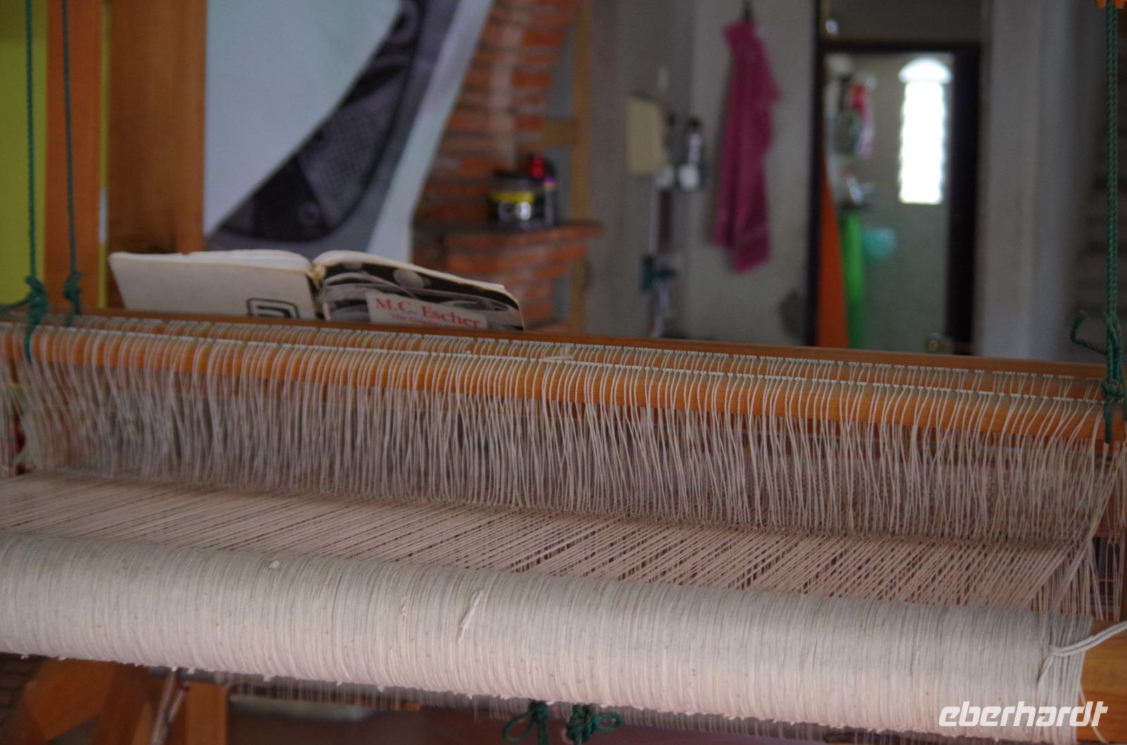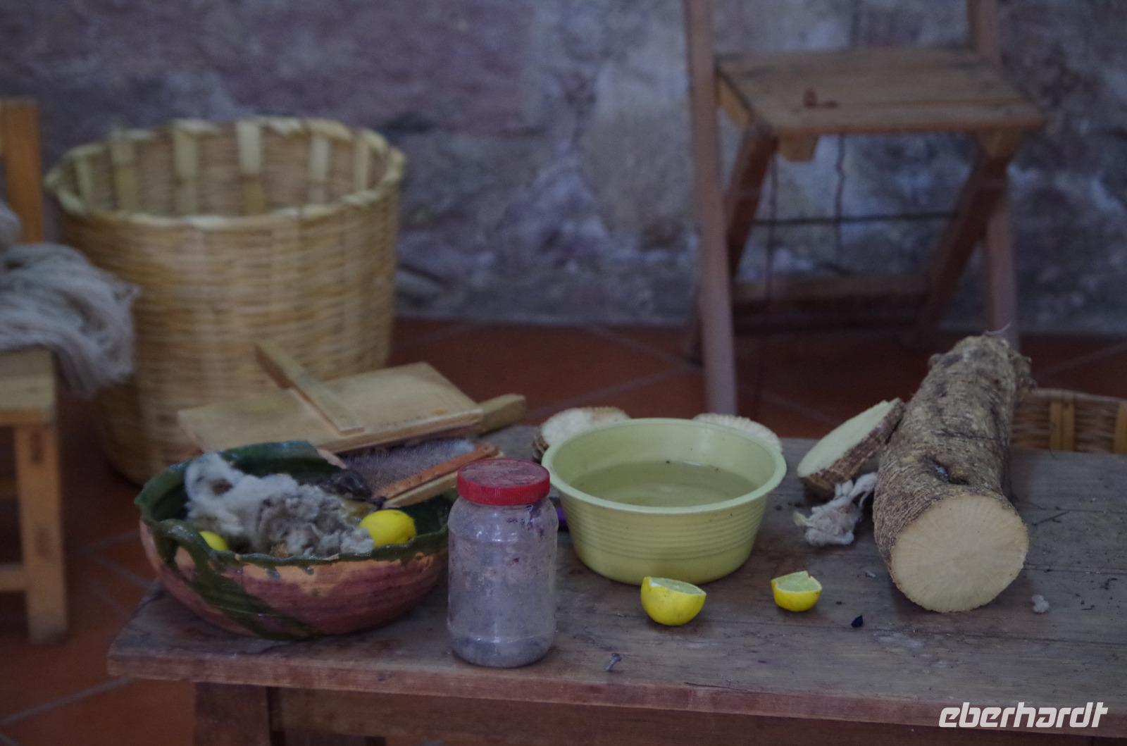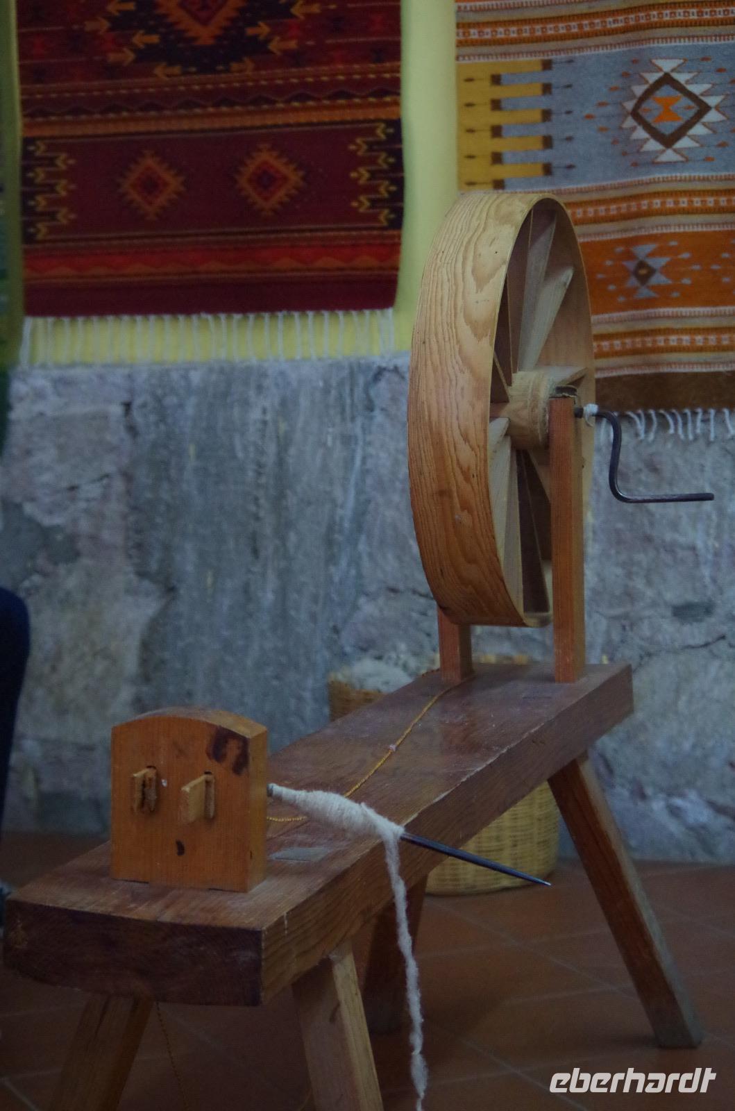 Später besuchten wir die San Jeronimo Kirche in Tlacochahuya. Erbaut wurde sie im 16. Jahrhundert, die wunderschönen Malereien stammen aus dem 18. Jahrhundert. Vor etwa 30 Jahren wurde sie restauriert. Die Gelder stammten von der Gemeinde bzw. dem Staat und einer gemeinnützigen Organisation. Verantwortlich für die Kirche ist ein Gemeinnütziger, welcher jedes Jahr neu bestimmt wird. Anschließend fuhren wir zu einer Weberei, wo uns die Webkunst genau erläutert wurde. Zunächst muss die Wolle gewaschen werden, anschließend gekämmt, wird dann mit verschiedenen Naturfarben gefärbt und zum Schluss gesponnen. Die verschiedenen Kleidungsstücke, Teppiche usw. werden dann am Webstuhl hergestellt.
