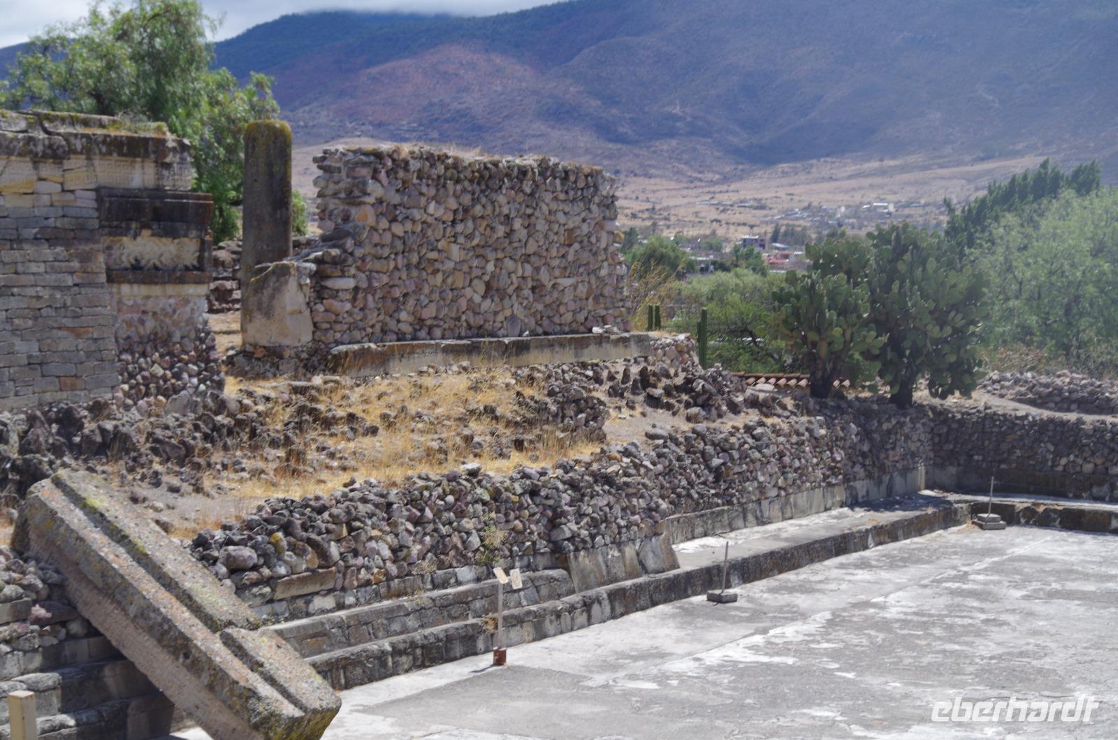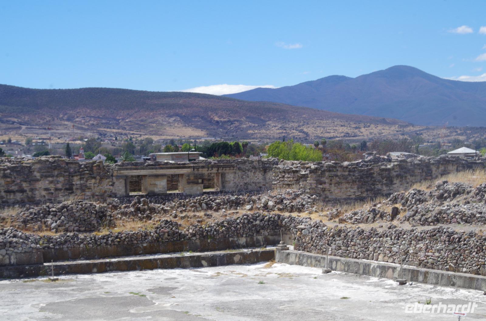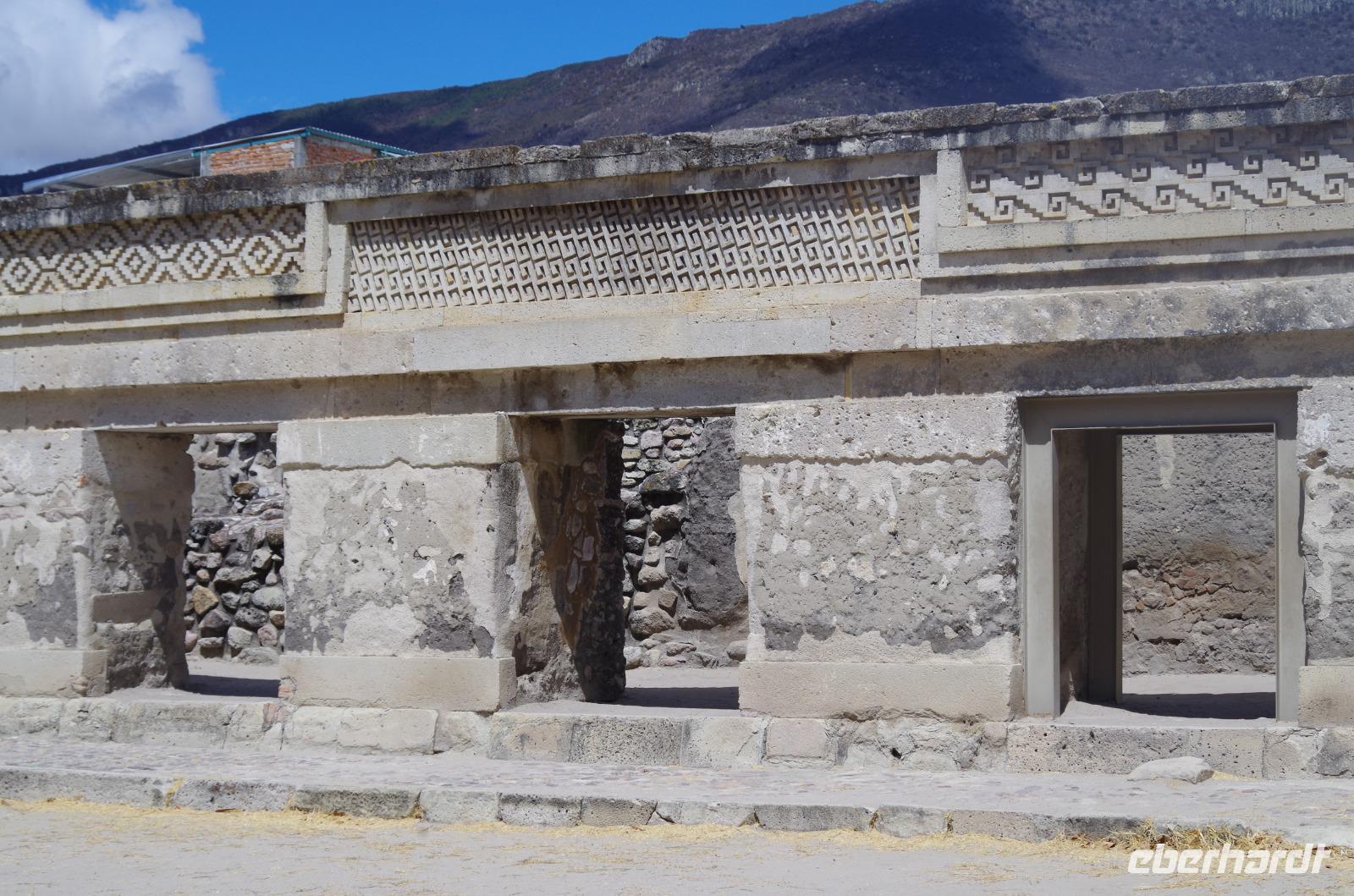 In Mitla besuchten wir dann noch die präkulumbianische Stadt. Mitla bedeutet so viel wie „Ort der Toten" und stammt vom Begriff „mictlan" der Azteken ab. Erbaut wurde Mitla jedoch bereits von den Zapoteken etwa 1000 nach Christus und wurde später auch von den Mixteken genutzt.
