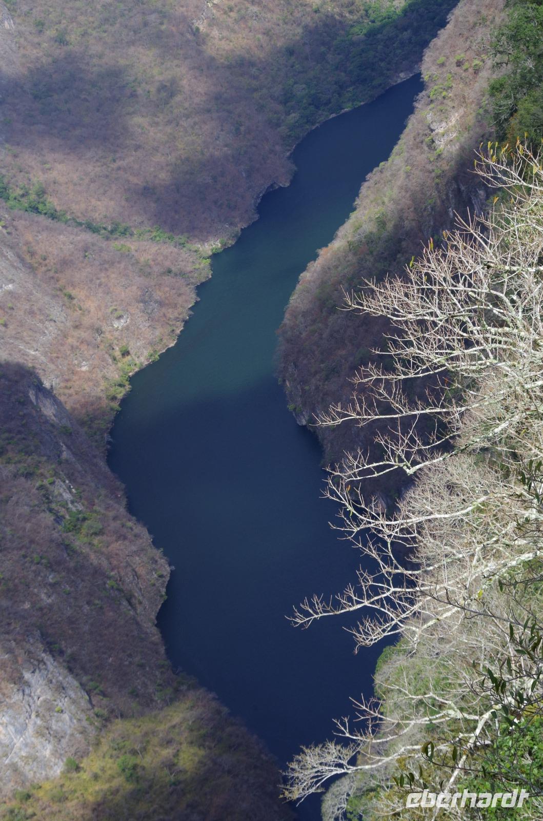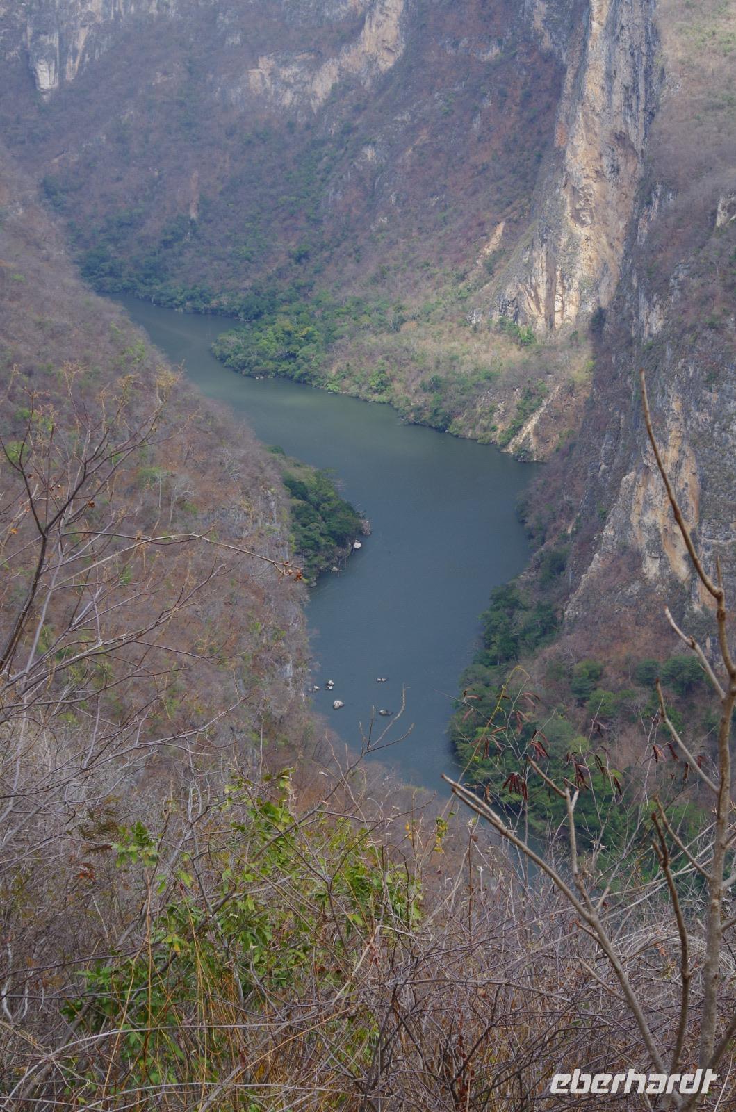 Heute hatten wir eine recht lange Fahrt vor uns. Wir starteten zeitig in den windigen Tag. Unsere Fahrt führte uns durch das windreichste Gebiet des Landes und das war deutlich zu spüren, denn unser Bus schwankte regelrecht im Wind. Sogar ein Teil der Klimaanlage löste sich durch den Sturm. Zum Glück hat es aber niemanden getroffen. Doch leider war der Sturm so stark, dass heute keine Boote durch die Sumidero fuhren. So wurde unsere Bootsfahrt leider abgesagt, es wäre einfach zu gefährlich gewesen. Den Anblick des Sumidero Canyons haben wir uns aber natürlich trotzdem nicht entgehen lassen. Wir fuhren mit unserem Bus in den Nationalpark und hatten von zwei Aussichtspunkten einen wunderbaren Blick auf die Schlucht und den Fluss.
