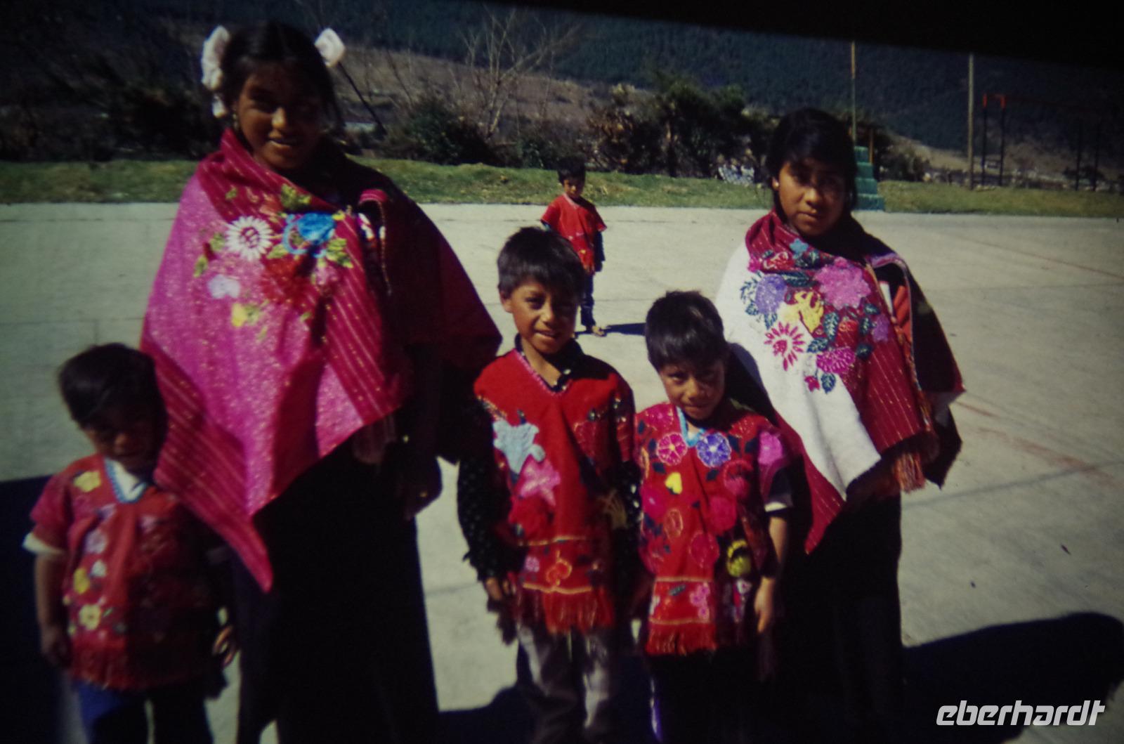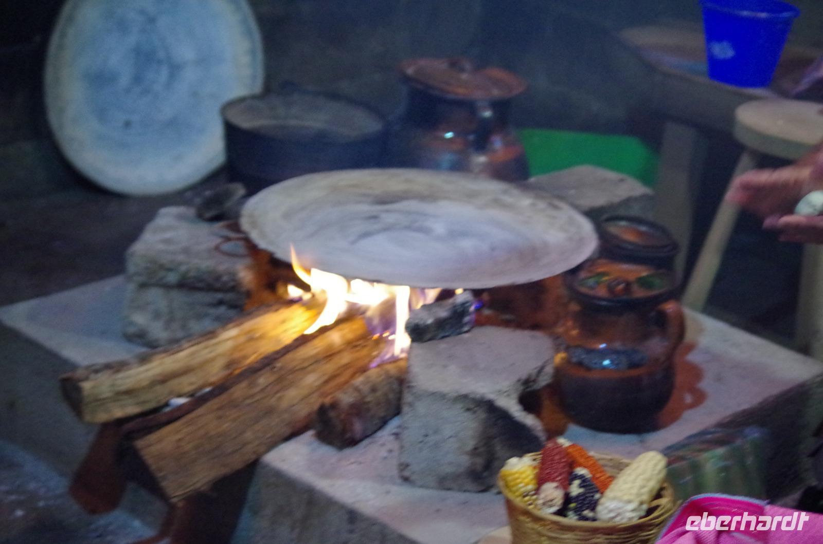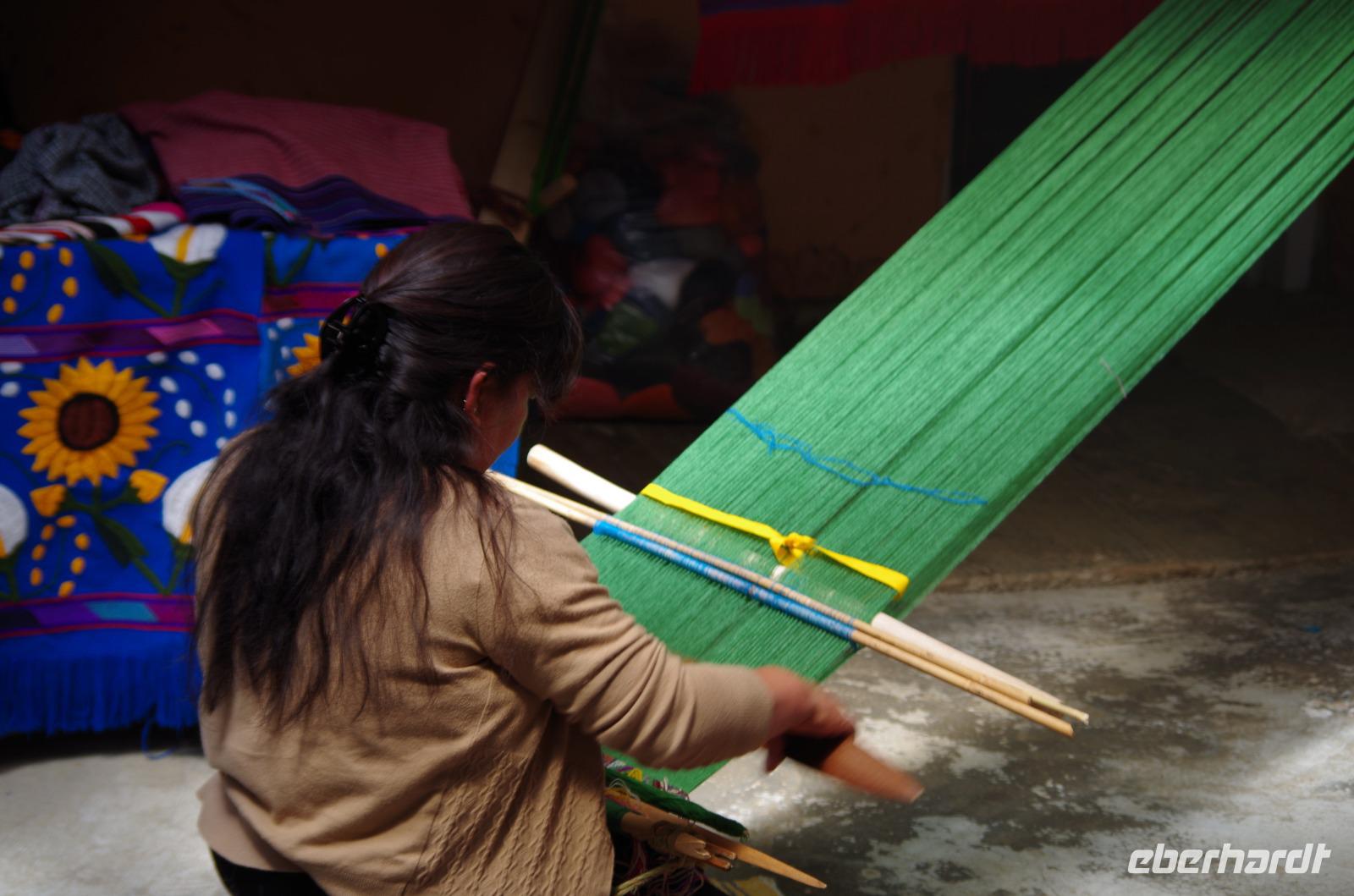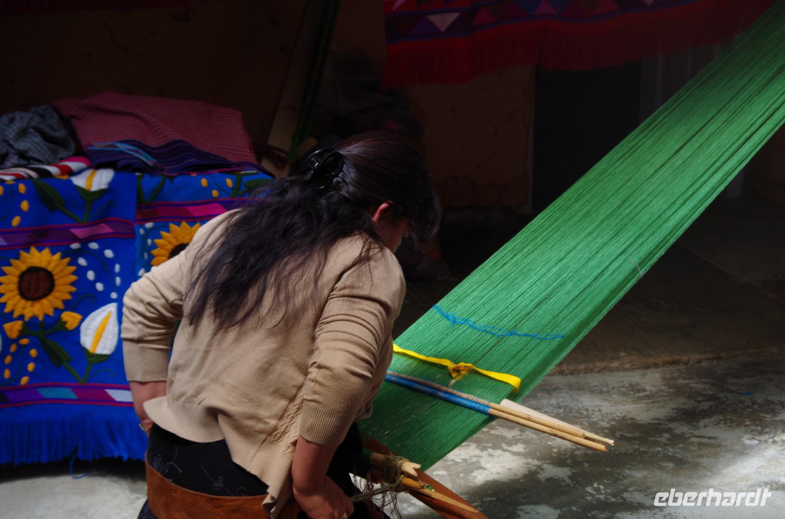 Wir bummelten noch etwas durch das Gewimmel und sahen uns die Handarbeiten auf dem Markt an, dann ging es weiter nach Zinacatán. Viele Kinder sahen wir hier den Fasching feiern und freudig zu Musik tanzen. Auch eine Weberei besuchten wir, welche von drei Schwestern und ihrer Mutter geführt wird. Uns wurde die Kunst des Hüftwebens erklärt, wir konnten beim Tortilla backen zu schauen und auch die frisch gebackenen Tortillas belegen und essen.