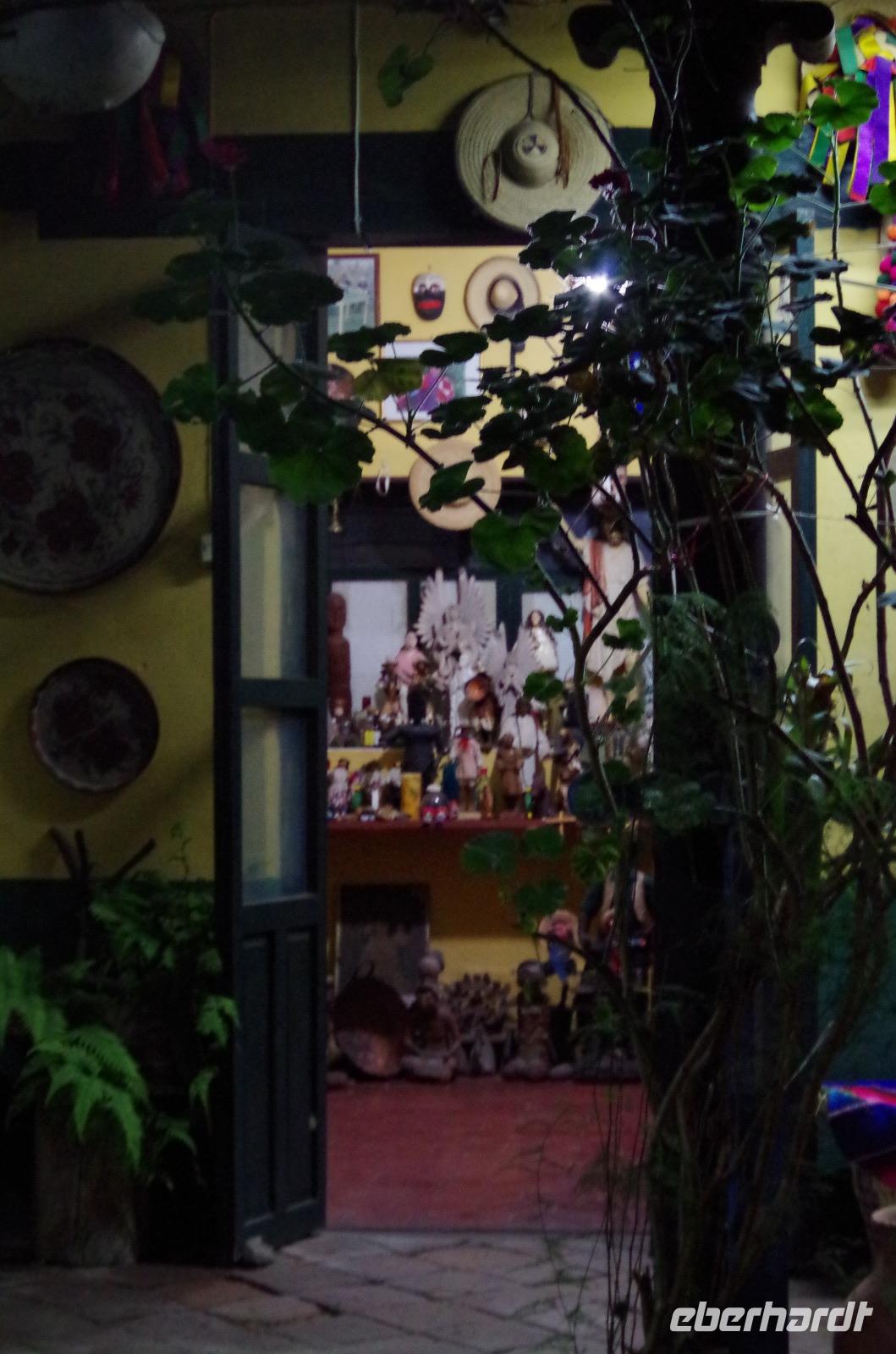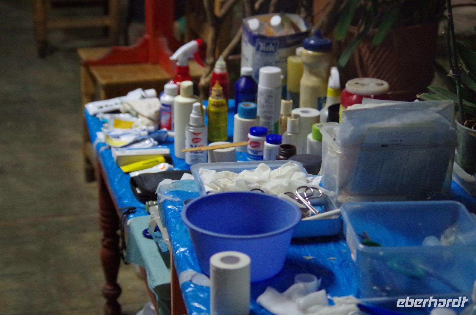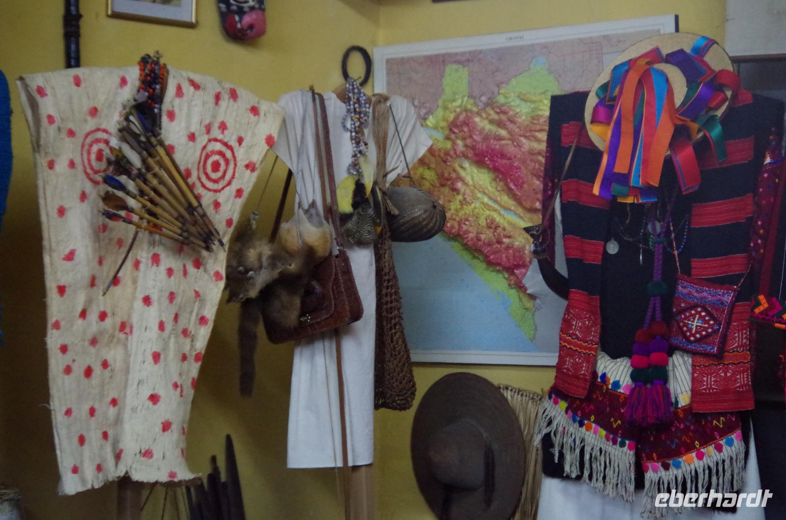 Auch Eberhardt hat wieder die Flamazyne Salbe, welche wunderbar für die Brandwunden ist, gespendet. Diese ist nur in Europa erhältlich und wird hier dringend benötigt, um die schlimmen Brandverletzungen zu behandeln. Er führte uns durch seine Ausstellung, in der die verschiedenen Trachten der Kulturen der Region Chiapas vorgestellt wurden. Außerdem zeigte er uns seine Diashow und seinen „Tutti Frutti" Ausstellungsraum, in dem verschiedenste Sammlerstücke zu finden sind.