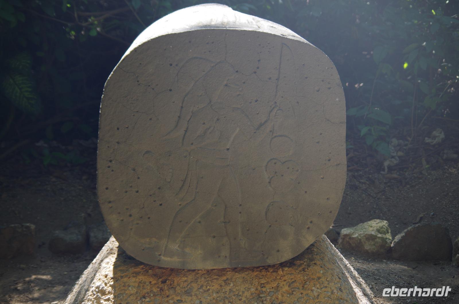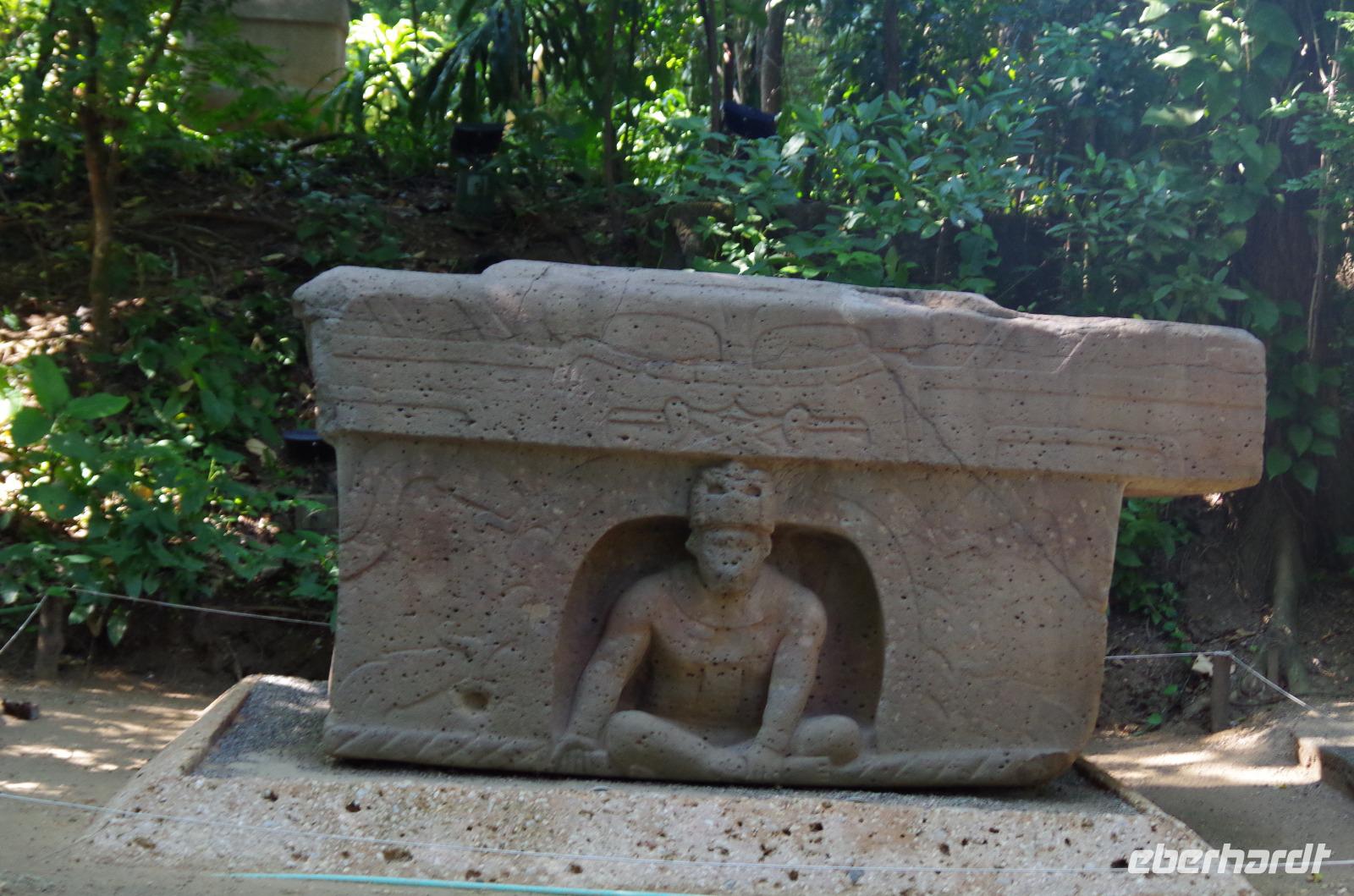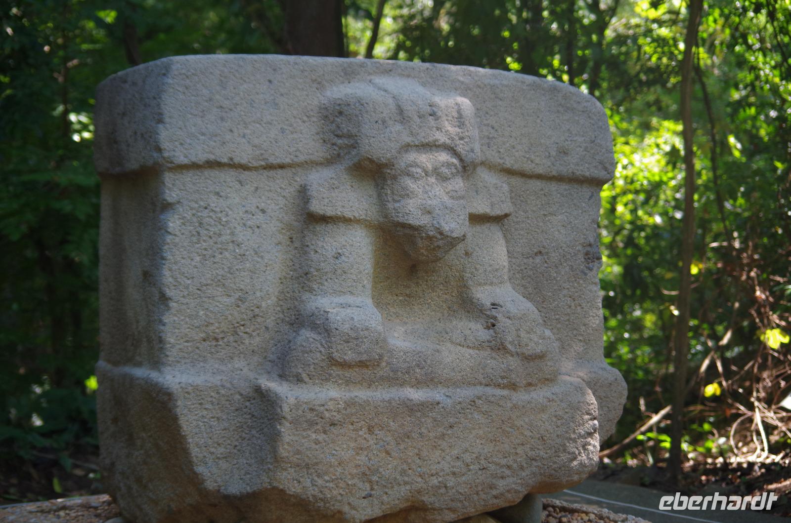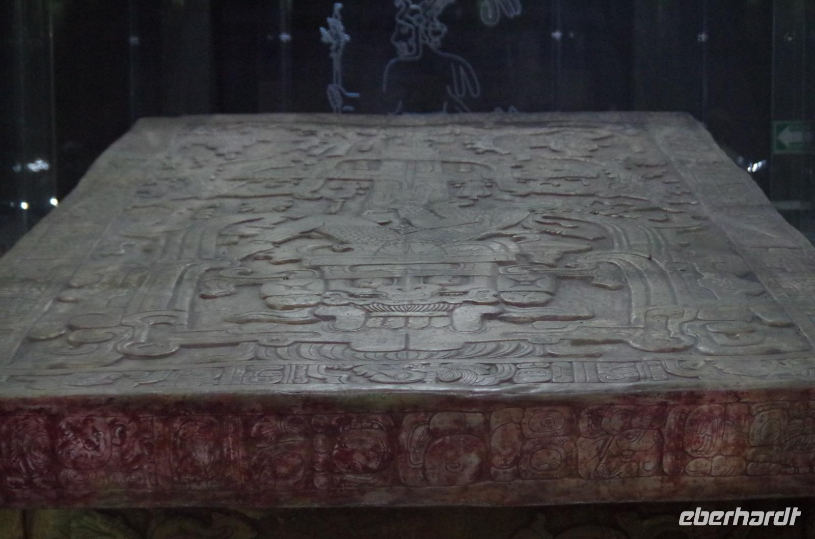 Zum Schluss besuchten wir noch das Museum der Anlage. Hauptattraktion dessen ist der große Sarg von Pacal, welcher noch zu seinen Lebzeiten gebaut wurde. Am Rand des Sarges sieht man verschiedene astronomische Zeichen, wie den Mond oder Venus.
