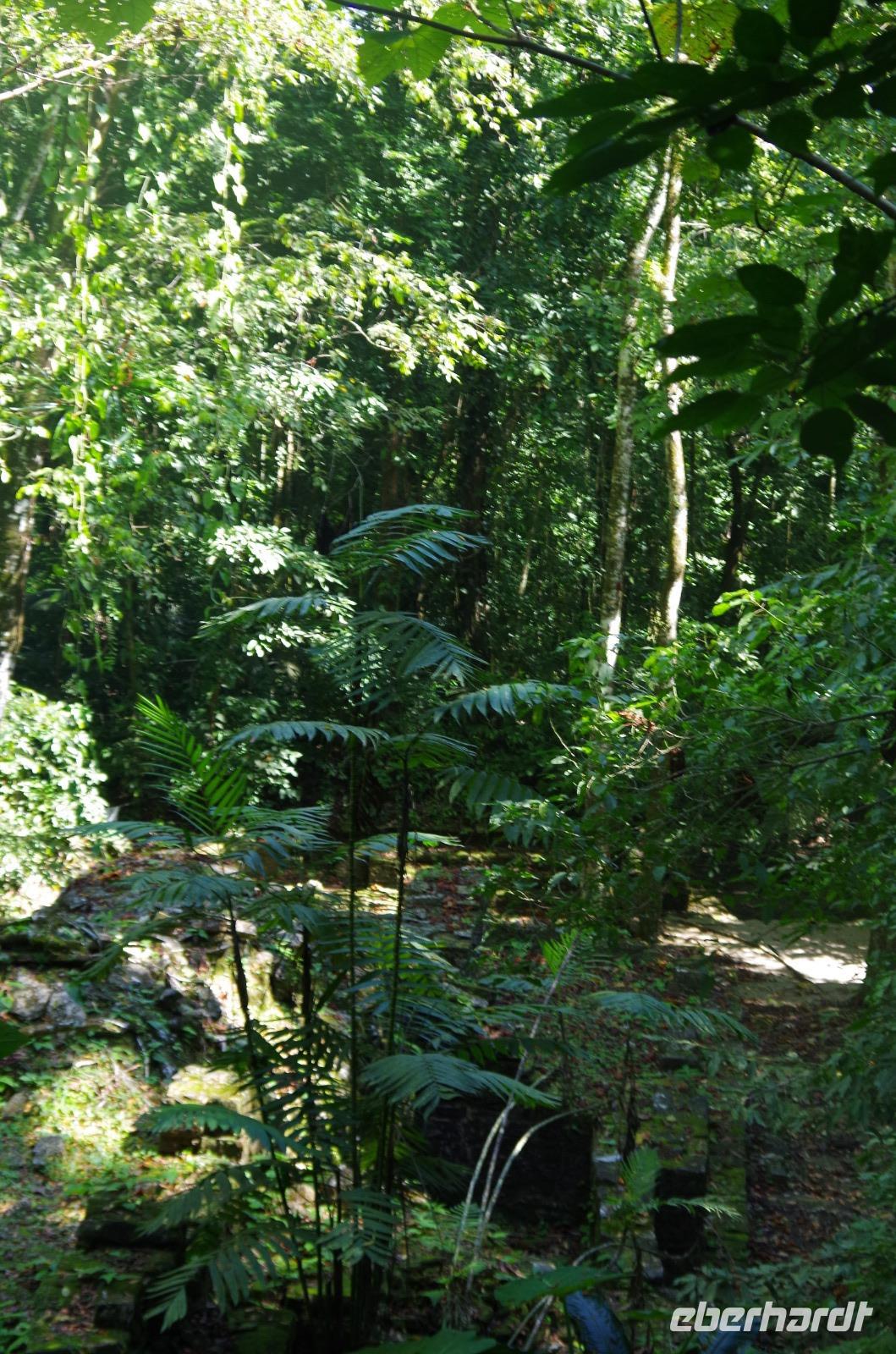 Unsere Besichtigungstour beendeten wir mit einem Spaziergang durch das satte Grün des Dschungels.