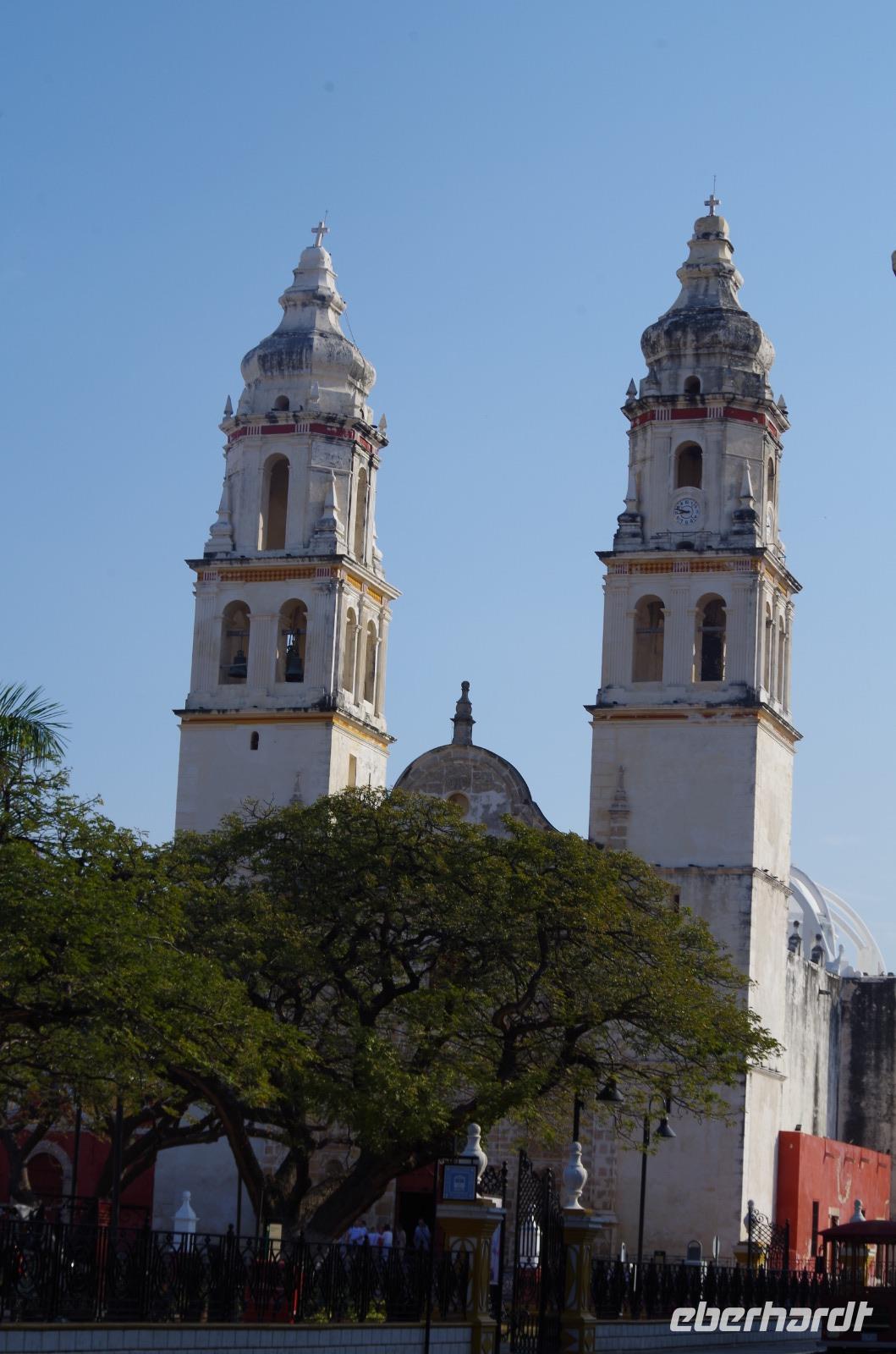 Am heutigen Tag haben wir zunächst eine kleine Stadtführung durch Campeche unternommen. Die Stadt war einst von einer 2,5 km langen Stadtmauer umgeben, von der heute jedoch nur noch Teilstücke erhalten sind. Wir spazierten durch die noch recht kühlen Straßen vorbei an bunten Häusern bis zum Zocalo, wo wir die Catedral de la Concepción besichtigten. Diese wurde 1540 erbaut und ist die älteste Kirche Yucatáns.