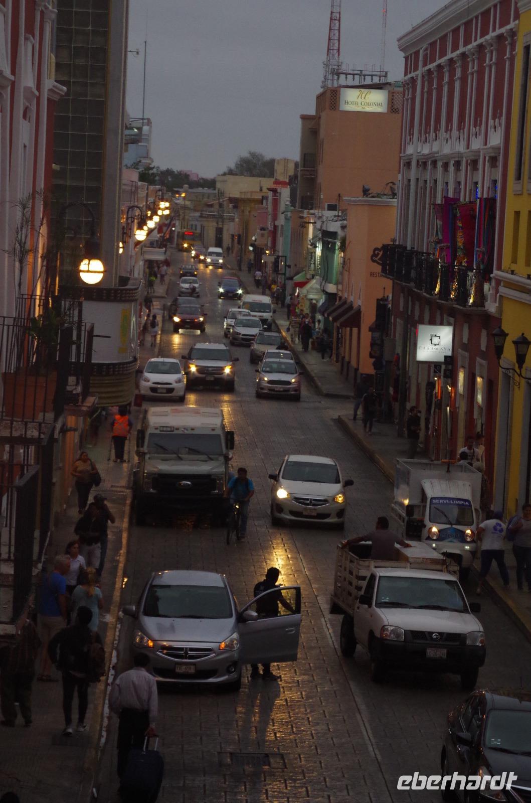 Am Abend erreichten wir Campeche, wo wir in einem Restaurant gemeinsam ein typisch mexikanisches Fischgericht probieren konnten. Gemeinsam mit Ruth unternahmen wir noch einen kleinen Spaziergang durch das nächtliche Campeche mit dem beleuchteten Zócalo.