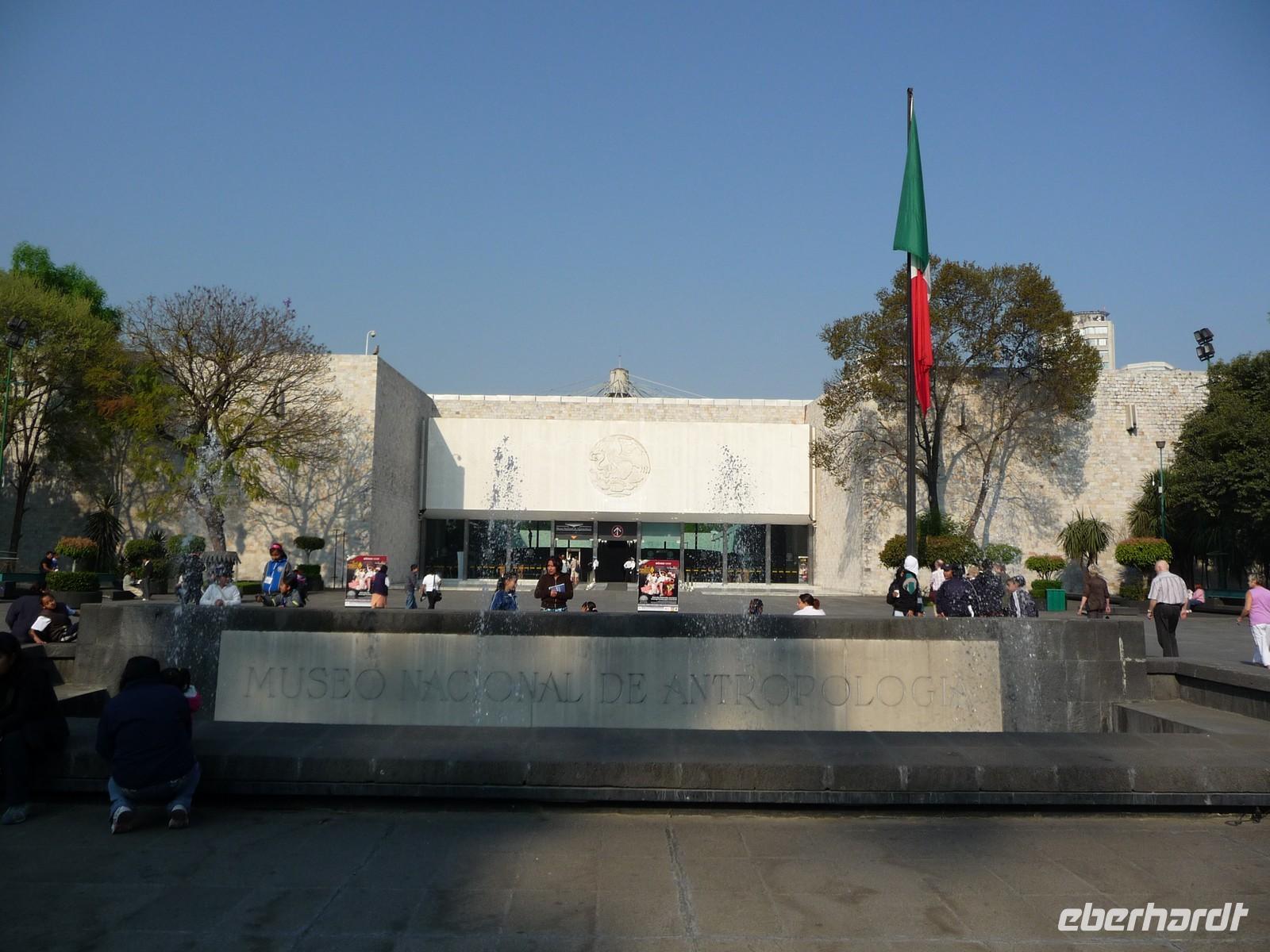 Nach einer etwas unruhigen Nacht - die innere Uhr tickte eben noch nicht nach mexikanischer Zeit - begannen wir unsere Besichtigungen um 09:00 Uhr. Zunächst ging es zum Nationalmuseum für Anthropologie, nur wenige Minuten von unserem Hotel entfernt. In diesem enormen Komplex, die Besichtigung der gesamten Anlage würde wahrscheinlich einen ganzen Tag in Anspruch nehmen, besuchten wir das Erdgeschoss. Dort bekamen wir eine Einführung in die Anthropologie und sahen einige überaus interessante Fundstücke der untergegangen Kulturen.