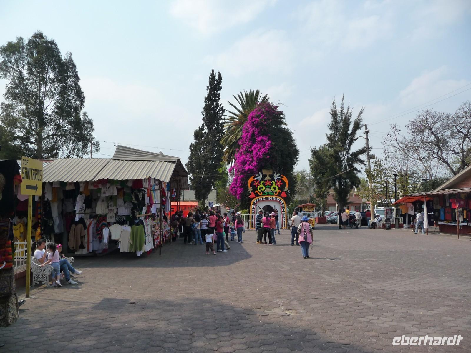 Nach dem Museumsbesuch fuhren wir nach Xochimilco - ein kleiner Ort im Süden von Mexico-City (ca. 45 Fahrminuten entfernt). Der Name Xochimilco bedeutet "Ort, wo Blumen wachsen" - kein Wunder, ist es doch ein wichtiges Anbaugebiet für Blumen und Gemüse. Auf einem bunt bemalten Boot gondelten wir durch die verzweigten Kanäle der früheren Lagune und genossen ein typisch mexikanisches Mittagessen mit Tortilla und Co. Von anderen Booten drangen Mariachi-Gesänge zu uns herüber und die Schiffer tauschten untereinander Speisen und Getränke aus.