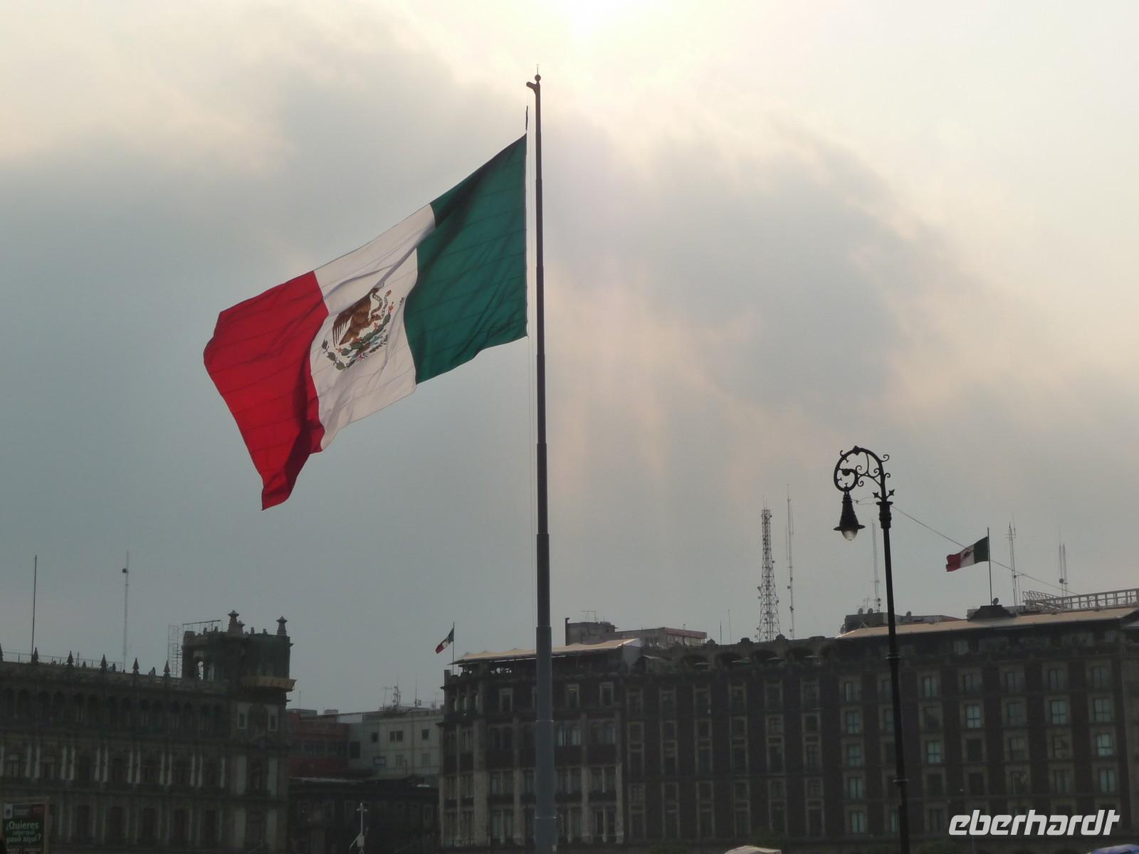 Am Nachmittag kehrten wir zurück nach Mexico-City und besuchten den Plaza de la Constitución. Hier wurde im Jahr 1813 die erste Verfassung des Landes verkündet, daher stammt der Name für den Platz. Von den Einheimischen wird er aber meist nur "Zócalo" genannt. Am Trubel, der hier herrschte bermerkten wir schnell, dass dies der Mittelpunkt, das Herz der Stadt ist. Händler bieten unterschiedlichste Waren und Souvenire an, Schamanen verbreiten den Duft von Kräutern und wieder andere sind in Gewändern der Atzteken gekleidet und führen traditionelle Tänze auf. Über die komplette Ostseite des Platzes erstreckt sich der Nationalpalast, der Amtssitz des Präsidenten. An der Nordseite des Platzes besichtigten wir die Kathedrale - ein gewaliges Gebäude, dessen Errichtung fast 300 Jahre Zeit in Anspruch nahm. In einer Ecke hinter der Kathedrale hatten wir die Gelegenheit, einen Blick auf Reste des Tempelbezirkes Tenochtitlán zu werfen.