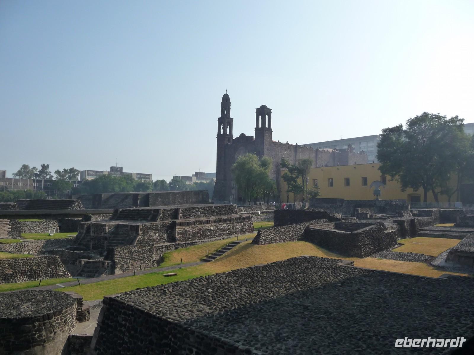 Dieser Tag begann mit der Besichtigung der Plaza de las Tres Culturas im Stadtteil Tlaltelolco. Mit den hier befindlichen unterschiedlichen Bauten wie der Pyramide Tlaltelolcos, einer Barockkirche aus dem 16. Jahrhundert und dem Außenministerium symbolisiert der Platz die Verbindung dreier Kulturen: der Atzteken, der Spanier und der modernen Mexikaner.