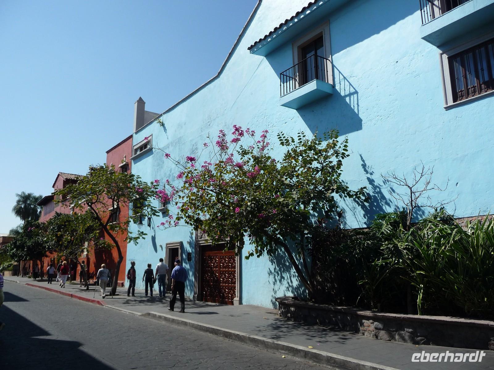 Es hieß Abschied nehmen von Mexiko-Stadt. Durch den dichten Berufsverkehr schlängelten wir uns voran, entlang der Avenida Isurgentes in Richtung Süden, vorbei am Olympiastadion und -dorf, an der Bibliothek und an der Universität. Passend zum Valentinstag führte uns unsere Reise zunächst nach Cuernavaca, die wegen ihres milden Klimas und der üppigen Blumenpracht auch "Stadt des ewigen Frühlings" genannt wird. Eigentlich sollten wir hier den Borda-Garten anschauen. Dieser war aber geschlossen. Doch wir hatten Glück und konnten stattdessen das Museumshaus des amerikanischen Künstlers und Sammlers Robert Brady besichtigen. Als wir vor dem dunkelrot gestrichenen Gemäuer standen, hatten wir keine Ahnung, welche Idylle, Schönheit und Gemütlichkeit sich dahinter verbergen könnte. Dieses ehemalige Privathaus beherbergt über 1300 Stücke aus vorkolumbischer und aus kolonialer Zeit, Bilder von Frida Kahlo und Diego Rivera, Kunstwerke aus Afrika, Asien und Amerika, die Robert Brady während seiner vielen Reise angesammelt hat.