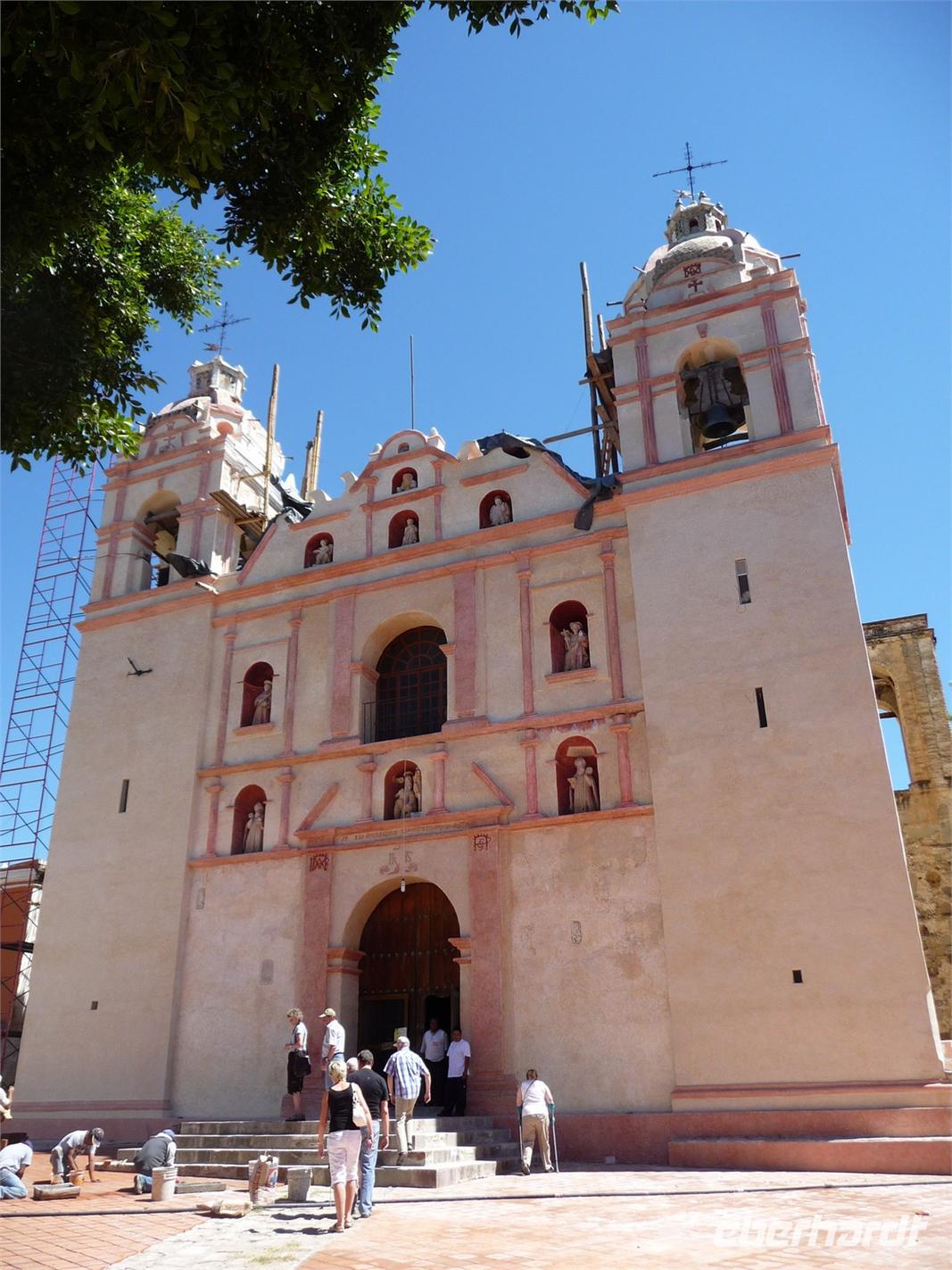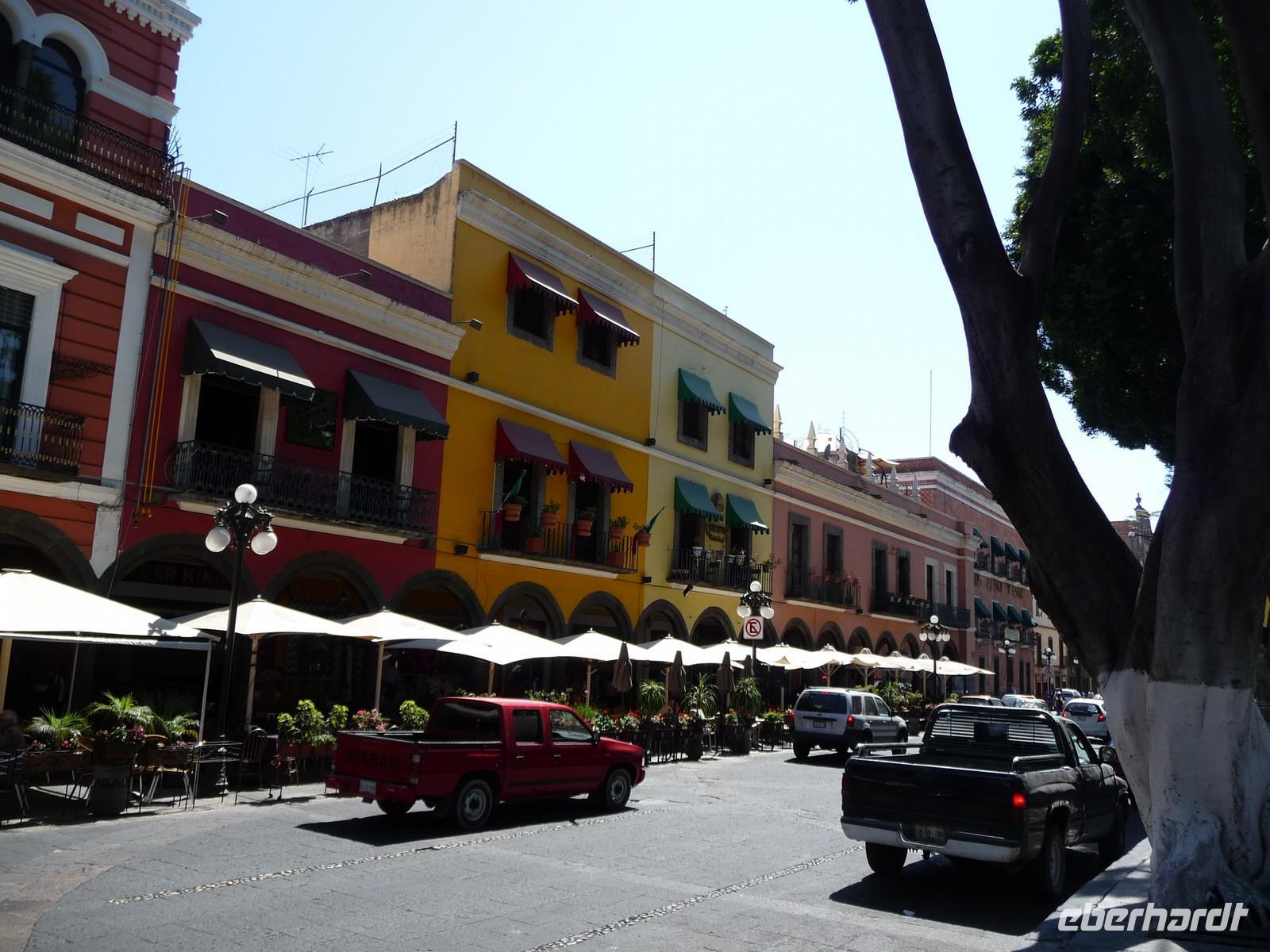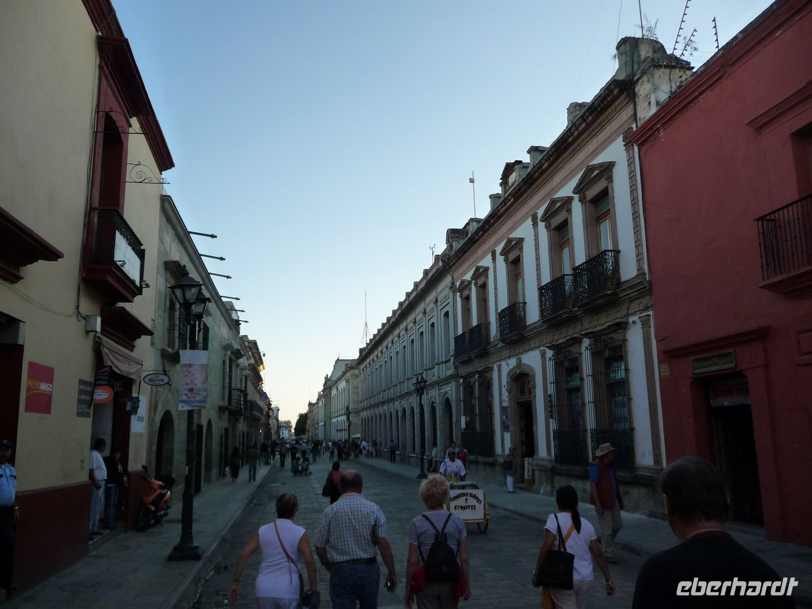 Heute stand uns ein langer Tag bevor, denn wir hatten eine Entfernung von ca. 500 Kilometern bis nach Oaxaca zurückzulegen. Nach ca. zwei Stunden Fahrt legten wir gegen 10:00 Uhr die erste Pause ein - mit traumhaftem Blick auf die Vulkane Popocatépetl und Iztaccihuatl. Die Mittagszeit verbrachten wir in der hübschen Kolonialstadt Puebla, wo wir zunächst den zentralen Platz, den Zócalo, mit der Kathedrale und außerdem die beeindruckende Kirche Santo Domingo besichtigten und anschließend noch etwas Freizeit zum Mittagessen oder Flanieren hatten. Auf der Weiterfahrt nach Oaxaca durchquerten wir traumhaft schöne Berglandschaften und eine Art Biosphärenreservat, in dem Tausende von Kakteen wuchsen. So langsam ging die Sonne unter und gegen 19:00 Uhr erreichten wir unser Ziel. Hier bekamen wir erstmal einen Schreck, denn im Zentrum um den Zócalo lagen überall Trümmer und Steine und die angrenzenden Gebäude waren beschädigt. Später erfuhren wir, dass Felipe Calderón - der Präsident Mexikos - in der Stadt war und es Ausschreitungen von "Gegnern" gegeben hatte. Uns war allen mulmig zu Mute und so verzichteten wir lieber auf einen abendlichen Spaziergang durch die Straßen. Schade eigentlich, denn das Hotel hatte eine tolle zentrale Lage, ideal für einen abendlichen Bummel...