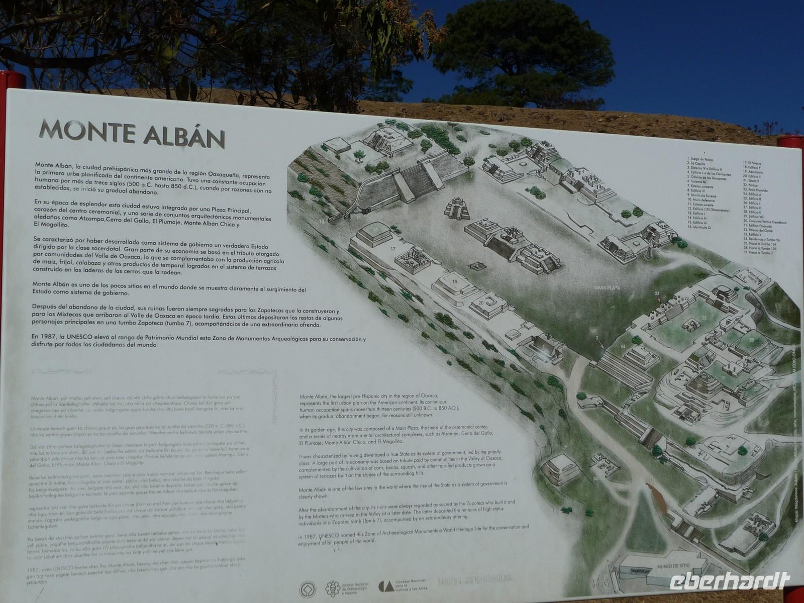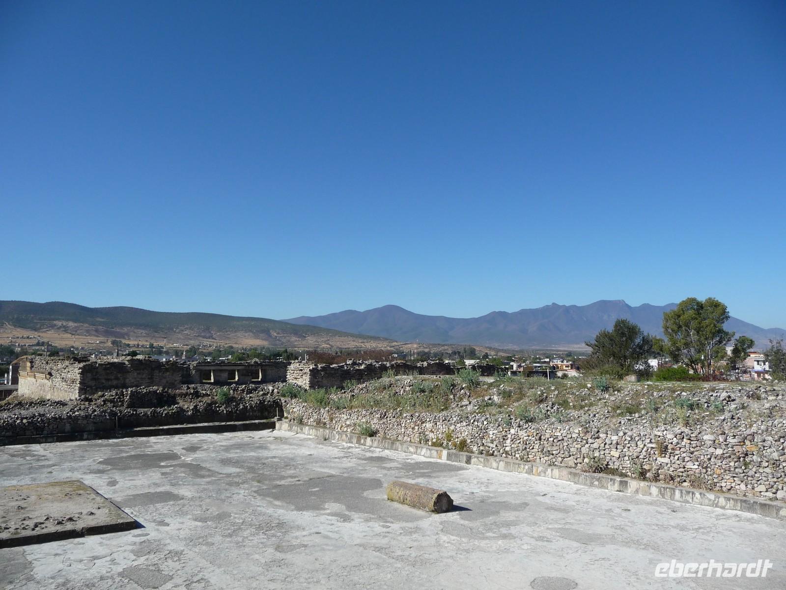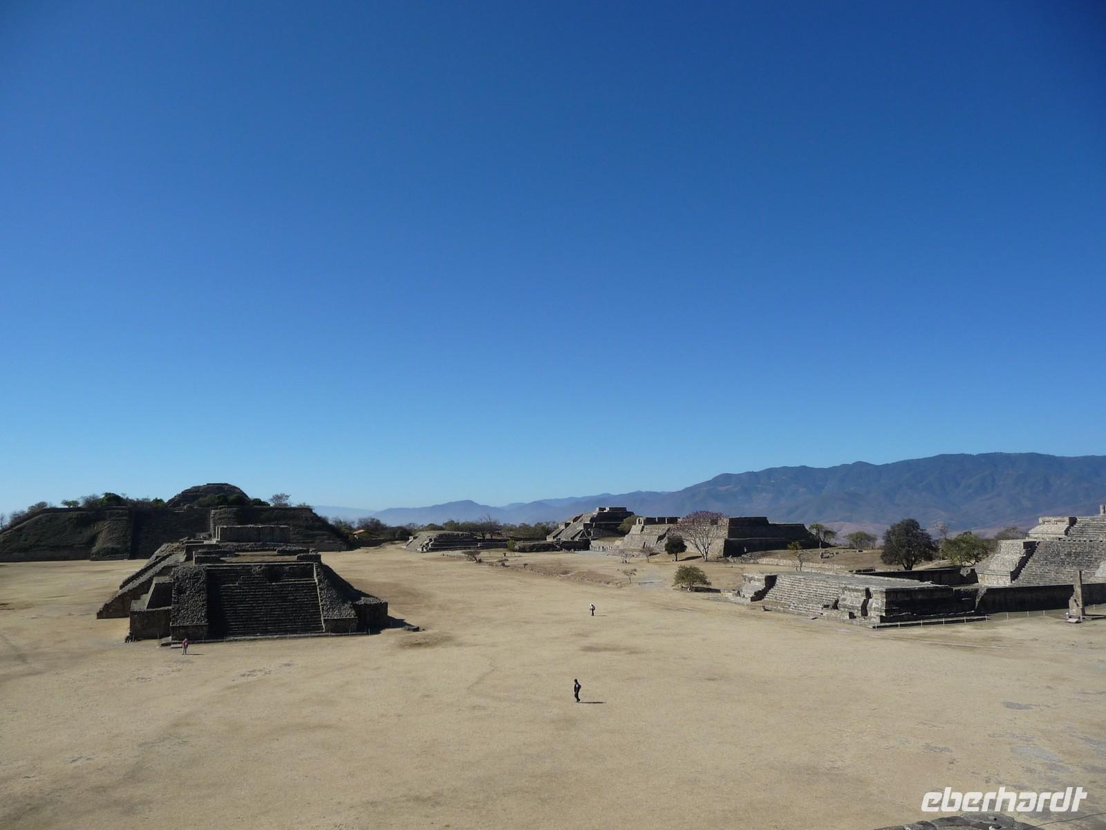 Nach dem Frühstück fuhren wir zur nahegelegen Ausgrabungsstätte Monte Albán. Diese befindet sich in ca. 10 Kilometern Entfernung von Oaxaca in einzigartiger Lage in etwa 400 Metern Höhe. Von hier aus genossen wir einen atemberaubenden Blick auf das unter uns liegende Tal mit der Stadt. Monte Albán war einst das Kultzentrum der Zapoteken und ist heute sicher eine der bedeutendsten Pyramidenanlagen Mexikos. Im Jahr 1987 wurde das Gebiet von der UNESCO zum Weltkulturerbe erklärt.