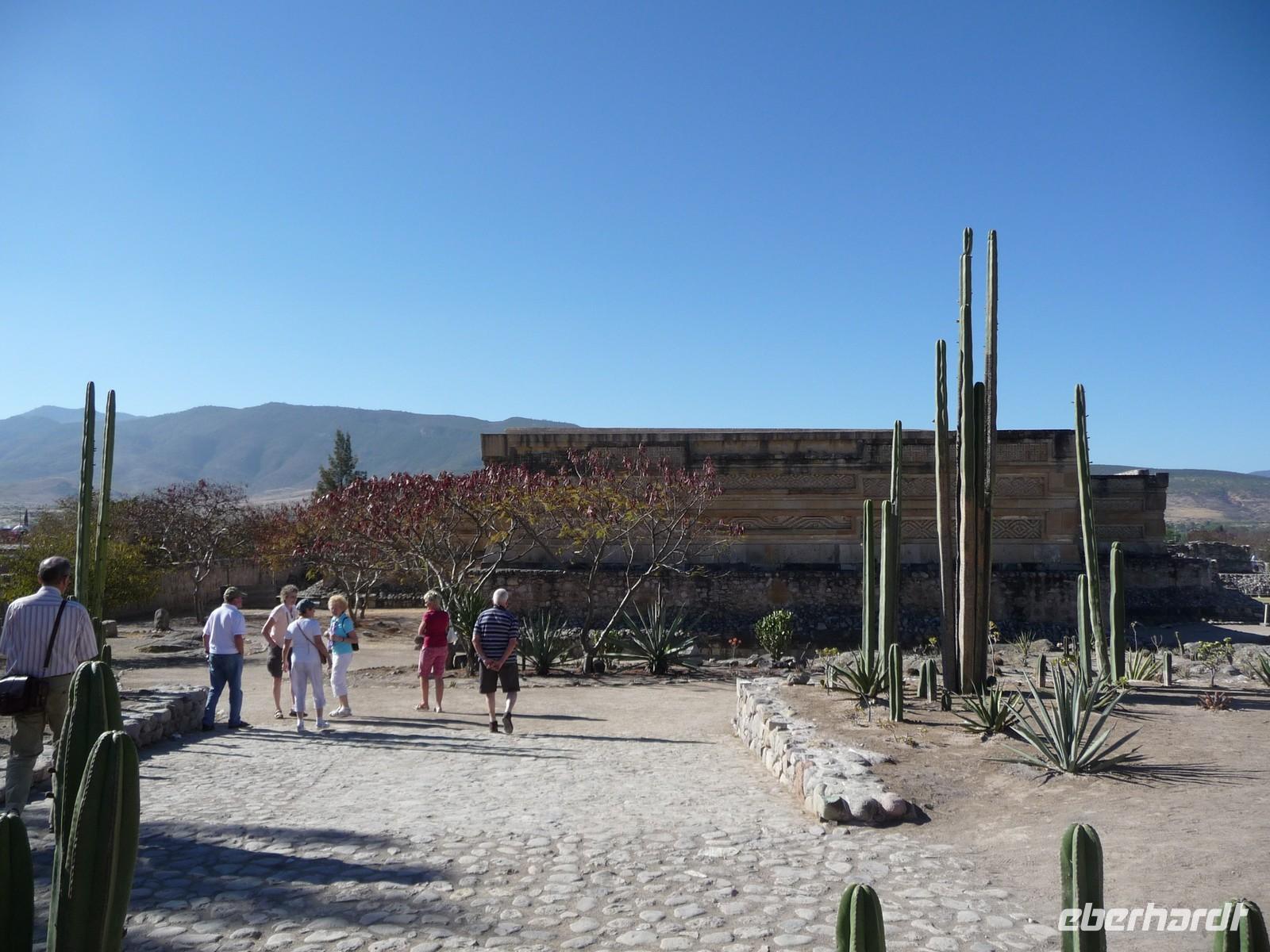Etwa 45 Kilometer südöstlich von Oaxaca befindet sich die Ruinenanlage Mitla, welche wir am Morgen besuchten. Diese Stätte ist vergleichsweise klein und von der Anordnung weniger imposant, durch die vielen verschiedenen Steinmosaike und -ornamente aber mindestens genauso beeindruckend, wie die Anlagen, die wir bisher schon gesehen hatten.
