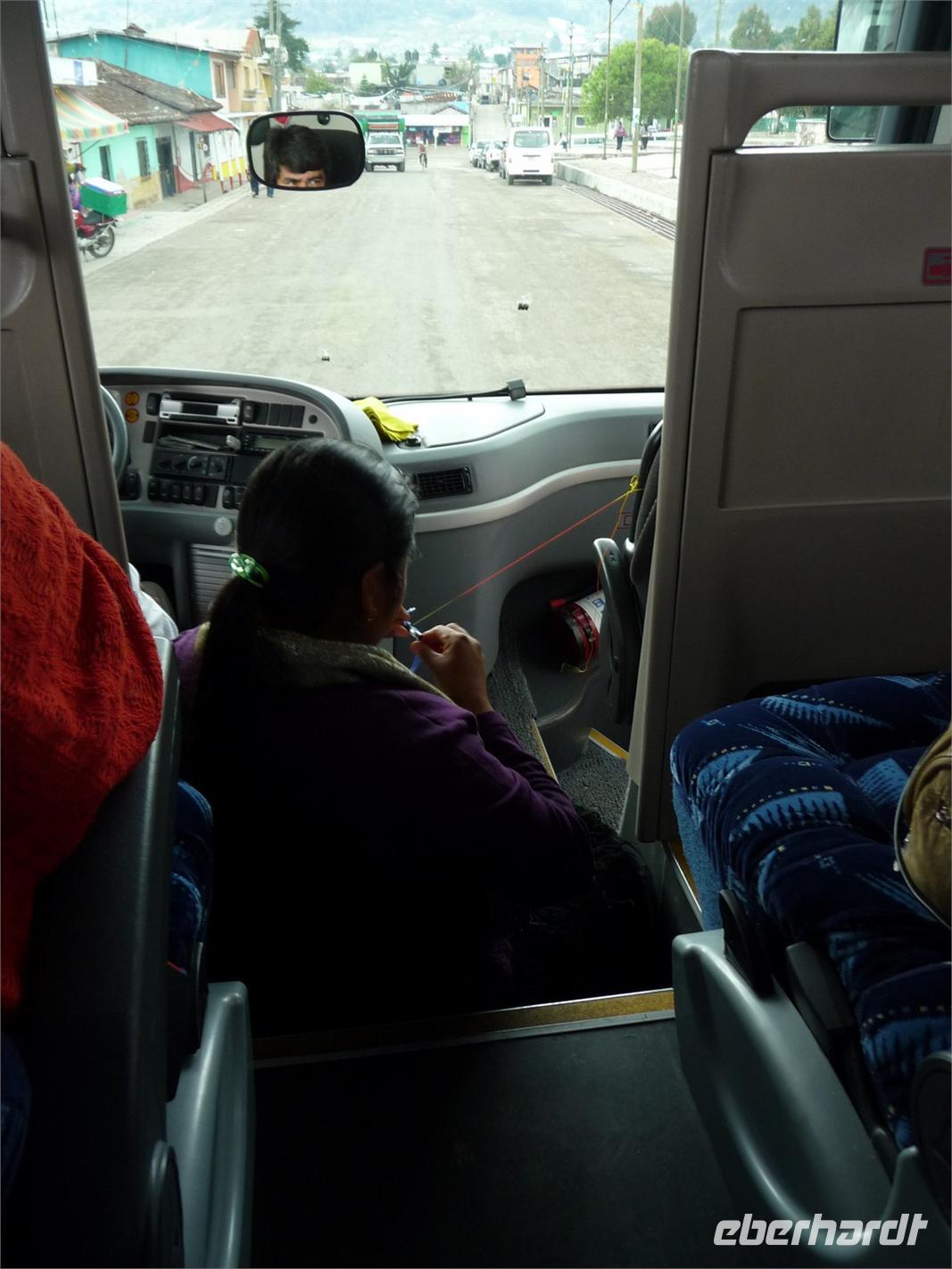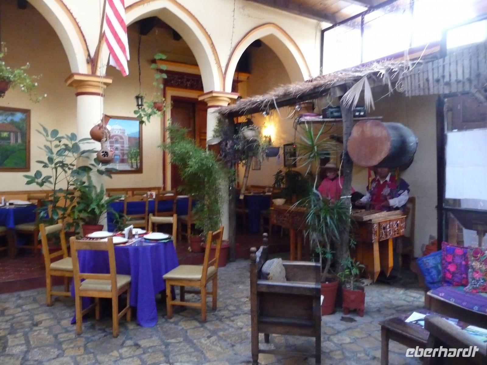 In San Cristóbal de las Casas ließen wir uns anschließend in einem hübschen Restaurant nieder und genossen - begleitet von Marimba-Musik - typisch mexikanische Speisen. Da die Straßen in diesem Ort nicht für unseren großen Reisebus geschaffen sind, gingen wir zu Fuß zum Hotel. Unser großes Gepäck wurde von den Angestellten zuvor am Bus abgeholt und erwartete und bereits in der Lobby. Wir bezogen die Zimmer und nach einer kurzen Erfrischungspause trafen wir uns wieder, um ein wenig zu Fuß das Stadtzentrum zu erkunden. Dabei sahen wir die Kathedrale, schauten in einem Bernstein- und in einem Jade-Museum vorbei und genossen anschließend den Charme dieser Kolonialstadt.