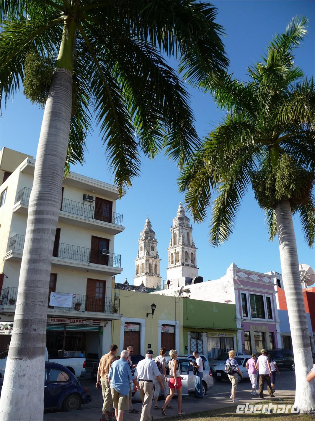 Am Morgen unternahmen wir den besagten kleinen Spaziergang durch das historische Zentrum von Campeche. Ein weiteres Mal begeisterte uns der Kolonialstil mit den hübschen bunten Häusern und Residenzen und natürlich durfte auch die Besichtigung der Kathedrale nicht fehlen.