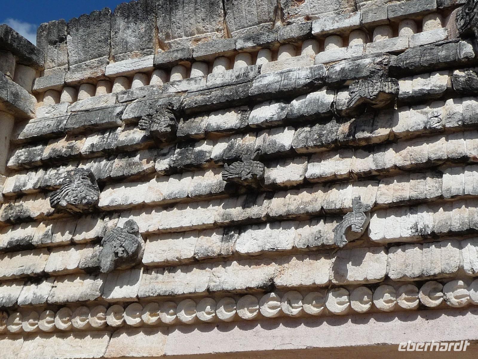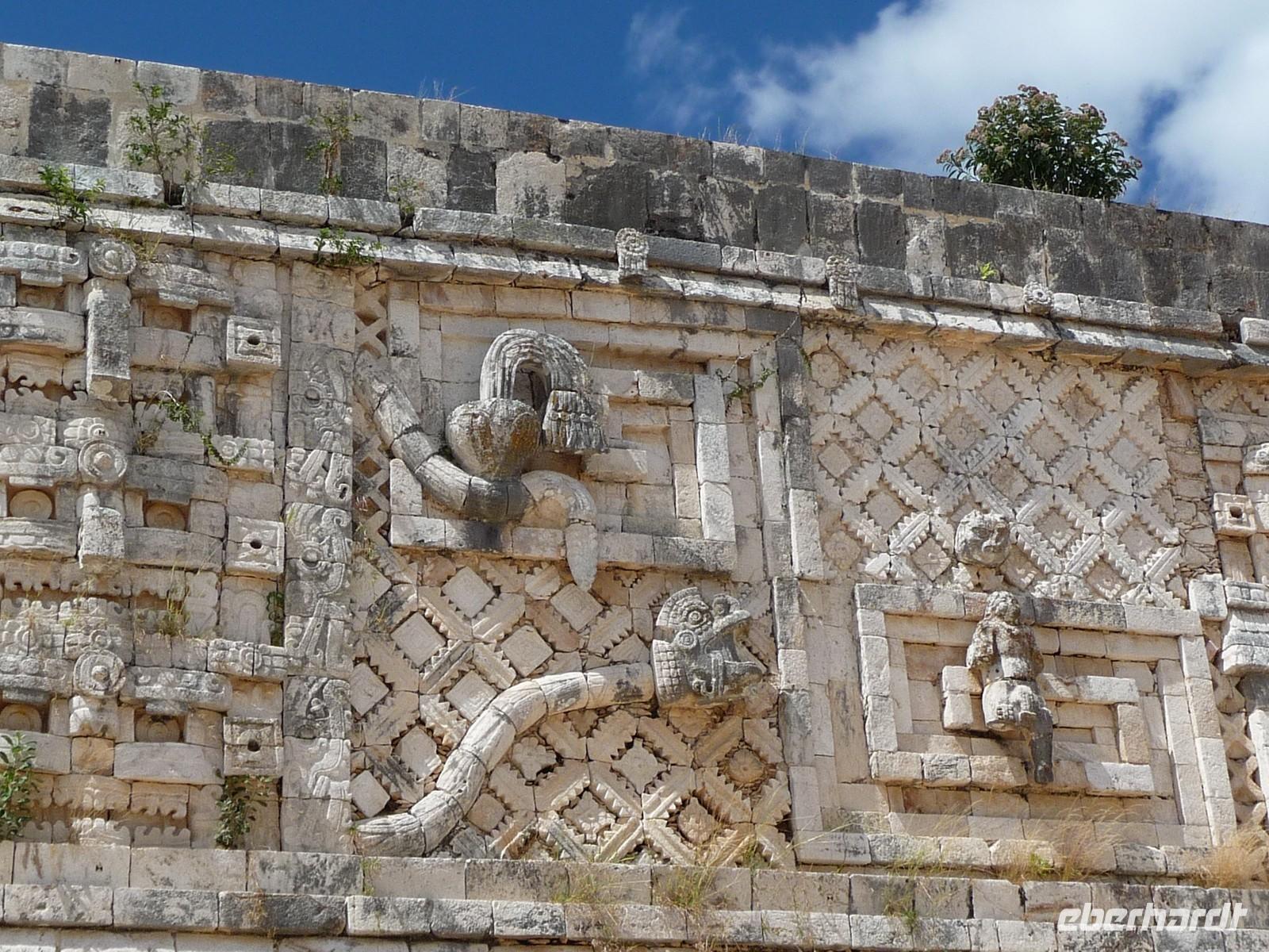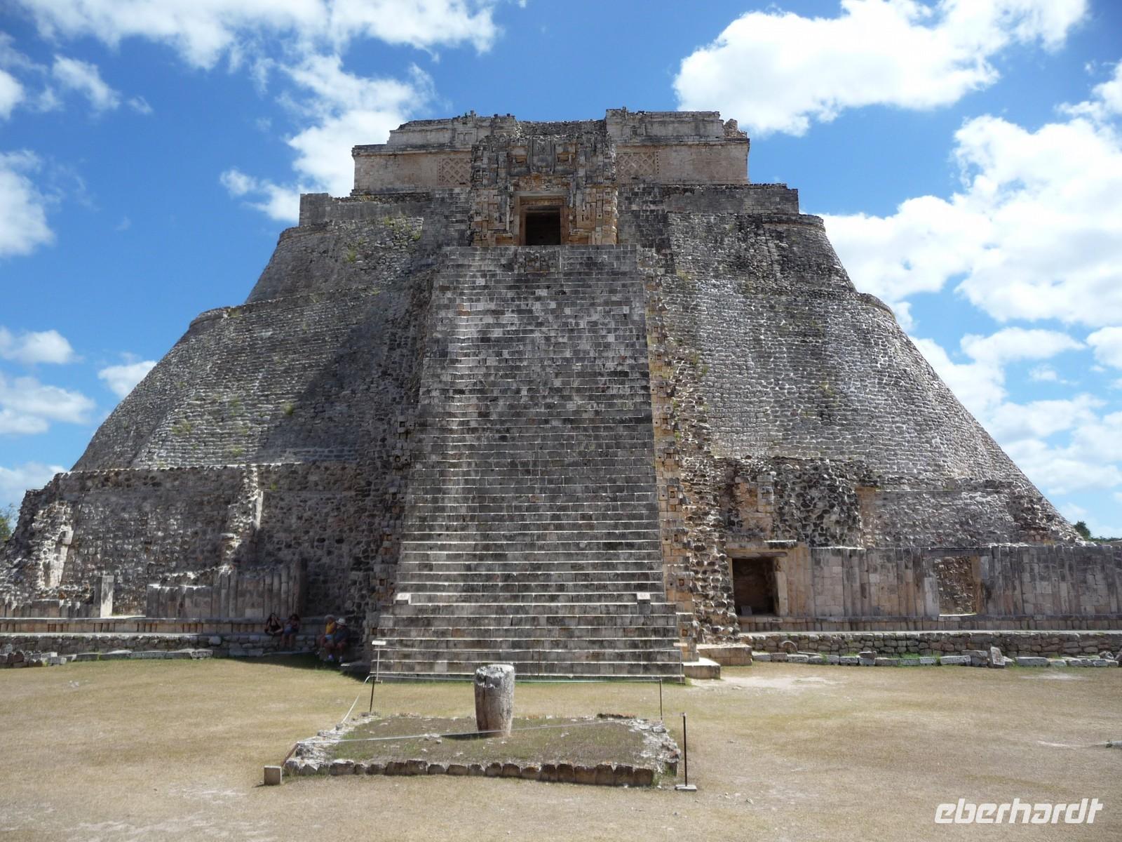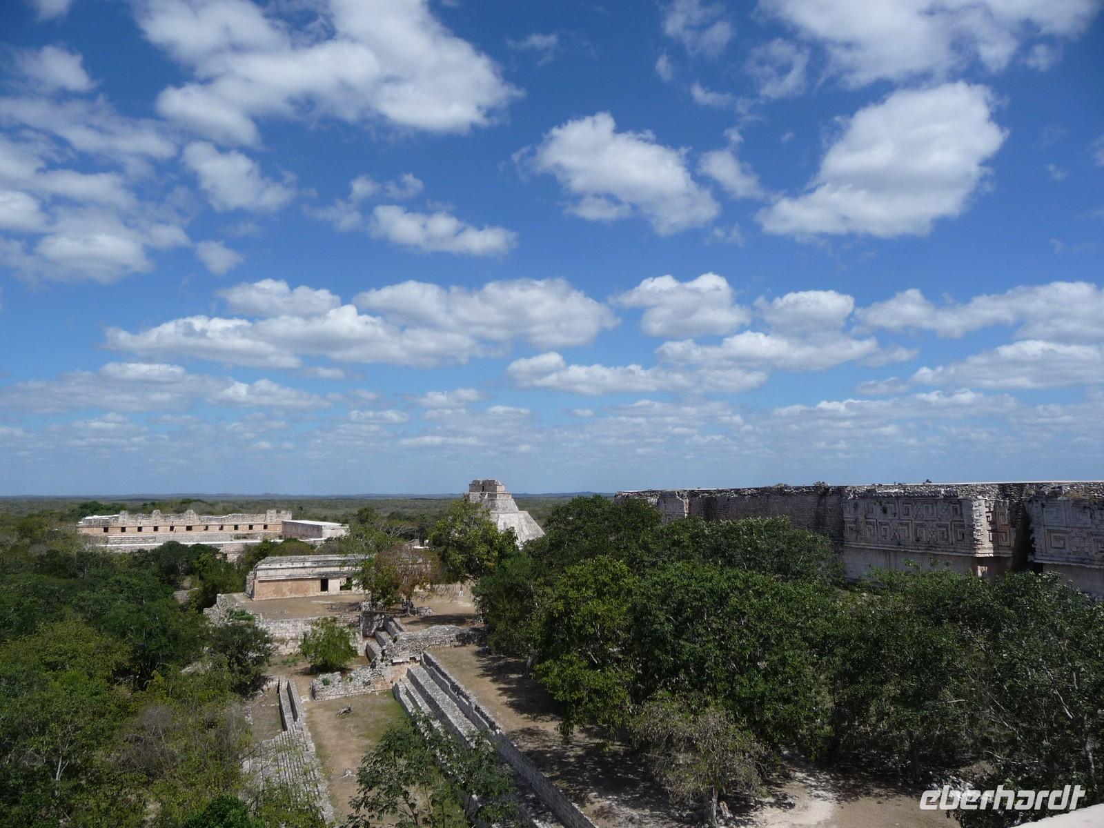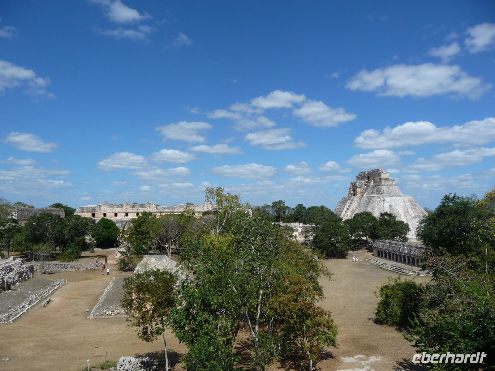 Über die Mittagszeit besichtigten wir die Ruinenstätte Uxmal, eine weitere bedeutende Anlage der Maya. Besonders beindruckt waren wir hier von der ovalen "Pyramide des Zauberers", die der Sage nach von einem Zwerg in nur einer Nacht erbaut worden sein soll, vom Nonnenviereck mit seinen wunderschönen, kunstvollen Reliefs und von der Vollkommenheit des Gouverneurspalastes. Interessant war auch, dass in der Anlage derart viele Leguane unterwegs waren, dass man schon aufpassen musste, nicht ausversehen über sie zu stolpern, während man gerade nach oben schaut und die Pyramiden bestaunt .