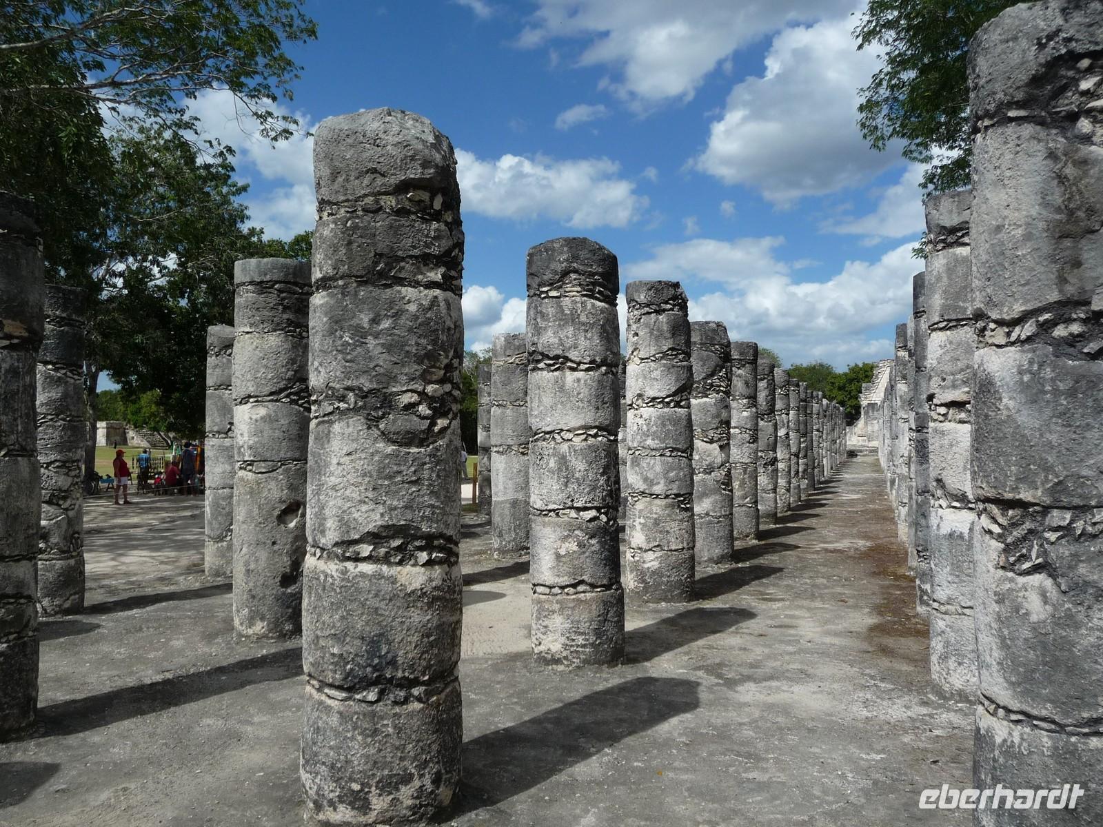 Am frühen Nachmittag folgte nun ein Höhepunkt unserer Reise - die Besichtigung von Chichén Itzá, der wohl bekanntesten Maya-Stadt überhaupt. Die Größe und Weitläufigkeit dieser Anlage ist einfach unbegreiflich und mit Worten kaum zu beschreiben. Während unseres Rundgangs betrachteten wir unter anderem das Observatorium, das Nonnenhaus, die Grabpyramide des Großen Priesters, die Gruppe der 1000 Säulen, den Tempel der Krieger mit der berühmten liegenden Figur des Chac-mool, die Heilige Cenote (sozusagen ein riesiger, natürlicher Opferbrunnen), den Ballspielplatz und nicht zu vergessen natürlich die große Pyramide des Kukulkan. Wöllte man die Anlage wirklich ausführlich entdecken, bräuchten man wahrscheinlich einen ganzen Tag... doch auch während unseres "Kurzbesuches" erfuhren wir von unseren örtlichen Reiseleiterin Laura viel Interessantes über die Geschichte dieses mystischen Ortes.