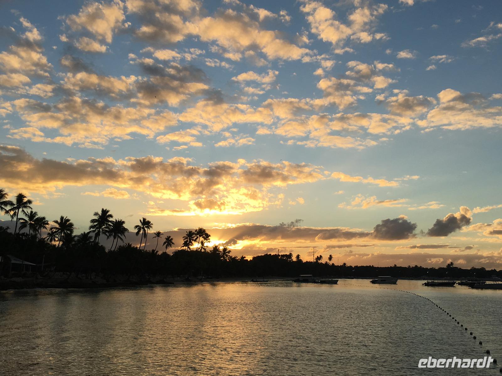 In Punta Cana landen wir circa 9 Stunden später gegen 18.00 Uhr Ortszeit und werden von angenehm warmen Temperaturen und mit Sonnenschein empfangen. Nach dem einstündigen Einreiseprozedere steigen wir allerdings schon im Dunkeln in unseren Bus. Nach einer Stunde Fahrt erreichen wir gegen 20.00 Uhr unser 5-Sterne Hotel „Dreams La Romana Resort" in Bayahibe nahe La Romana.
