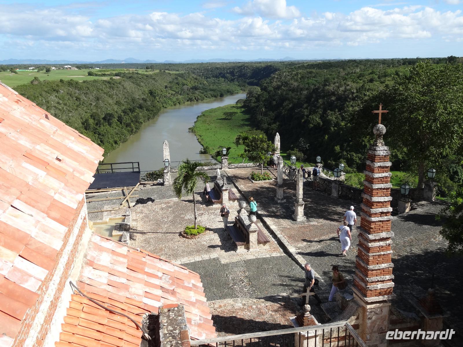 Nach einem reichhaltigen Frühstück mit exotischen Früchten und zahlreichen frisch gepressten Säften beginnt unser halbtägiger Ausflug mit unserem einheimischen, deutsch sprechenden Reiseleiter Roberto („ohne Blanco"). Wir überqueren bei unserer Busfahrt den Chavon-Fluss und erreichen nach einer halben Stunde das gleichnamige Künstlerdorf Altos de Chavón, welches einer mediterranen Siedlung aus dem 16. Jahrhundert nachempfunden, jedoch erst in den 70er Jahren gebaut wurde. Kunststudenten aus aller Welt studieren hier und können ihrer Kreativität nachgehen. Nach einem kleinen Spaziergang durch die romantischen Gassen und entlang des Pfades der Liebe stehen wir vor dem eindrucksvollen Amphitheater im römischen Stil, welches Platz für 5000 Besucher bietet und regelmäßig für klassische Konzerte genutzt wird. Letzter Halt im idyllischen Dorf ist Kirche Iglesia San Estanislao. Im Anschluss folgt der Besuch der Tropfsteinhöhle Cueva de las Maravillas - Höhle der Wunder, die mit mystischer Beleuchtung und unglaublicher Akustik beeindruckt. Bei einem Rundgang genießen wir den Anblick der unterirdischen Welt aus Stalagmiten und Stalagtiten, die durch ihre fantasievollen Gebilde und Wandmalereien die Geschichte der Taínos, der Ureinwohner, vor hunderten Jahren widerspiegelt.