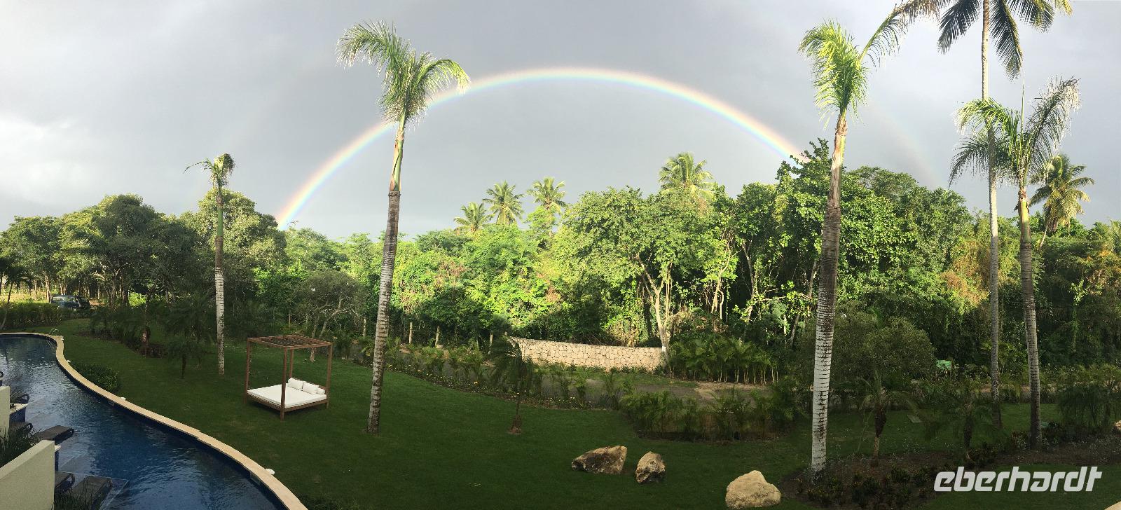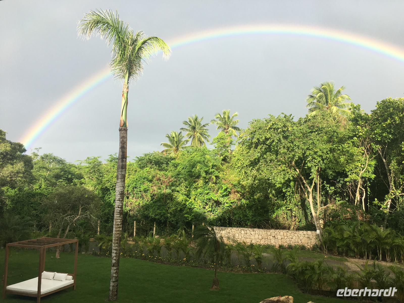 Unser ausgiebiges Frühstück wird von einem tropischen Regenschauer begleitet, der jedoch nur von kurzer Dauer ist. Der Januar war ganz untypisch für die Karibik ein sehr verregneter Monat, doch wenn Engel reisen sieht der Februar wieder sehr sonnig aus ?!