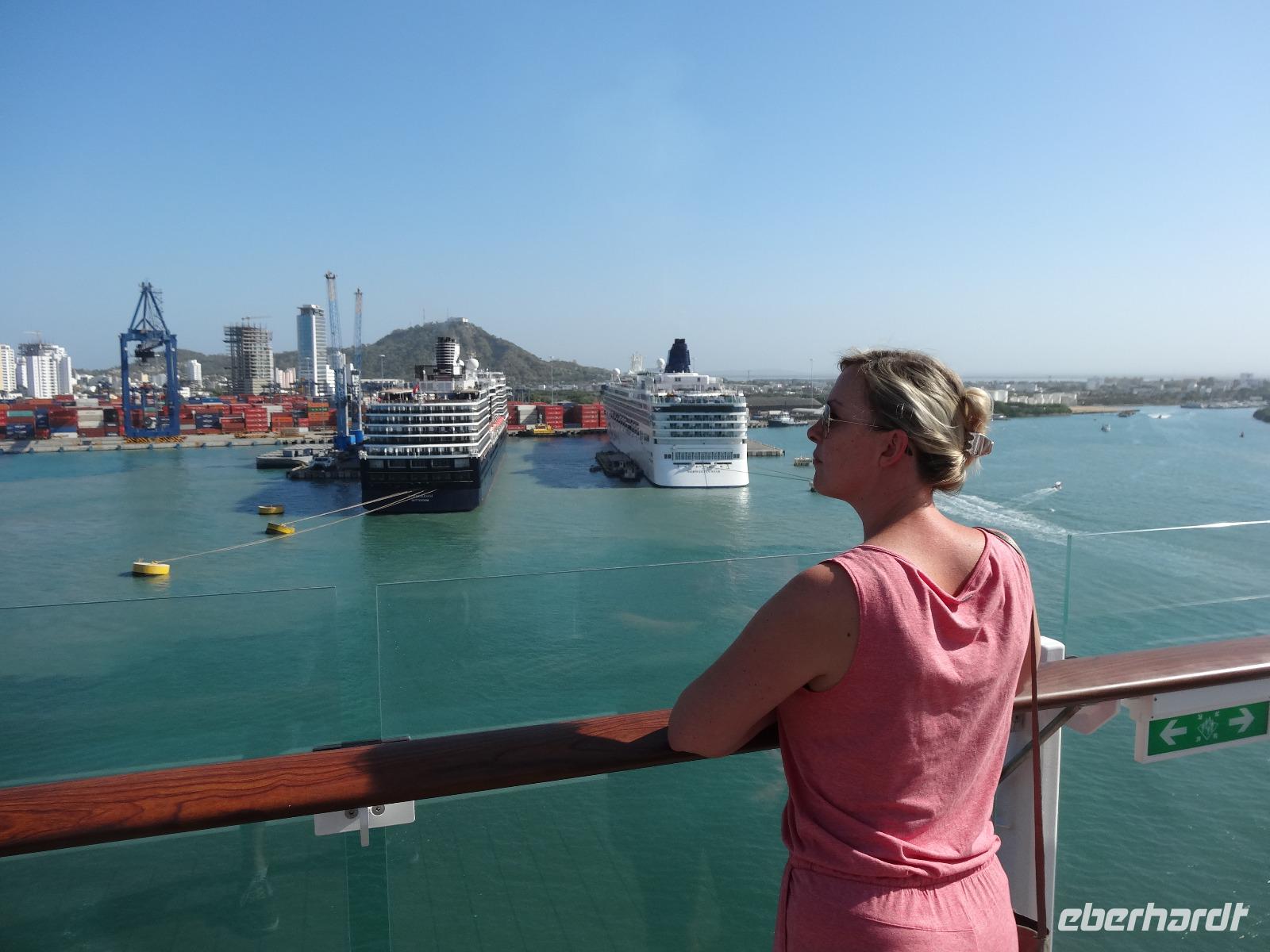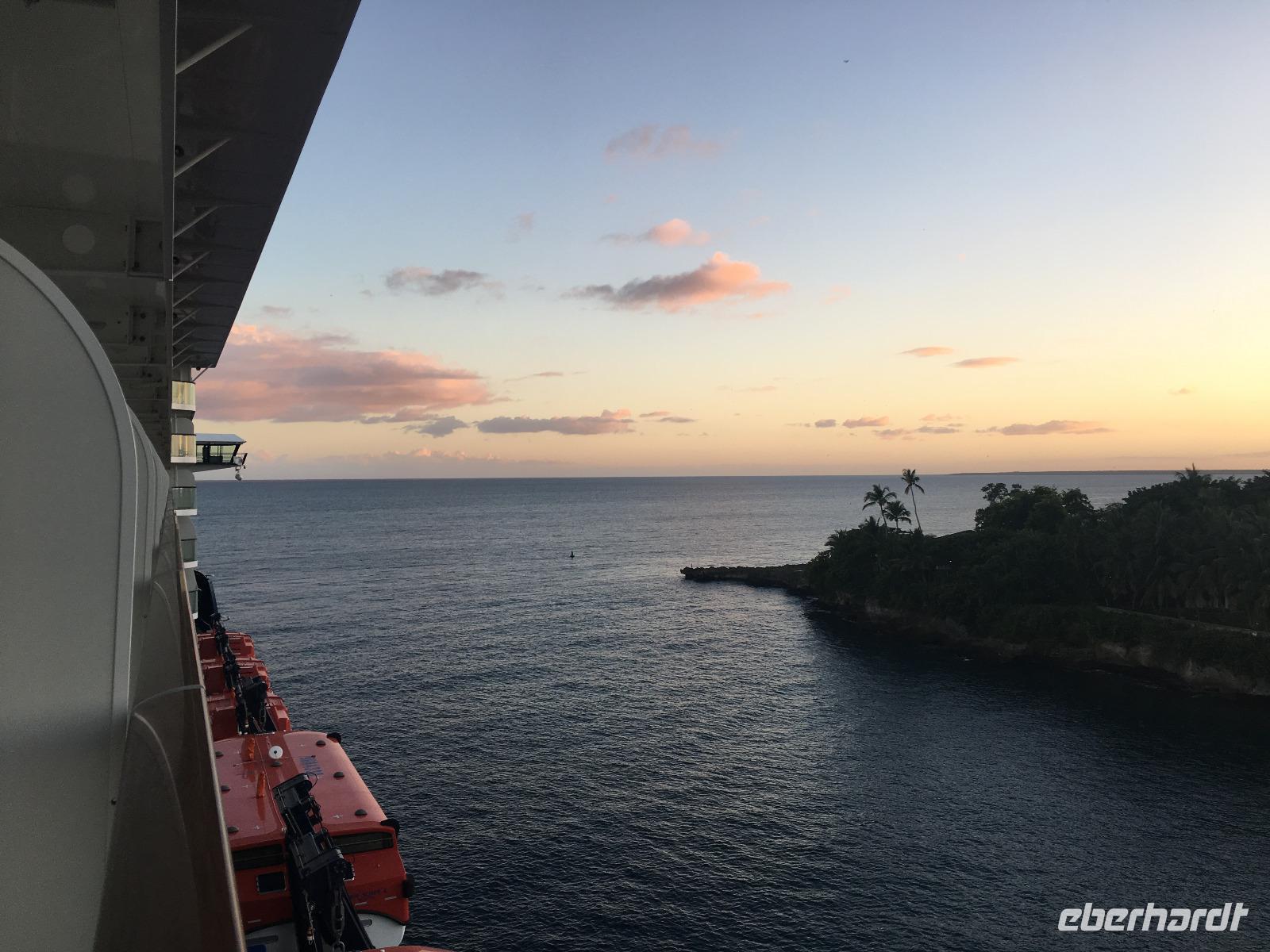 Bereits am späten Abend haben wir unsere Koffer vor die Kabine gestellt, damit wir diese heute Nachmittag am Terminal in Empfang nehmen können. Ein letztes üppiges Frühstück an Bord, dann müssen wir spätestens 9.00 Uhr unsere Kabinen verlassen und uns den Ausreisestempel bei den Dominikanischen Behörden im Atelier abholen. Wir genießen die letzten Stunden auf unserem Wohlfühlschiff an unseren jeweiligen Lieblingsplätzen, schlemmen noch eine Kugel Schoko-Chili-Eis am Pool und bummeln übers Schiff ...