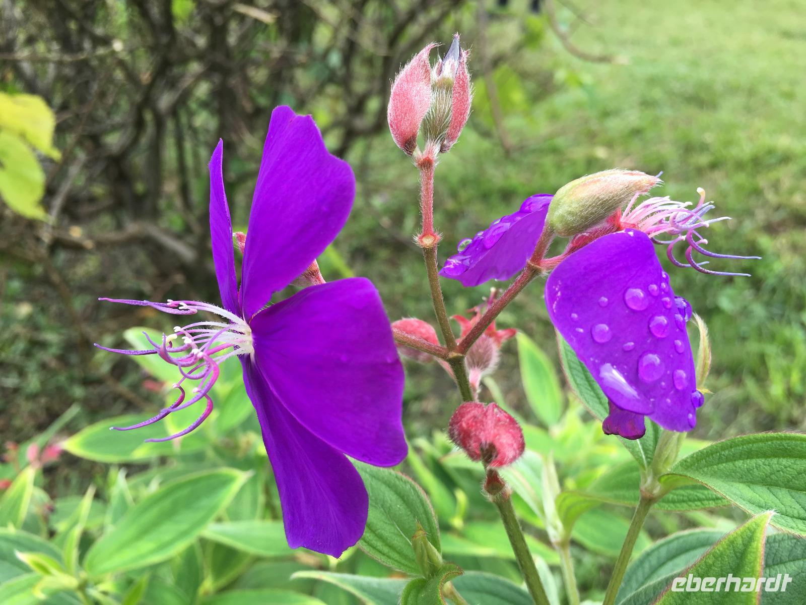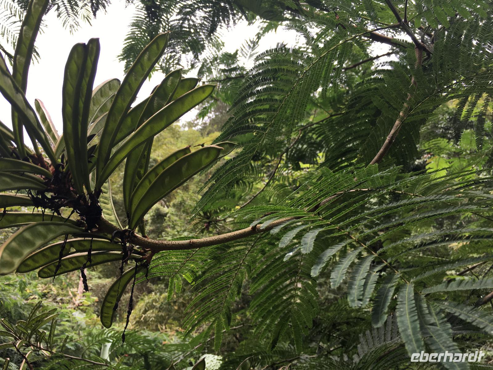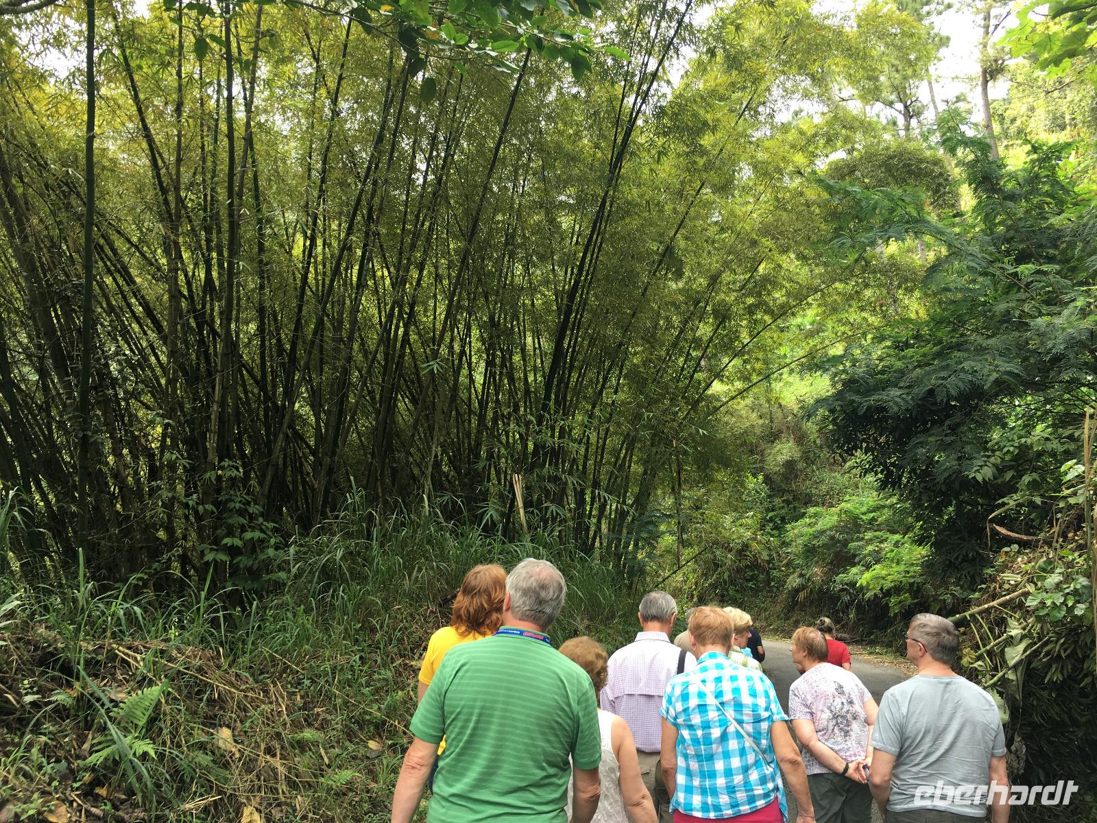 Der Großteil unserer Reisegruppe begibt sich auf einen Ganztagesausflug in Richtung Blue Mountains. Wir fahren entlang der Küste, vorbei am historischen James Bond Beach und halten an einem Friedhof, wo hier traditionell jeder seine Grabstätte individuell gestalten darf und wir einfach nur über die künstlerische Vielfalt staunen können. Nach einer reichlichen Stunde Fahrt gen Osten auf der gut asphaltierten Küstenstraße verlassen wir diese und unsere hup-intensive, holprige und abenteuerliche Fahrt auf engen und kurvigen Straßen in die Berge beginnt. No Problem ;-)! Wir werden mit dem Anblick der landschaftlichen Schönheit auf dieser grünen Insel belohnt und je höher wir in die Blue Mountains fahren, um so artenreicher wird die Flora. Wir unternehmen mit unserer örtlichen Reiseleiterin Silvia auf ca. 900 Metern Höhe einen kleinen Spaziergang bis zu einem Kaffeebauern und genießen das herrliche Grün: Flame of the Forest, riesige Bambusgewächse und Farne, Kaffeepflanzen, Weihnachtssterne und exotische Blumen wechseln sich ab.