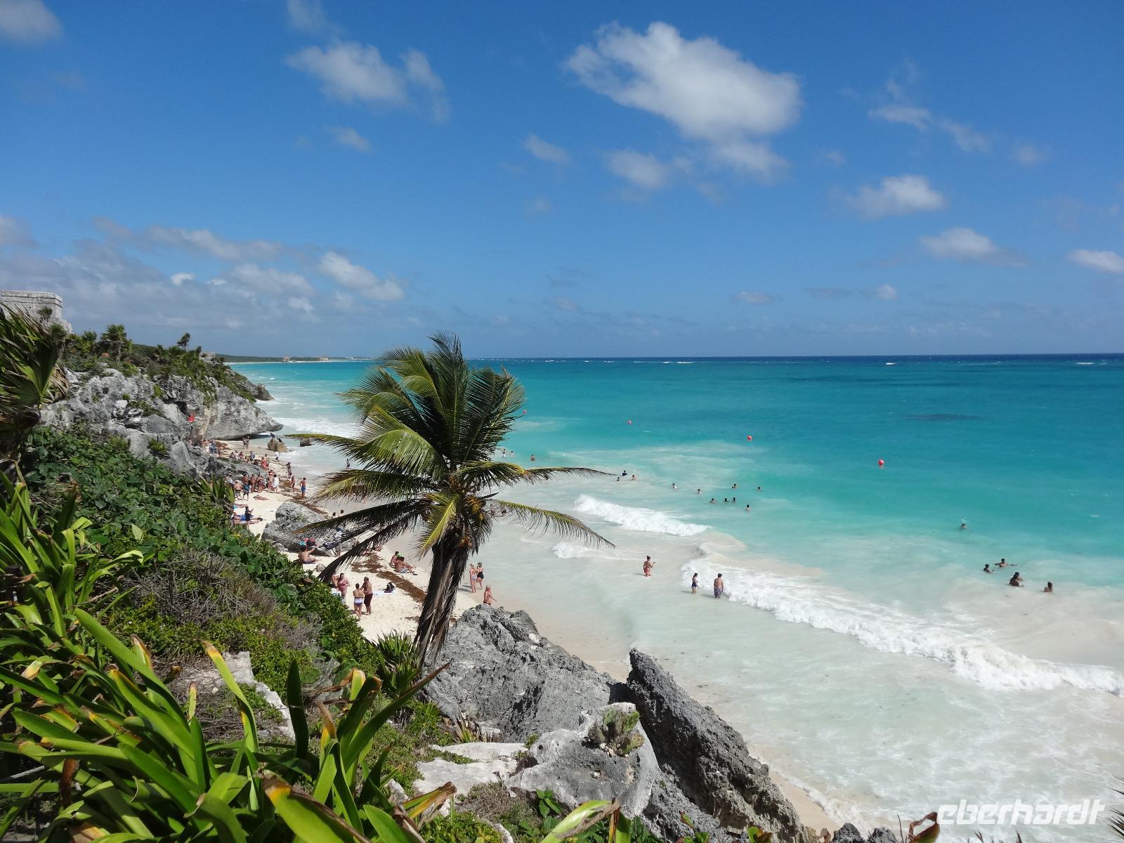 Die Insel Cozumel vor der Halbinsel Yucatan ist ein guter Ausgangspunkt für kulturelle Ausflüge aufs Festland. Beim Eberhardt-Ausflug tauchen wir heute in die mystische Welt der Maya ein. Das nahe gelegenste Ziel dafür ist die kleine auf Klippen über dem Meer erbaute Maya-Stadt Tulum, die als einzige durch ihre atemberaubende Lage direkt vor türkisblauem Meer mit schneeweißem Palmenstrand besticht.