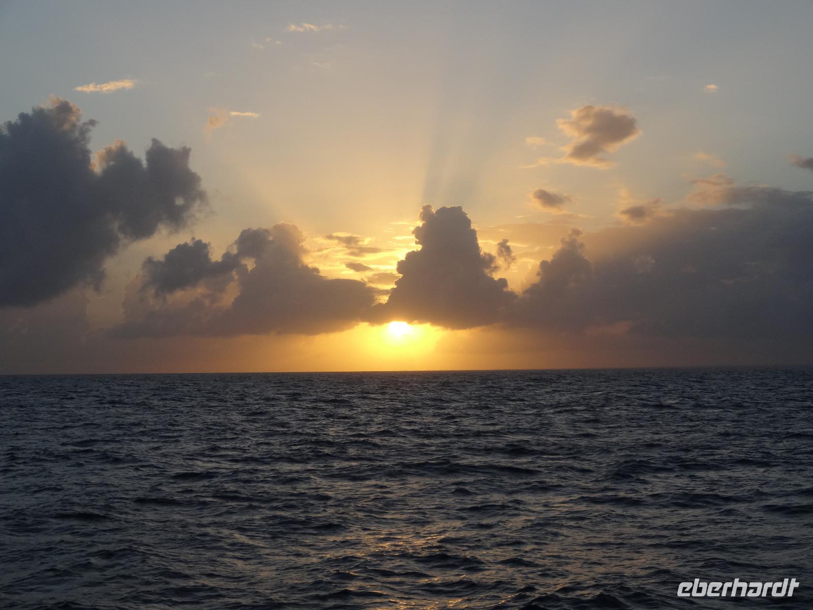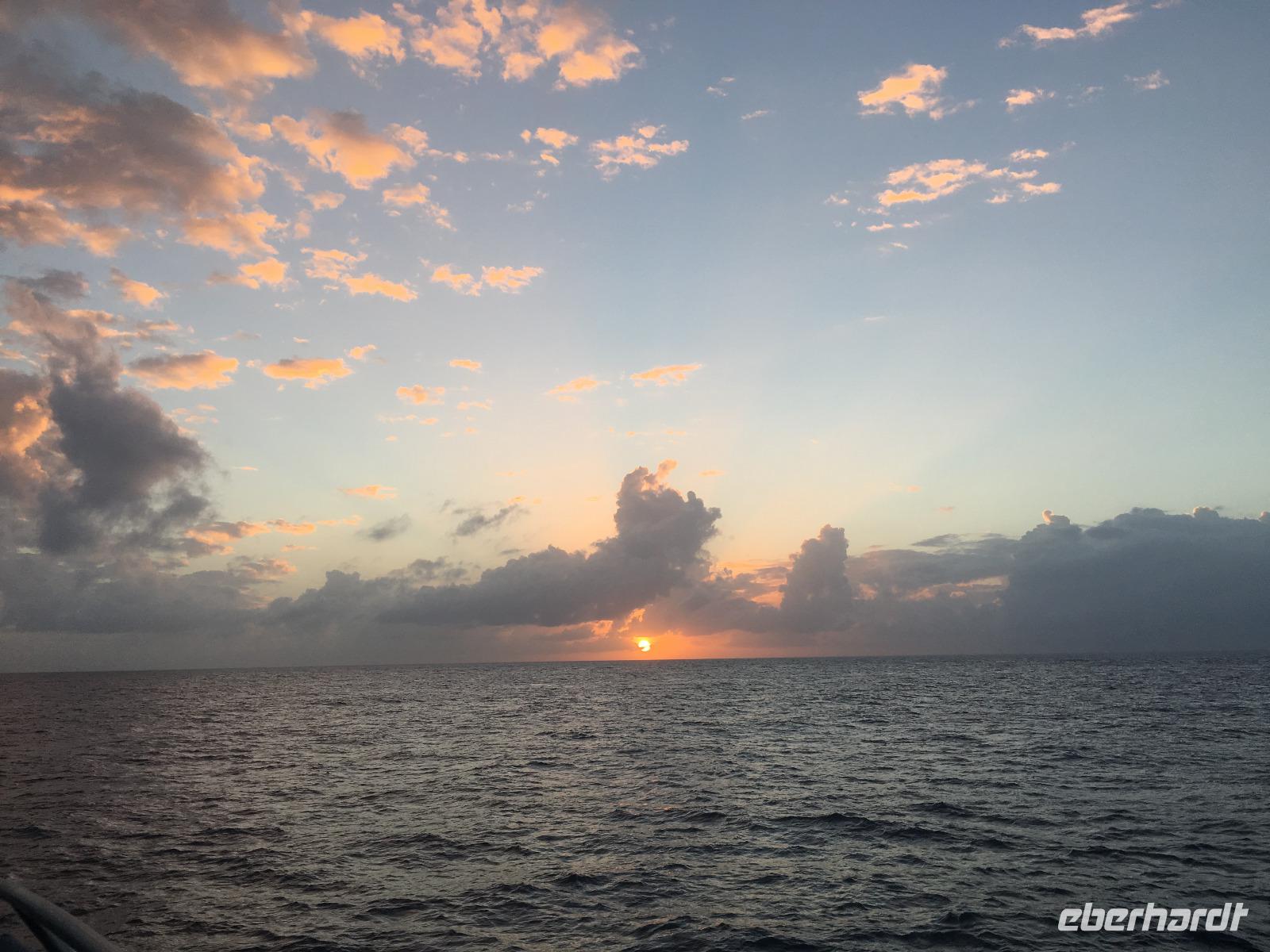 Später werden wir ganz leicht in den Schlaf gewiegt und verbringen die erste Nacht auf hoher und ruhiger See.