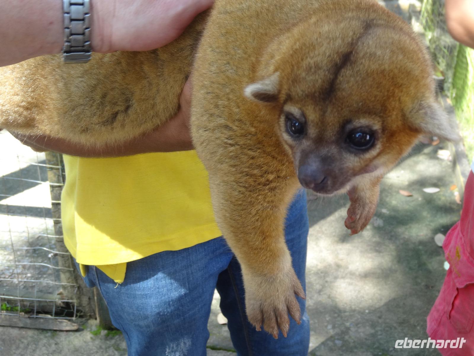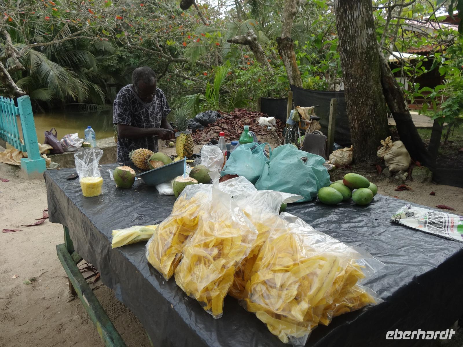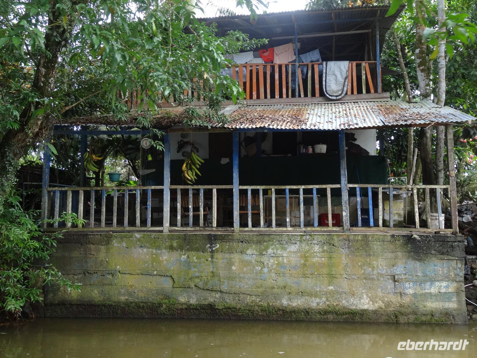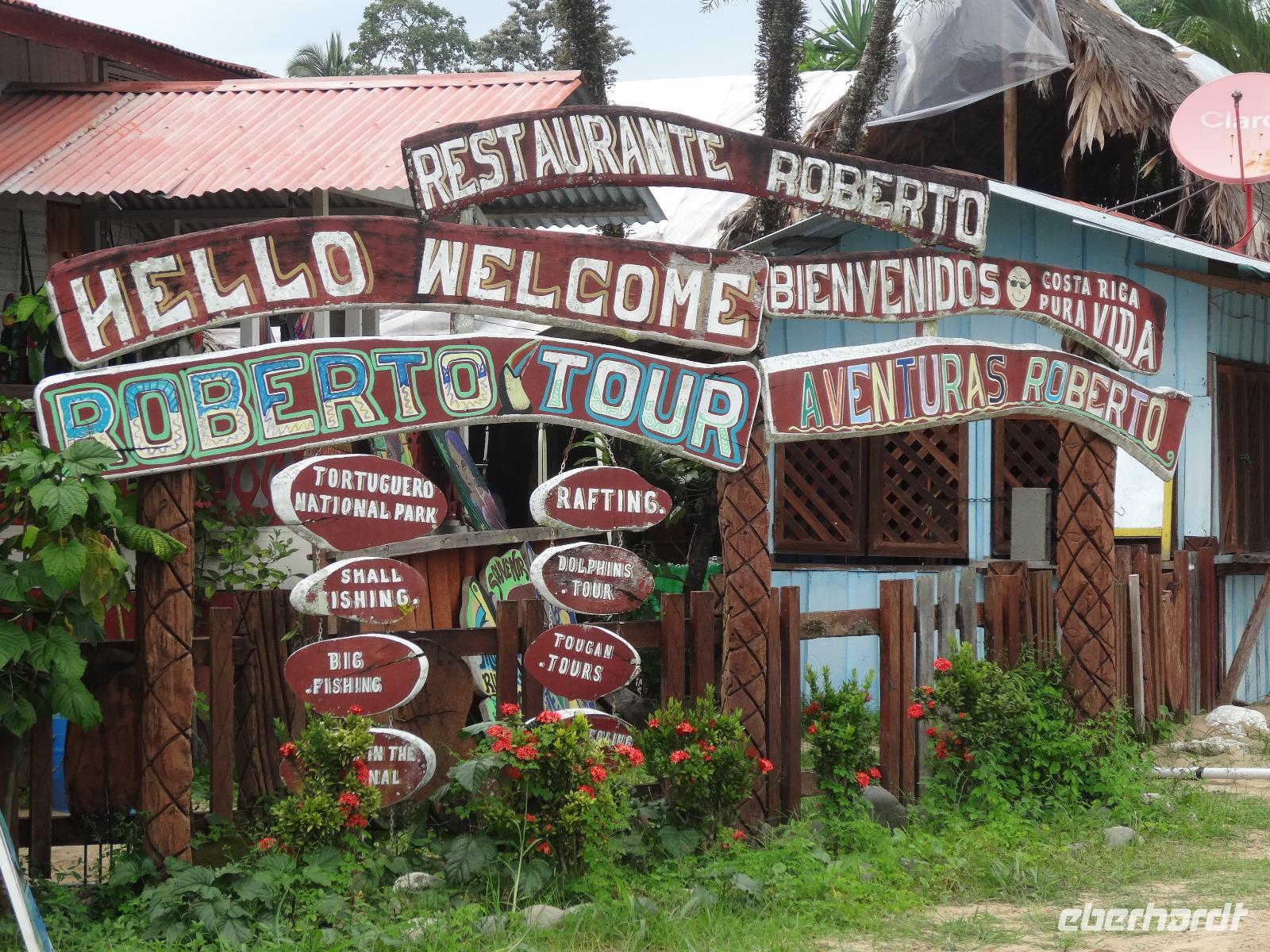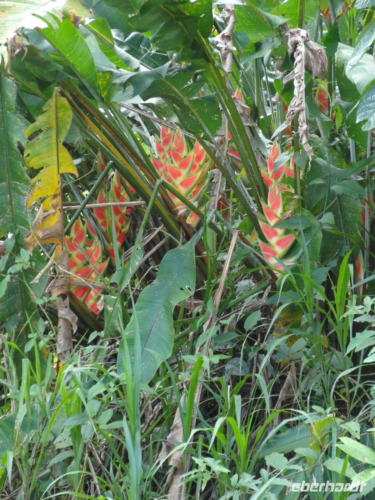 Die karibische Seite des Landes zieht uns heute beim exklusiven Eberhardt-Ausflug in ihren grünen Bann. Gut gelaunt empfängt uns am Morgen unser deutsch sprechender Reiseleiter Enrique. Wir starten direkt nach Moin, wo unser kleines Ausflugsboot bereit steht und wir eine zweistündige Bootsfahrt auf den Kanälen von Tortuguero unternehmen. Enriques freundliche Begleitung Maria versorgt uns mit frischem Obst und „local beer". Wir halten gespannt Augen und Ohren offen und unser Bootsführer sowie Enrique zeigen uns immer wieder Faultiere, Brüllaffen, Tukane, Reiher und den hübschen grünen Basilisk. Auch ein kleiner leuchtend roter Erdbeerfrosch wird für uns aus dem Regenwald geholt ?.