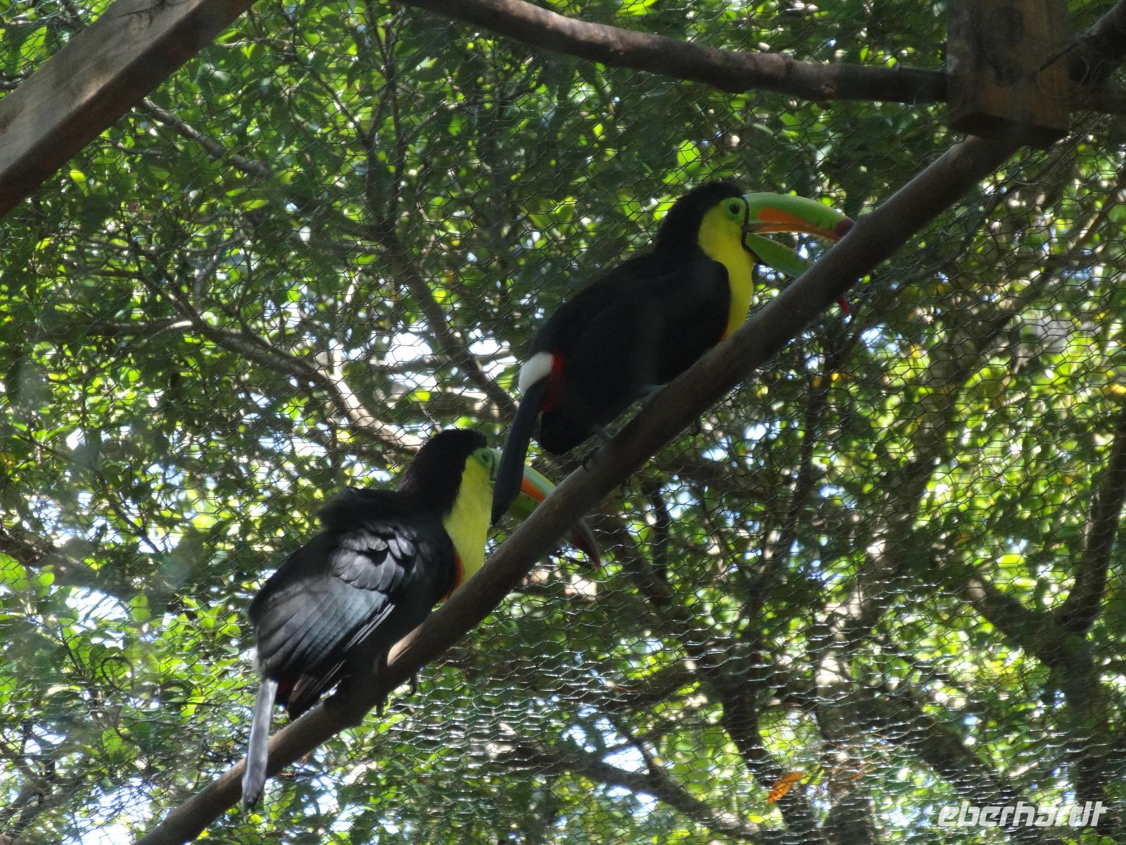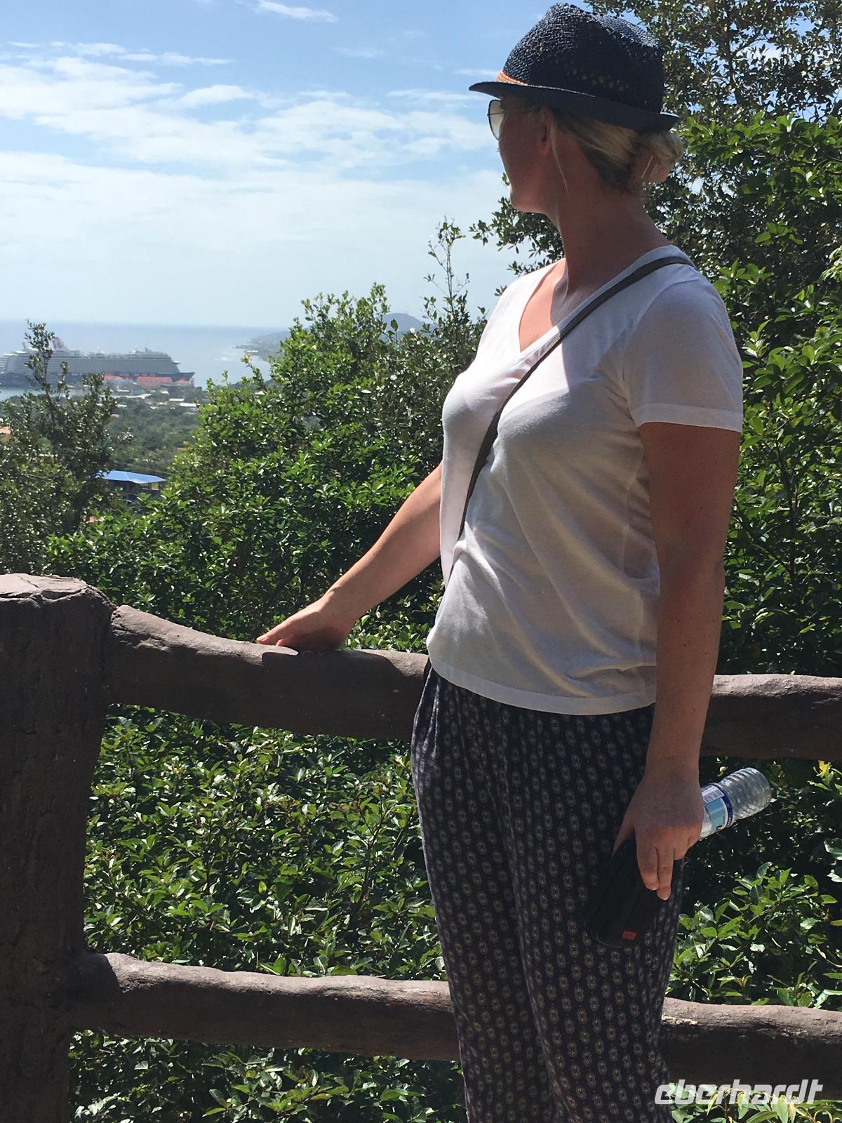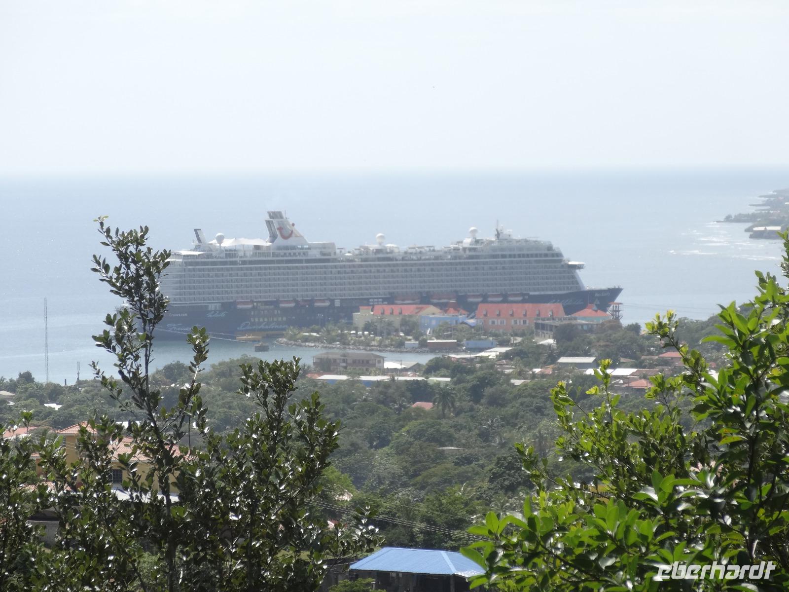 Coxen Hole, die Hauptstadt der Insel, empfängt uns mit einer hübschen Hafenpromenade. Die meisten von uns nehmen heute am Ausflug „Dschungelspaziergang auf den Spuren der Mayas" teil. Wir fahren mit dem Bus eine Weile durch den karibischen Ort und bekommen einen kleinen Einblick in das Leben der Einheimischen, die zumeist in den hier typischen Pfahlhütten leben. Angekommen im Naturpark Mayan Eden Eco Park, der 2008 zum Schutz der Tiere und Natur gegründet wurde, beginnen wir mit unserem Rundgang durch den Regenwald. Immer wieder sehen wir am Wegesrand verschiedene Mayarelikte, die sehr detailgetreu Informationen zur Lebensweise und Kultur der Mayas von Copán zeigen und von einem Guide des Tropenparkes sehr gut erklärt werden. Wir beschreiten wagemutig die nagelneue Hängebrücke und erfahren auch viel zu Flora und Fauna. Zum Schluss gehen wir auf Tuchfühlung mit Spideraffen, Kinkajus (Wickelbären), so einigen zutraulichen Weißkopfäffchen und einem Ara, dem Nationalvogel von Honduras. Außerdem befindet sich hier der einzige Ort Mittelamerikas, wo Kolibris und Schmetterlinge zusammen leben. Diese versuchen wir mit etlichen Versuchen auf unseren Kameras einzufangen ;-). Wir fahren zurück und können noch ein wenig durch die belebte Stadt bummeln, bevor uns der Bus zur Mein Schiff 6 zurück bringt.