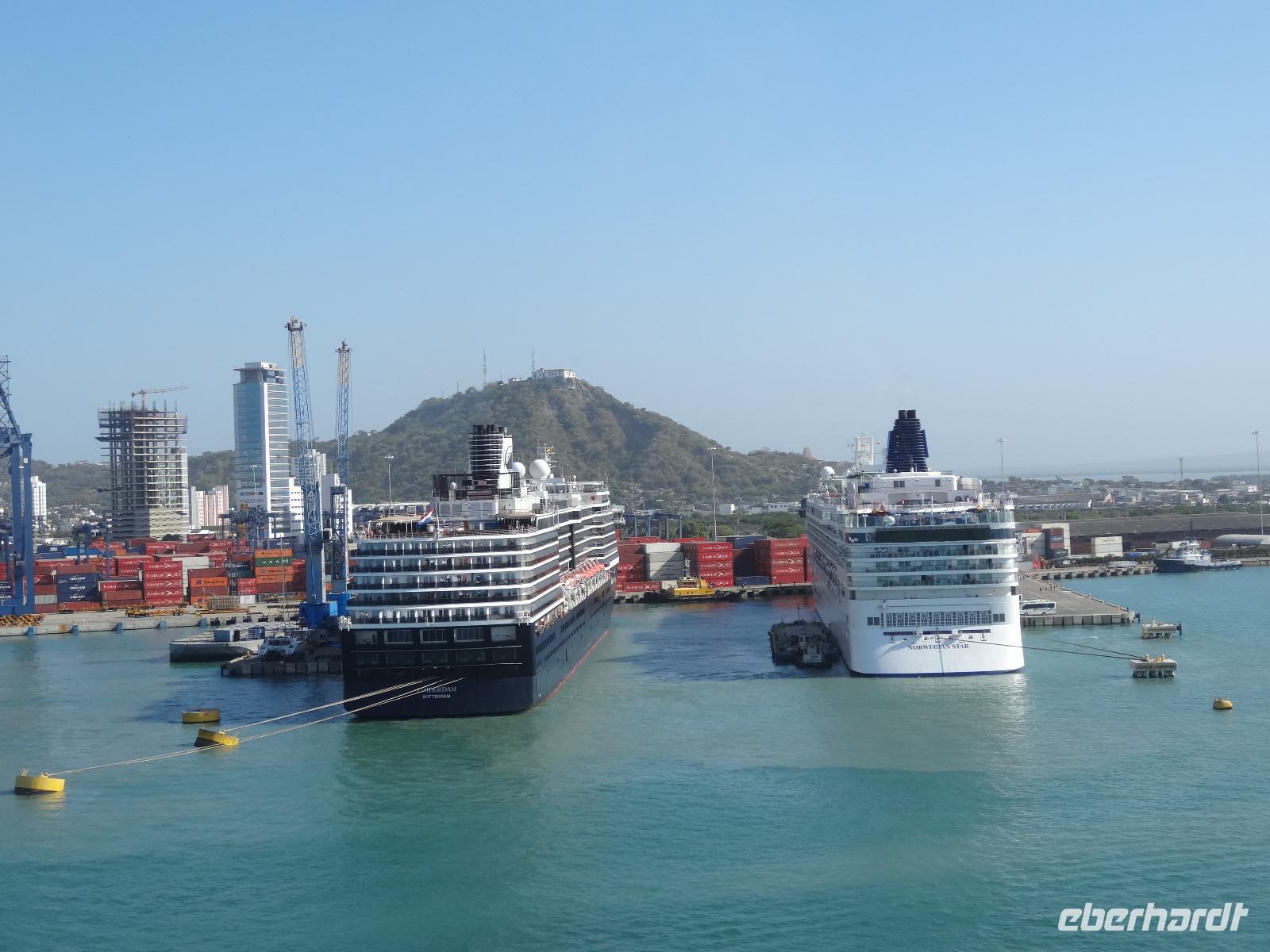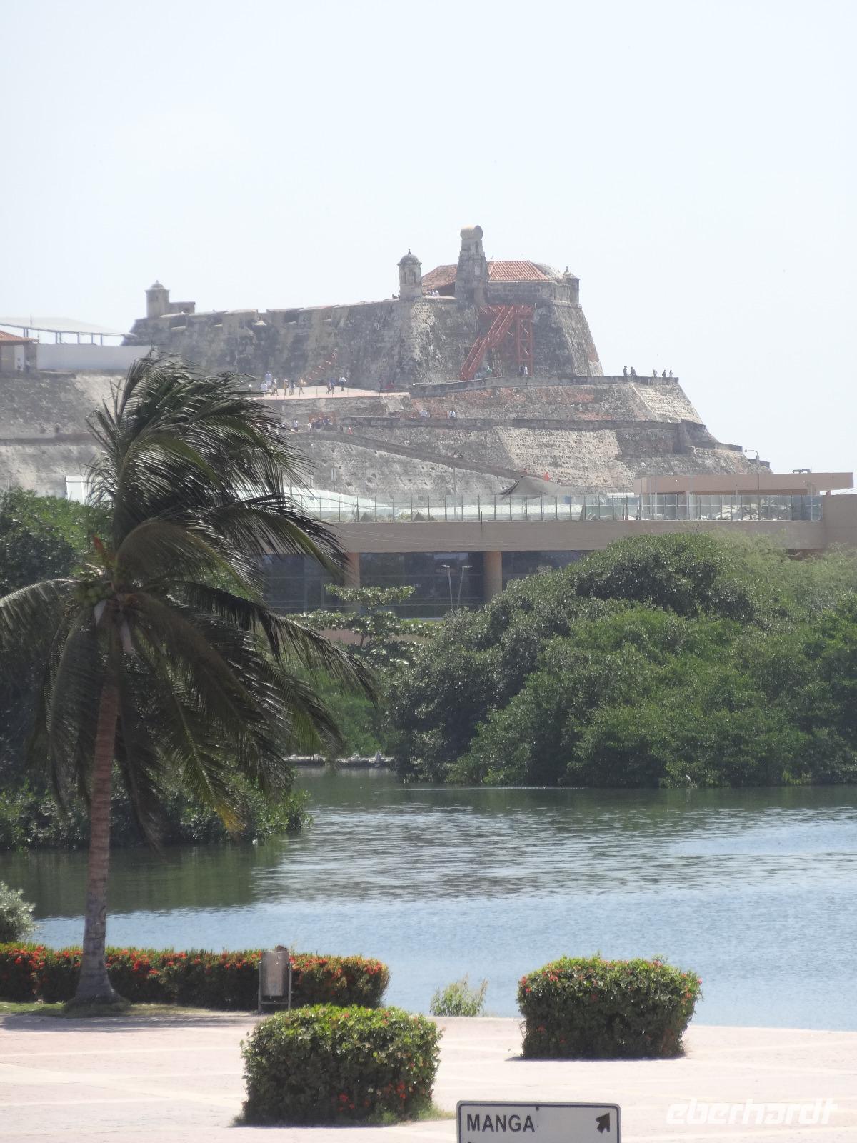 Bei der Einfahrt am Vormittag passieren wir die Halbinsel Bocagrande und sehen vor uns in der Ferne das Kloster La Popa, das auf einem 150 Meter hohen Hügel trohnt und Geschichten der Augustinermönche und über die Jungfrau Candelaria, die Cartagena von der Pest befreit und vor Piraten geschützt haben soll, erzählt.