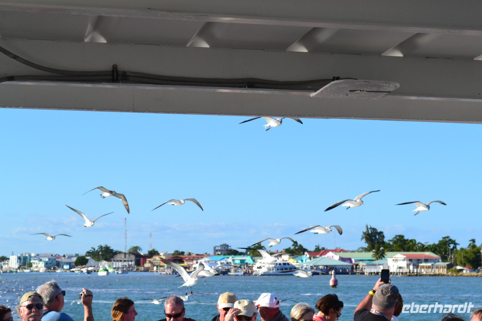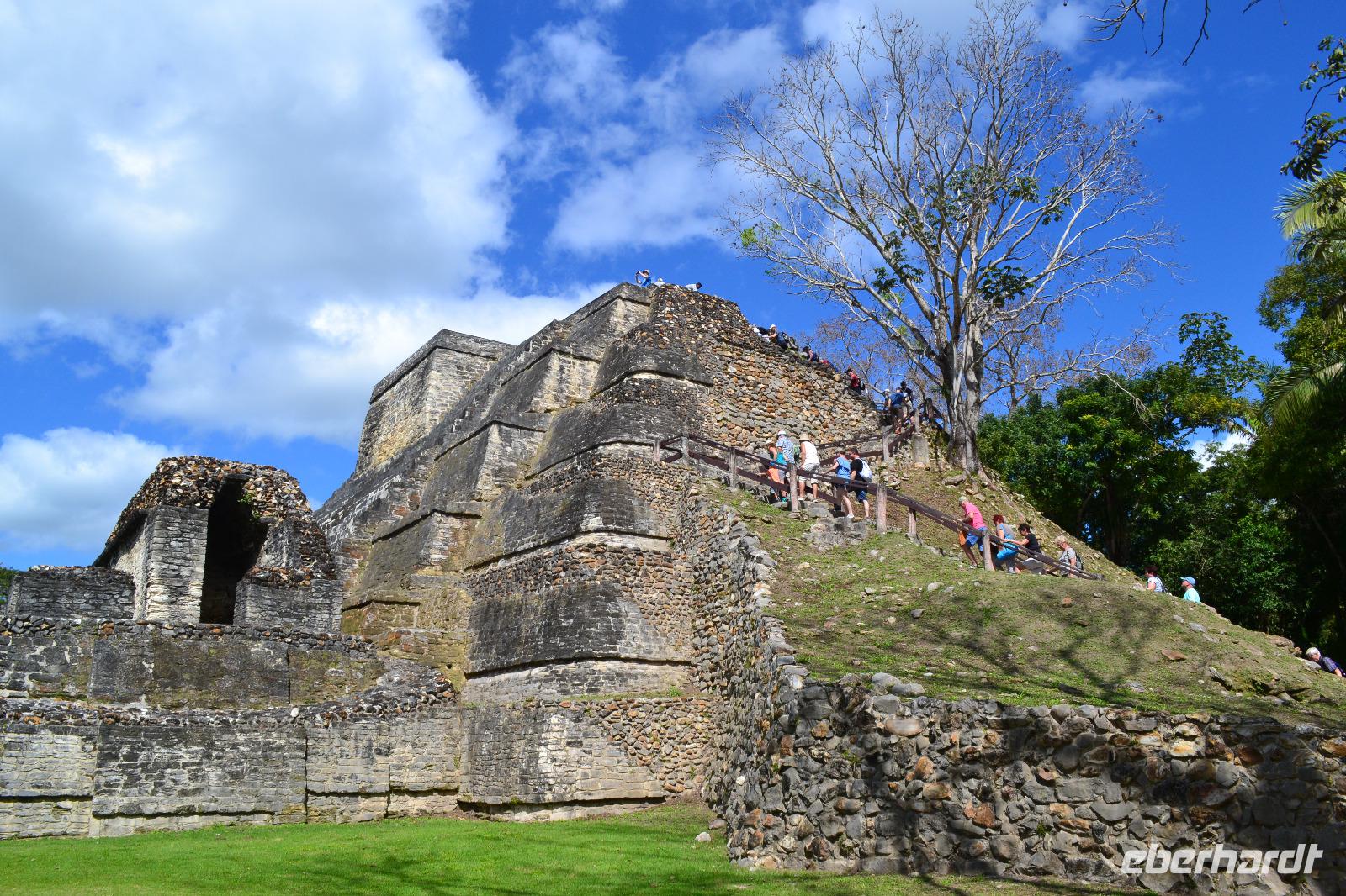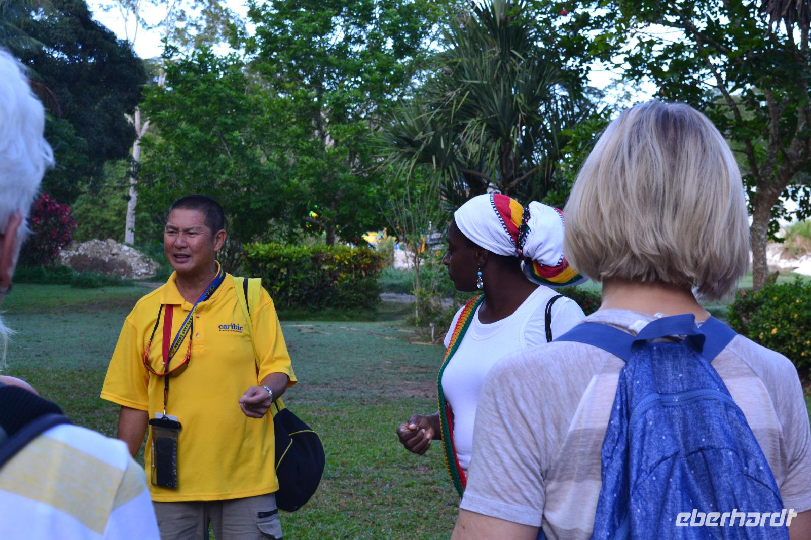 Heute lagen wir auf Reede vor dem Hafen von Belize. Mit Tenderbooten erreichten wir das Festland. Am späten Mittag tenderten wir nach Belize - besser bekannt unter britisch Honduras. Hier findet man nicht nur historische Mayastätten, sondern auch unglaubliche Unterwasserwelten am zweitgrößten Riff der Welt, dem mesoamerikanischen Reef. Ein Teil der Gruppe begab sich heute wieder auf die Spuren der Mayas und besuchte die ehemalige Stadt Altun Ha. Sie befindet sich ca. 45 km nördlich von Belize City. Die mächtigen Tempelanlagen und der großartige Blick von oben auf die zwei Hauptplätze beeindruckten uns. Erste Besiedelungen in Altun Ha lassen sich bis um 1000 vor Christus nachweisen. Auf den jeweilig einstündigen Busfahrten erzählte uns die Ortsansässige Reiseleiterin Paula einige Informationen über das Leben des einzigen englischen Staates ganz Mittelamerikas. Auch bei diesem Ausflug hatten wir eine Mitarbeiterin von TUI Cruises dabei, welche uns viele Inforationen auf Deutsch wiedergab. In der Anlage selbst gab uns Reisebegleitung Laura ein paar Informationen. Am Nachmittag erreichten wir den bunten karibischen Hafen wieder und fuhren mit unseren Tenderbooten zurück zu Schiff.