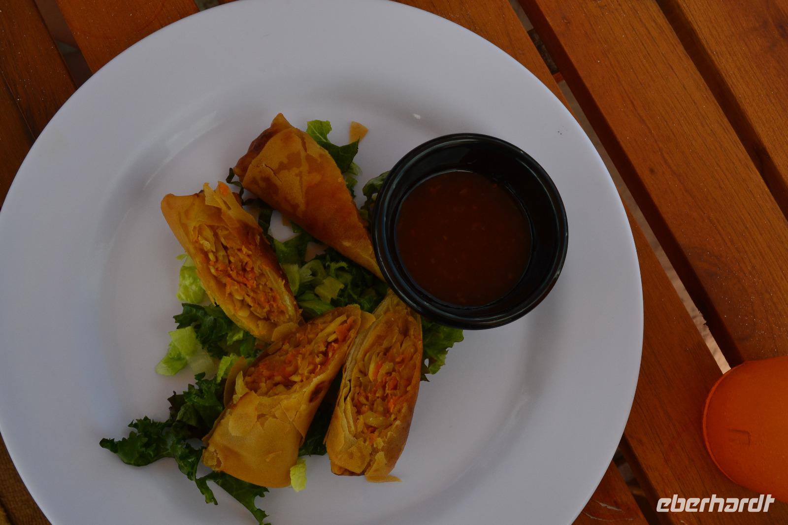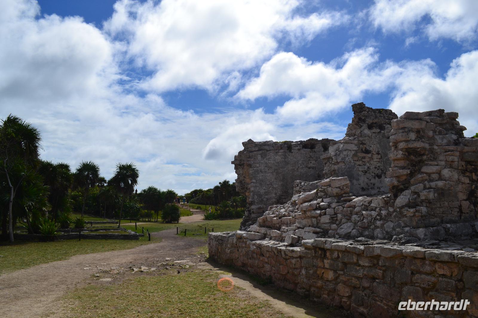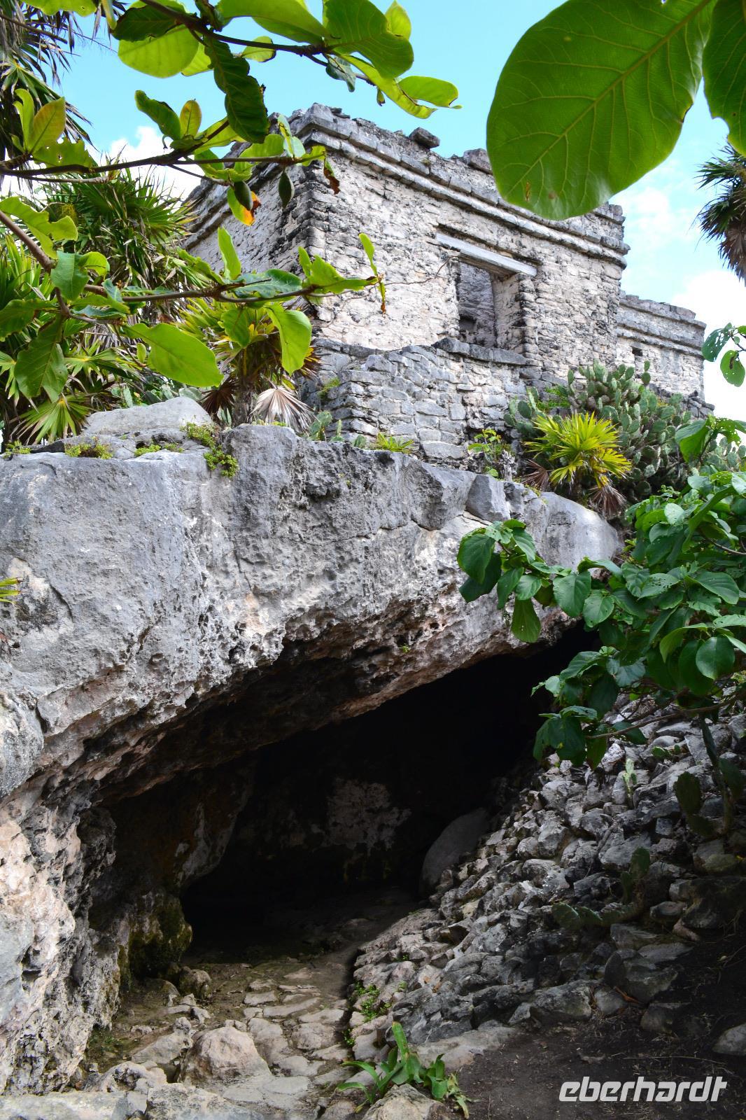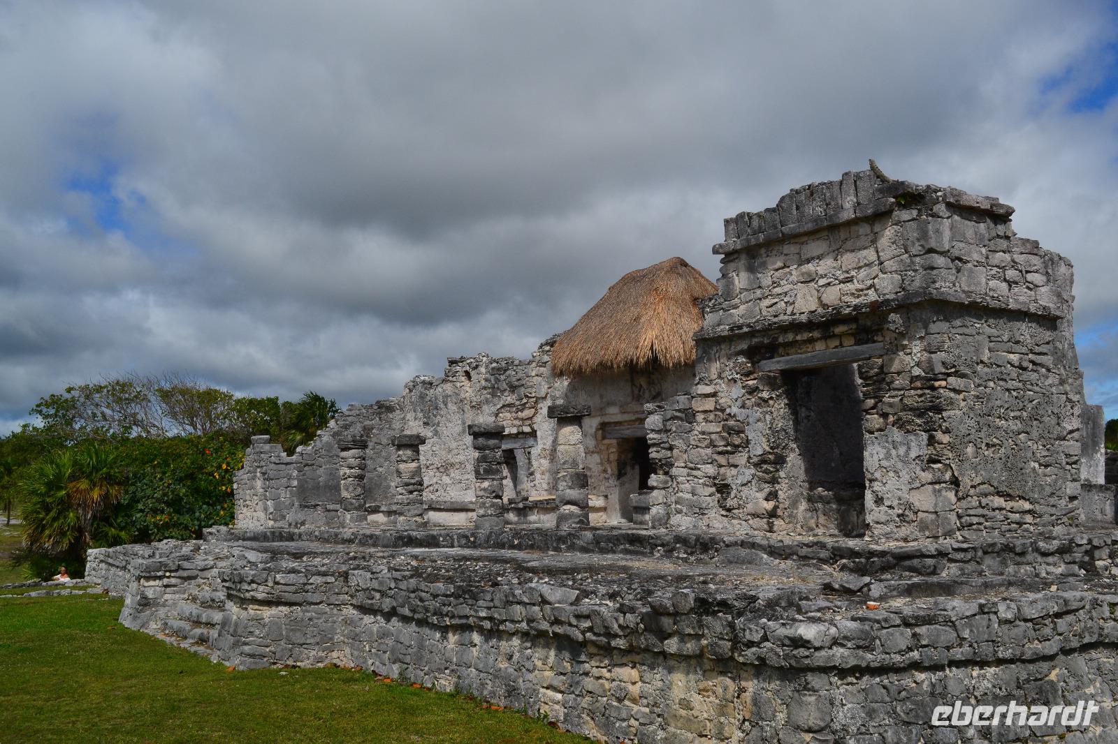 Zu einer humanen Zeit, nämlich 8 Uhr gingen wir gemeinsam von Bord und trafen im Shopping Center außerhalb des Kreuzfahrt Terminals auf unseren heutigen Reiseleiter Viktor. Er lebte in seinen jungen Jahren 8 Jahre lang in der Nähe von Ölbronn und beherschte dementsprechend unsere Sprache sehr gut. Sein erster Besuch in Deutschland war zur Eröffnung des Dönerladens von seinem Onkel in den 80 er Jahren in Berlin Kreuzberg. Zunächst liefen wir ca. 20 Minuten von dem großen Kreuzfahrt Anleger zu den öffentlichen Fähren. Übrigens können entlang der kleinen Insel Cozumel 8 Kreuzfahrtriesen gleichzeitig anlegen. Am heutigen Tag entdeckten wir 5 dieser Sorte. Nach ca. 35 Minuten erreichten wir den Hafen von Playa del Carmen am Festland Mexikos. Da es derzeit Winter in der Karibik ist, ließ der Regen nicht lang auf sich warten. Ausgerüstet mit Regenponochos und Schirmen gelangten wir nach einigen Metern zu unserem örtlichen Reisebus. Auf der kurzen 45-Minütigen Fahrt nach Tulum erzählte uns Viktor einiges von seinem Leben in Mexiko und von der Maya Kultur. Dort angekommen lachte die Sonne am Himmel bereits wieder und wir genossen den Spaziergang über die historische Stätte, welche als Besonderheit direkt am Meer gelegen ist. Dank den Erläuterungen unseres Reiseleiters konnten wir uns in das Leben der Mayas gut versetzen. Die nennenwertensten Gebäude sind der „Tempel des Herabsteigenden Gottes", der „Tempel des Windes" und der „Freskentempel". Pünktlich zur Mittagszeit und einem weiteren Regenschauer brachen wir zu unserem Mittagessen und Strandaufenthalt dem Serenity Camp auf. Nur für uns legte der Regen eine Pause ein, in welcher wir im Trockenen Essen und die Sonne, sowie den Strand genießen konnten. Als Vorspeise wurden uns Frühlingsrollen gereicht. Das Hauptgericht war ein Rindersteak mit Gemüse und das Dessert ein süßer Crêpe mit Eis. Nach dieser Stärkung hatten wir noch rund 1,5 Stunden Zeit um den Strand zum Baden und entspannen zu nutzen. Glücklicherweise hatten wir für unsere Erkundungen im freien immer Glück mit dem Wetter. Die Fährüberfahrt zurück nach Cozumel schlug dem ein oder anderen kräftig auf den Magen. Die Mein Schiff 6 legte heute eine Stunde später als geplant ab, da ein Ausflugsbus ein wenig Verspätung hatte.