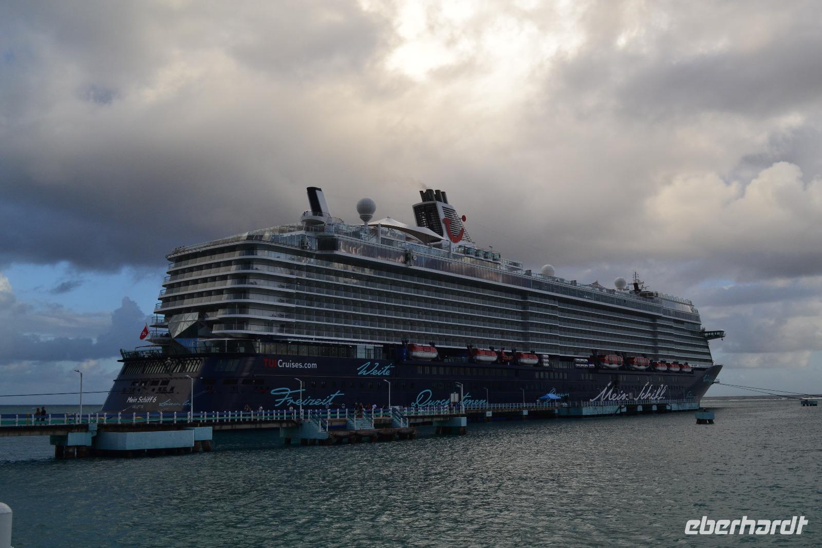Heute konnten wir den ersten Tag der Reise ein bisschen länger schlafen. Gut gelaunt legten wir einen kurzen Stopp an der örtlichen Zigarrenfabrik ein, wo wir einen kleinen Einblick in die Herstellung erhaschen konnten. Laura übersetzte uns Zusammenfassend die wichtigsten Eckpunkte der Produktion. Die Zigarren werden von Hand hergestellt und Kosten zwischen 2-60 USD pro Stück. Bevor es auf die „Mein Schiff 6" ging verteilte Reisebegleitung Laura an alle Gäste ein Glas typisch karibischen Rum. Wir zählten am Cruise Terminal von La Romana unter die ersten Gäste, welche sich als „Neue" an Bord einfinden durften. Nach dem Ausfüllen der Ausreisebestimmungen durften wir endlich auf das große Schiff und schon bald waren auch unsere Kabinen samt Gepäck Bezugsbereit. Nach ersten eigenen Erkundungen unseres neuen Zuhauses für die kommenden 14 Tage stand die Seenotrettungsübung 21:15 als letzter Punkt auf dem Tagesprogramm. Diese Übung ist Pflicht, bevor das Schiff ablegen kann. Wir liefen pünktlich aus dem Hafen aus und summten bei der Musik von Unheilig „große Freiheit" - dem Titelsong der Mein Schiff Flotte mit.