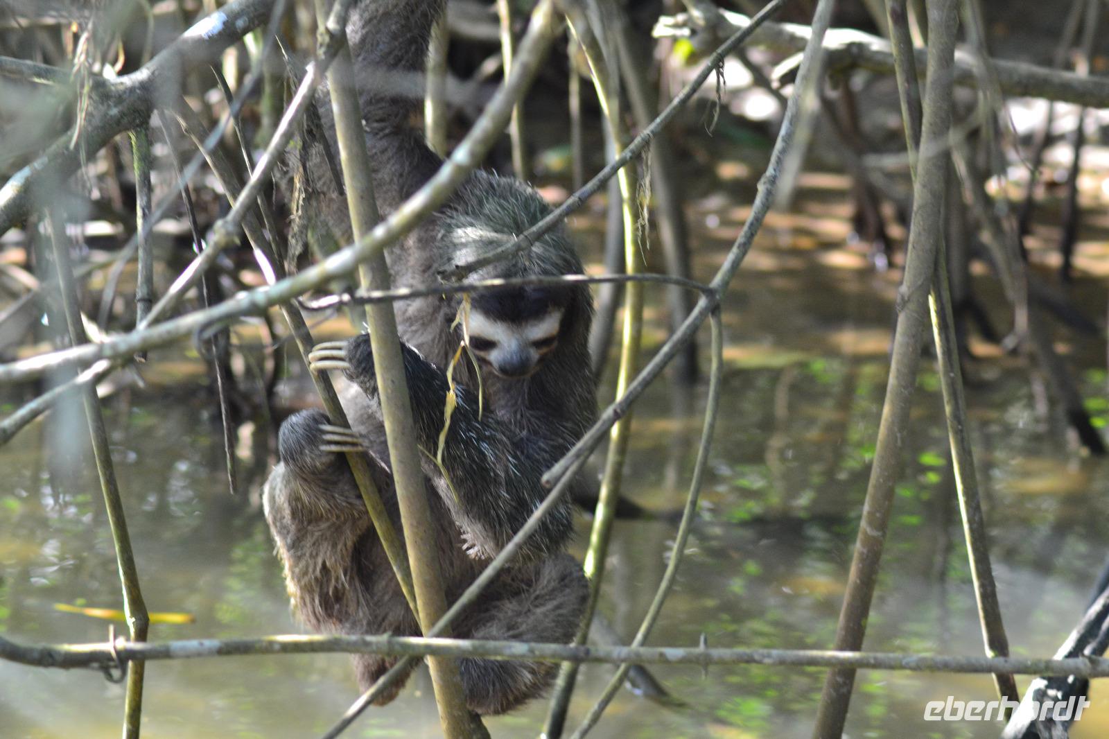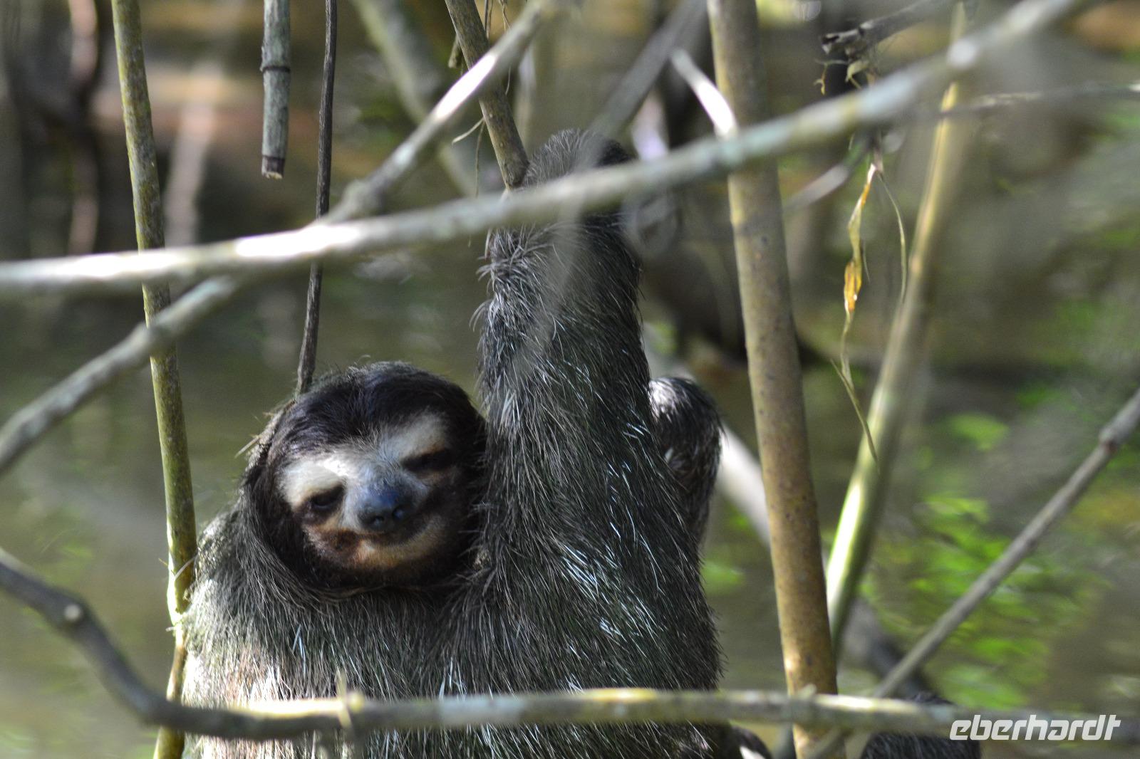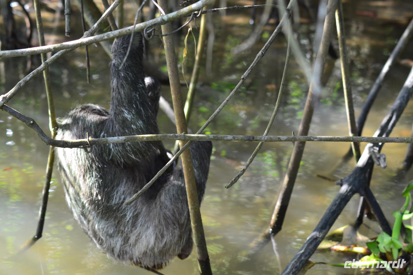 Nach einem stärkenden Frühstück holte uns die Reiseleiterin Silke am Hafen Terminal ab und wir gingen einen kurzen Weg zu Bus. Nach ca. 25 Minuten Fahrt erreichten wir den Tortuguero Nationalpark, von wo aus wir unsere Bootsfahrt durch die Kanäle des Regenwaldes starteten. Unser Bootsfahrer Maurice hat gleich zu Anfang mit seinem geschulten Auge ein Faultier beim Wöchentlichen Gang ins kühle Nass zum Entleeren entdeckt. Wir konnten gar nicht genug von dem kleinen niedlichen Tierchen bekommen. Bei unserer zweistündigen Tour entdecken wir auch zahlreiche Vogelarten, wie den Eisvogel, Blaugeier und viele mehr. Maurice ließ uns im Boot kurz allein um einen roten Erdbeerfrosch von Land zu uns ins Boot zu holen. Anfassen durften wir diesen allerdings nicht, da er allergische Reaktionen auslösen kann. In den Bäumen kletterten viele Brüllaffen herum. Der ein oder andere trat auch ein bisschen näher vor die Linse. Im Anschluss an unsere tierischen Beobachtungen fuhren wir in das knapp 1 stündig entfernte Dorf Chauta. Dort mussten wir nur eine kurze Zeit auf unser reichliches Mittagessen warten. Gut gestärkt unternahmen wir als Tagesabschluss noch einen kleinen Spaziergang durch den Cahuita Park. Da uns die Hitze sehr zu schaffen machte kürzten wir den Weg ein und hatten somit weniger Hektik für die Rückreise zum Schiff. Unterwegs legten wir noch einen kleinen Stopp an einem Souvenirladen ein. Hier wurden wir von Reisebegleitung Laura mit leckeren Café Likör und von Reiseleiterin Silke mit kleinen Bananen verköstigt. Ein schöner Tag neigte sich am Hafenpier von Puerto Limon dem Ende. Pünktlich 17 Uhr legte die „Mein Schiff 6" ab und begab sich auf den Weg nach Panama.