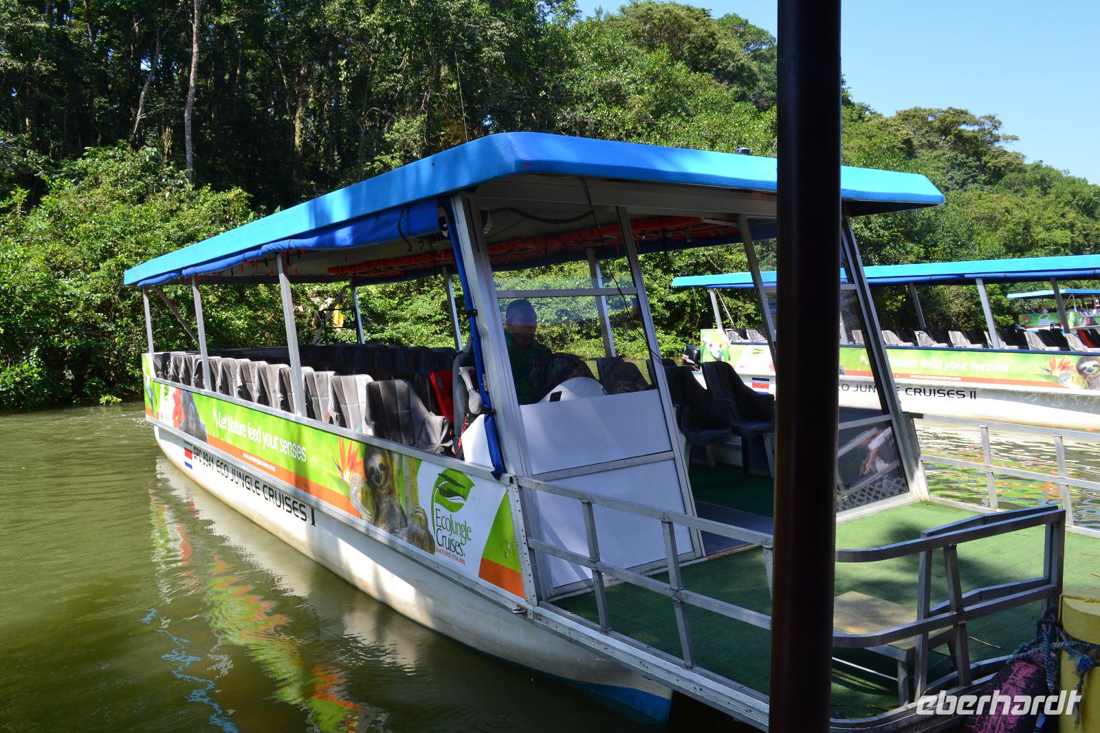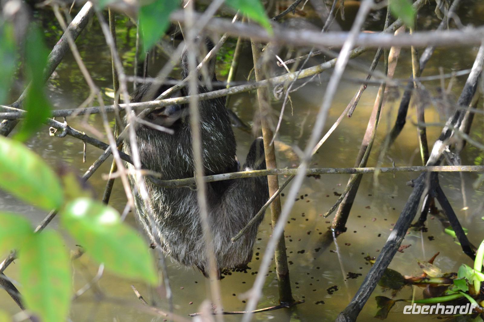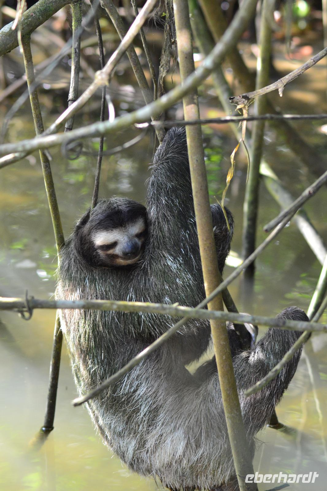 Nach einem stärkenden Frühstück holte uns die Reiseleiterin Silke am Hafen Terminal ab und wir gingen einen kurzen Weg zu Bus. Nach ca. 25 Minuten Fahrt erreichten wir den Tortuguero Nationalpark, von wo aus wir unsere Bootsfahrt durch die Kanäle des Regenwaldes starteten. Unser Bootsfahrer Maurice hat gleich zu Anfang mit seinem geschulten Auge ein Faultier beim Wöchentlichen Gang ins kühle Nass zum Entleeren entdeckt. Wir konnten gar nicht genug von dem kleinen niedlichen Tierchen bekommen. Bei unserer zweistündigen Tour entdecken wir auch zahlreiche Vogelarten, wie den Eisvogel, Blaugeier und viele mehr. Maurice ließ uns im Boot kurz allein um einen roten Erdbeerfrosch von Land zu uns ins Boot zu holen. Anfassen durften wir diesen allerdings nicht, da er allergische Reaktionen auslösen kann. In den Bäumen kletterten viele Brüllaffen herum. Der ein oder andere trat auch ein bisschen näher vor die Linse. Im Anschluss an unsere tierischen Beobachtungen fuhren wir in das knapp 1 stündig entfernte Dorf Chauta. Dort mussten wir nur eine kurze Zeit auf unser reichliches Mittagessen warten. Gut gestärkt unternahmen wir als Tagesabschluss noch einen kleinen Spaziergang durch den Cahuita Park. Da uns die Hitze sehr zu schaffen machte kürzten wir den Weg ein und hatten somit weniger Hektik für die Rückreise zum Schiff. Unterwegs legten wir noch einen kleinen Stopp an einem Souvenirladen ein. Hier wurden wir von Reisebegleitung Laura mit leckeren Café Likör und von Reiseleiterin Silke mit kleinen Bananen verköstigt. Ein schöner Tag neigte sich am Hafenpier von Puerto Limon dem Ende. Pünktlich 17 Uhr legte die „Mein Schiff 6" ab und begab sich auf den Weg nach Panama.