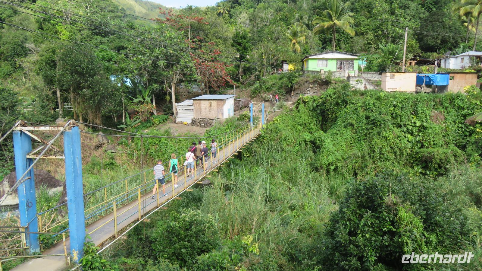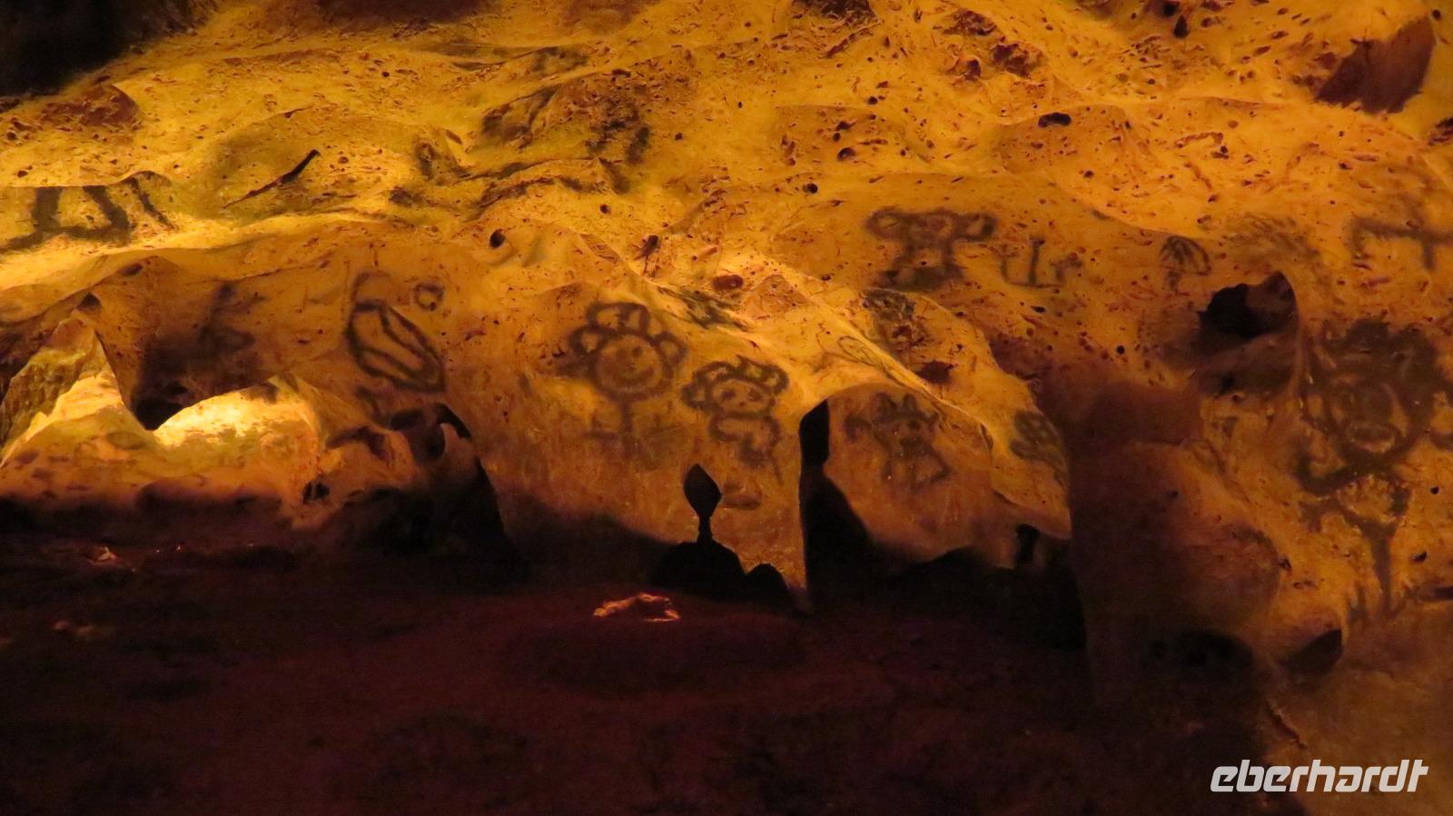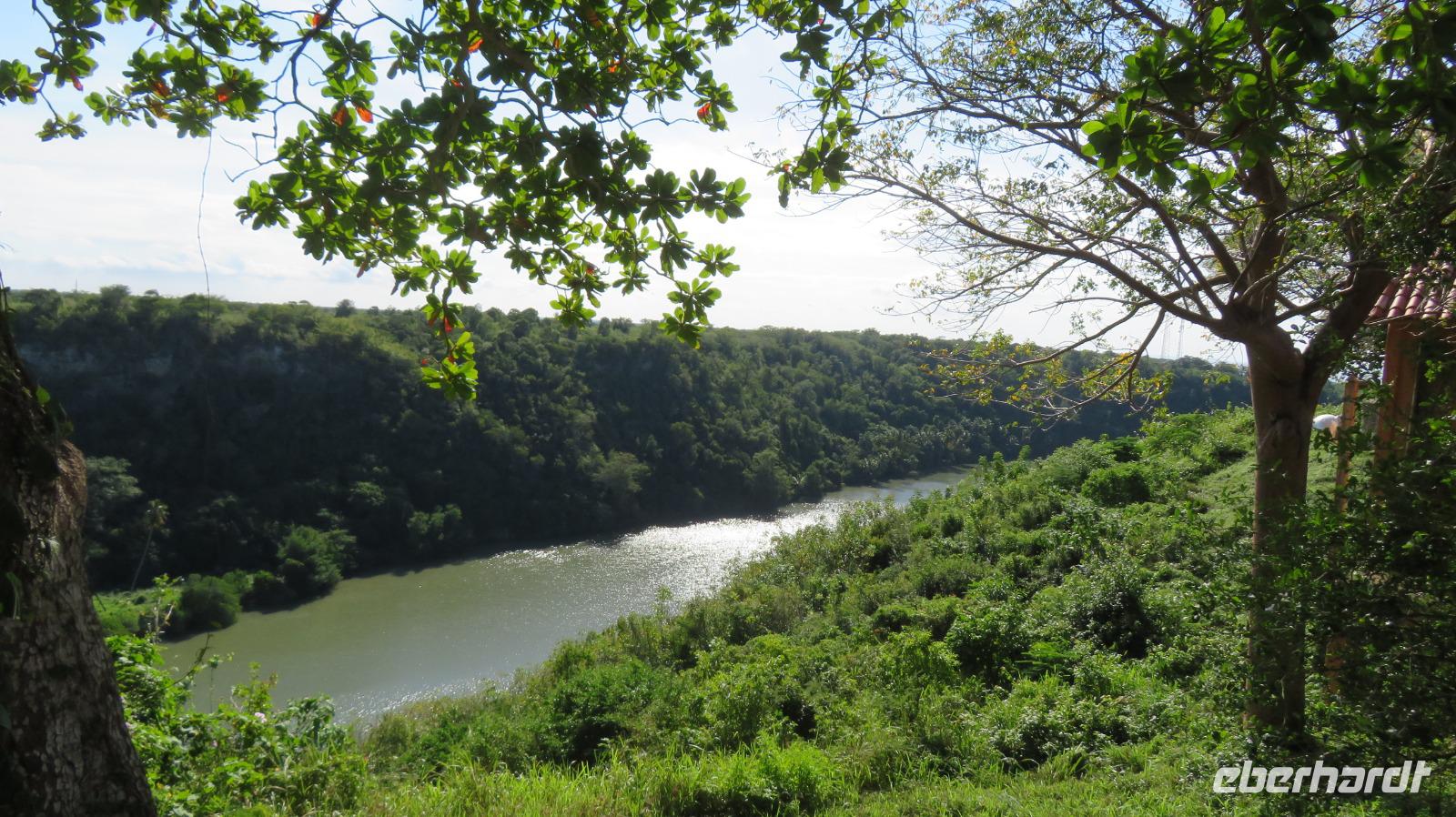 Nach einer kurzen Fahrt befinden wir uns bereits an unserem ersten Höhenpunkt des Tages. Wir sind im Künstlerdorf Altos de Chavon angekommen. Dieses Dorf, auch wenn es nicht so aussieht, hat noch keine 50 Jahre erlebt. Es wurde in den Jahren 1976 bis 1982 erbaut. Sieht aber definitiv älter aus. Papa Jose führt uns durch die kleine Siedlung, welche einen starken mediterranen Einfluss aufzeigt. Neben dem imposanten Amphitheater gefällt mir der Vorplatz mit der Kirche und der Musikergruppe am meisten. Durch die Musik beflügelt schweben wir zurück zum Bus. Denn nach diesem schönen Spaziergang besichtigen wir die Tropfsteinhöhle Cuevas de las Maravillas. Unser Führer begleitet uns durch die imposante Höhle mit ihrer eigentümlichen Beleuchtung. Neben den Stalaktiten und Stalagmiten ragen riesige Wurzel von oben in die Höhle. Ein weiterer interessanter Aspekt ist die Höhlenmalerei. Ob nun wirklich alle Kunstwerke von den Taino Indianer sind oder ein paar Zeichnungen von den einheimischen jugendlichen, darf jeder selbst entscheiden. :)