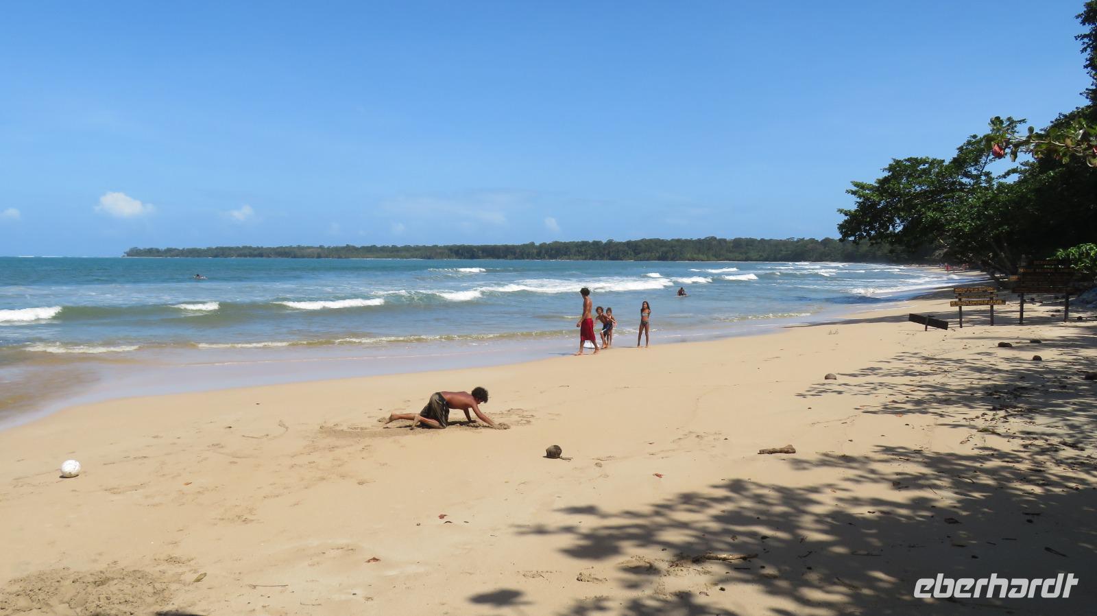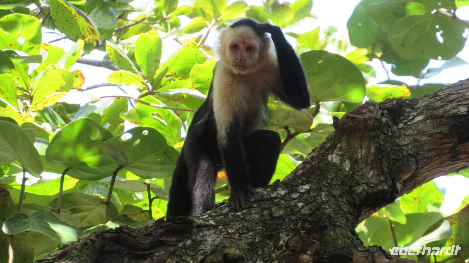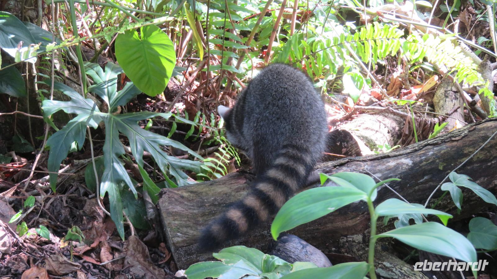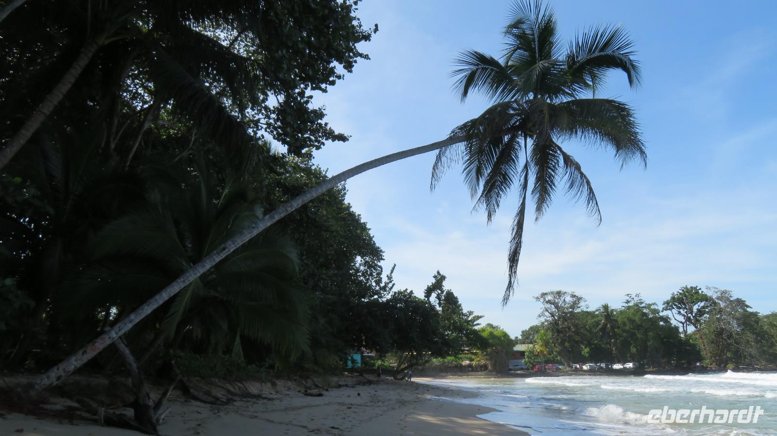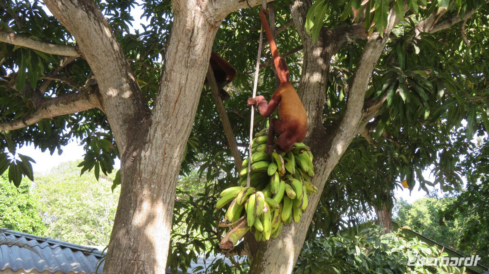 Im Anschluss an die Fahrt gibt es süße, schmackhafte Ananas. Hier würde man sich am liebsten reinlegen. Nachdem wir dann eine Ehrenrunde in Richtung Einbahnstraße gedreht haben, bringt uns der Fahrer nach Cahuita. Bevor wir unsere kleine Wanderung machen, speisen wir hier in einem kleinen einheimischen Lokal und lassen es uns gut gehen. Bei dem anschließenden Spaziergang ist es wie bei der Bootsfahrt. Unsere Guides sehen schon Tiere, da wussten die Tiere noch nicht einmal, dass sie bald dort sind. Das ist einfach super. Somit sehen wir auch hier wieder Äffchen, Faultiere, Waschbären, allerhand unterschiedliche Vögel und zwei Schlangen.