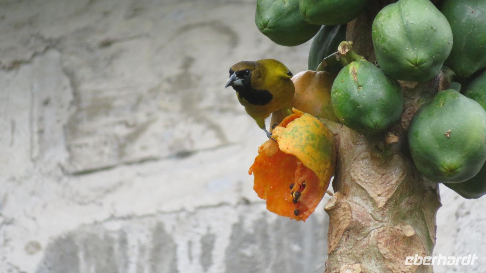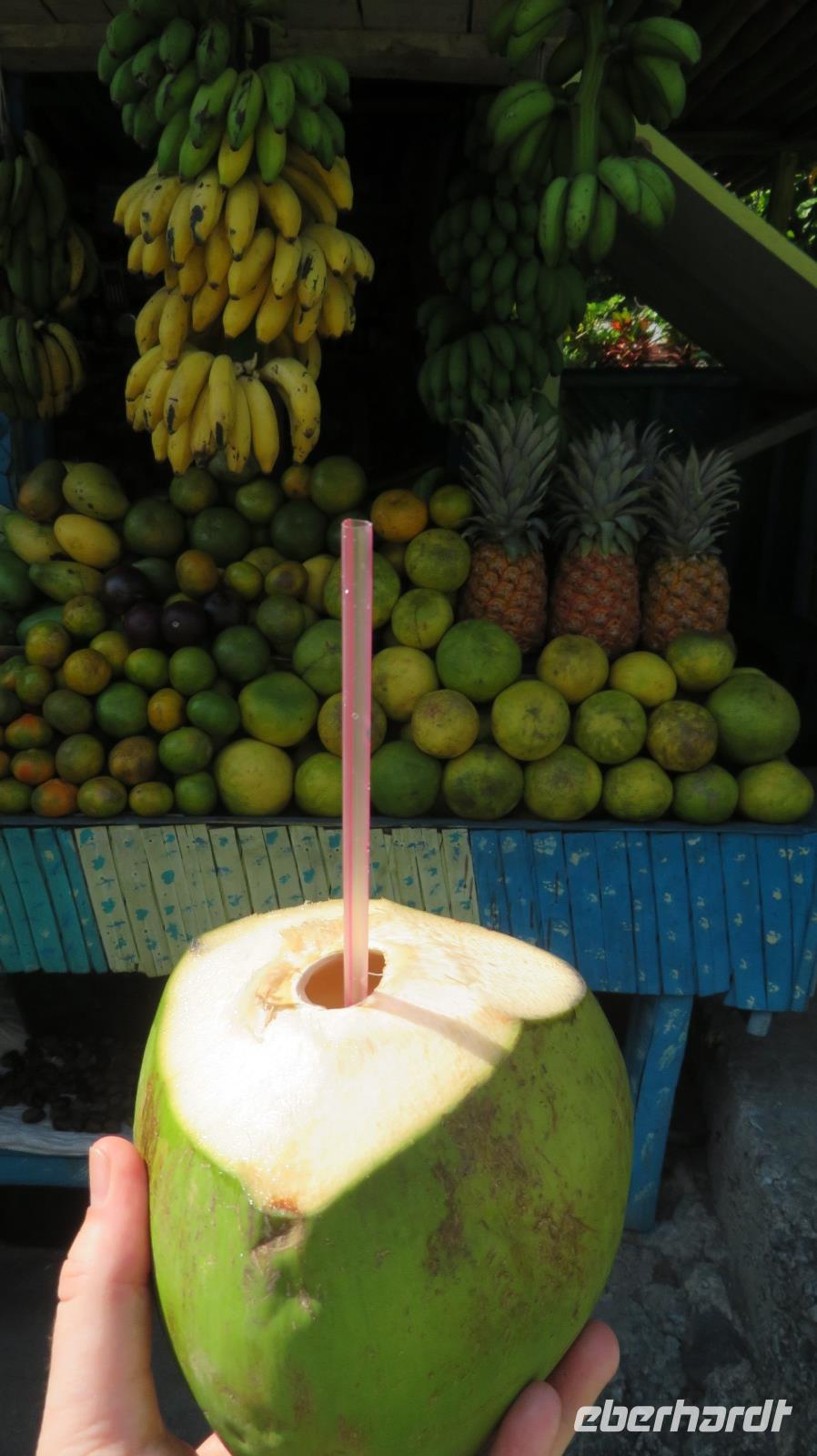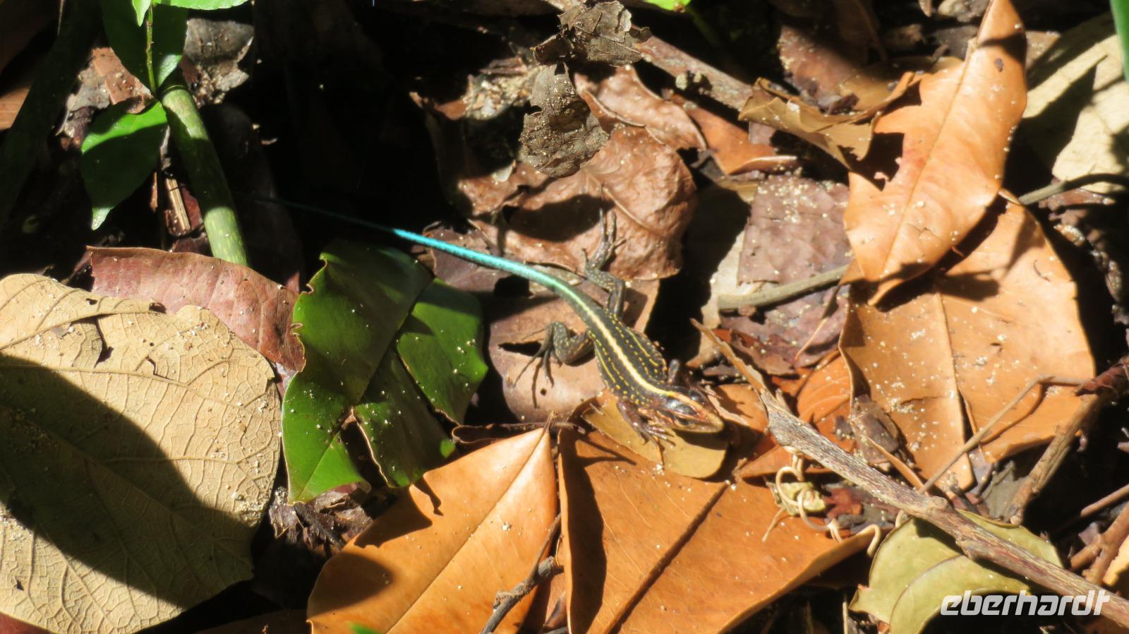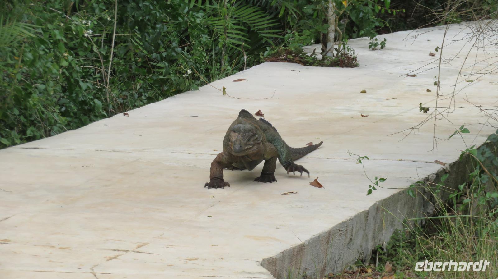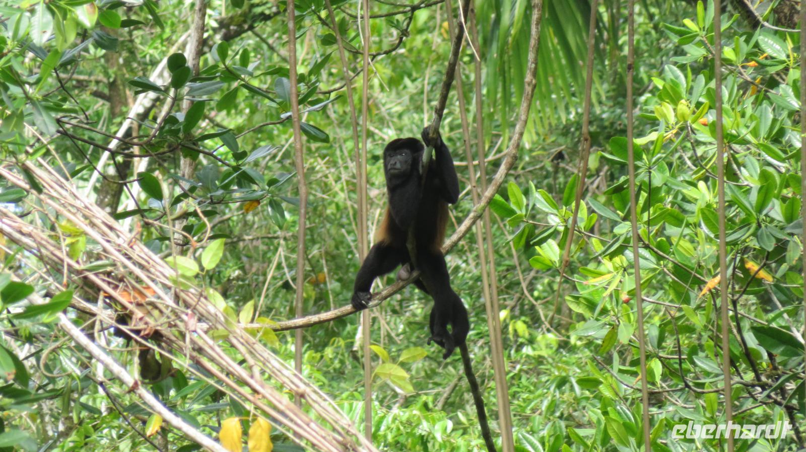 Im Anschluss an die Fahrt gibt es süße, schmackhafte Ananas. Hier würde man sich am liebsten reinlegen. Nachdem wir dann eine Ehrenrunde in Richtung Einbahnstraße gedreht haben, bringt uns der Fahrer nach Cahuita. Bevor wir unsere kleine Wanderung machen, speisen wir hier in einem kleinen einheimischen Lokal und lassen es uns gut gehen. Bei dem anschließenden Spaziergang ist es wie bei der Bootsfahrt. Unsere Guides sehen schon Tiere, da wussten die Tiere noch nicht einmal, dass sie bald dort sind. Das ist einfach super. Somit sehen wir auch hier wieder Äffchen, Faultiere, Waschbären, allerhand unterschiedliche Vögel und zwei Schlangen.