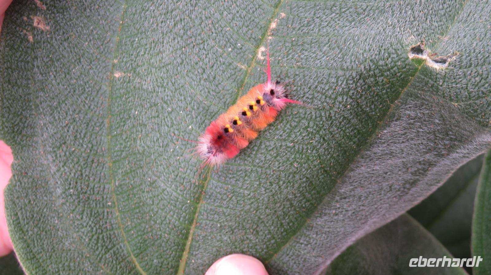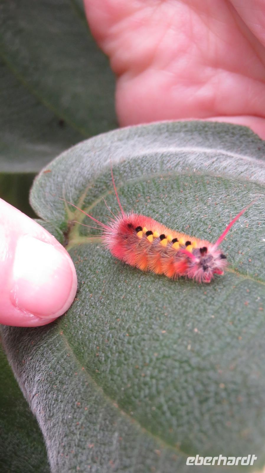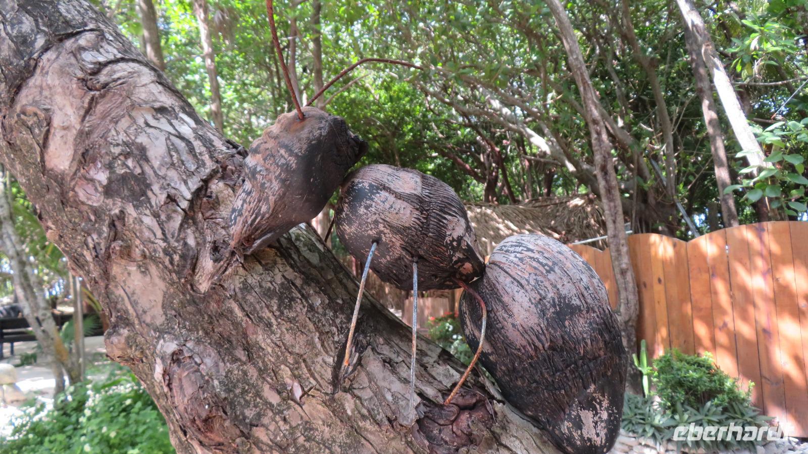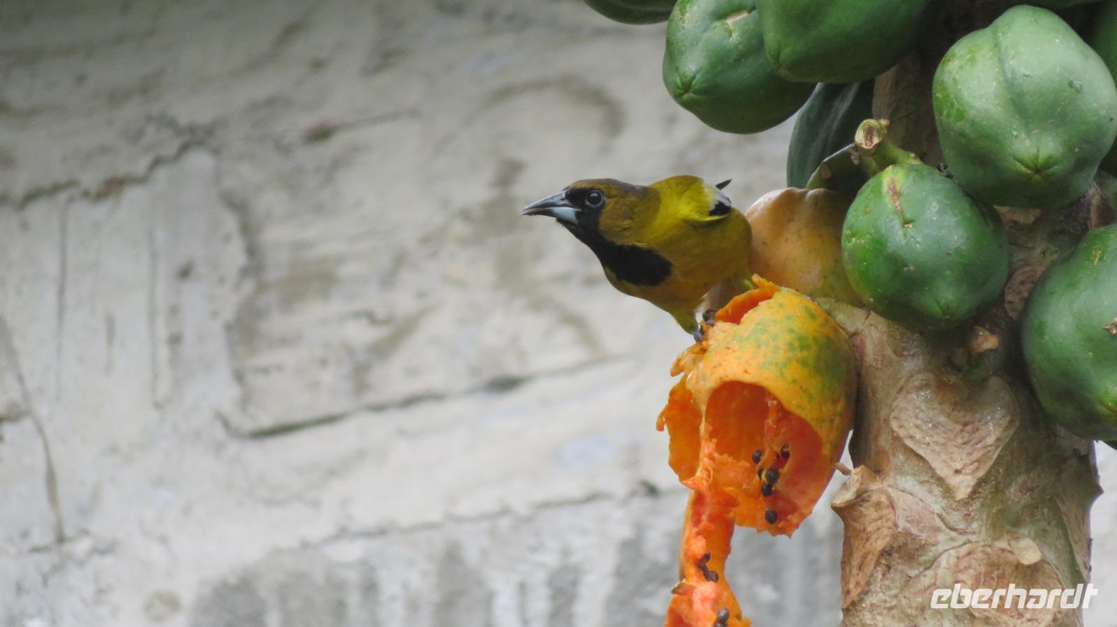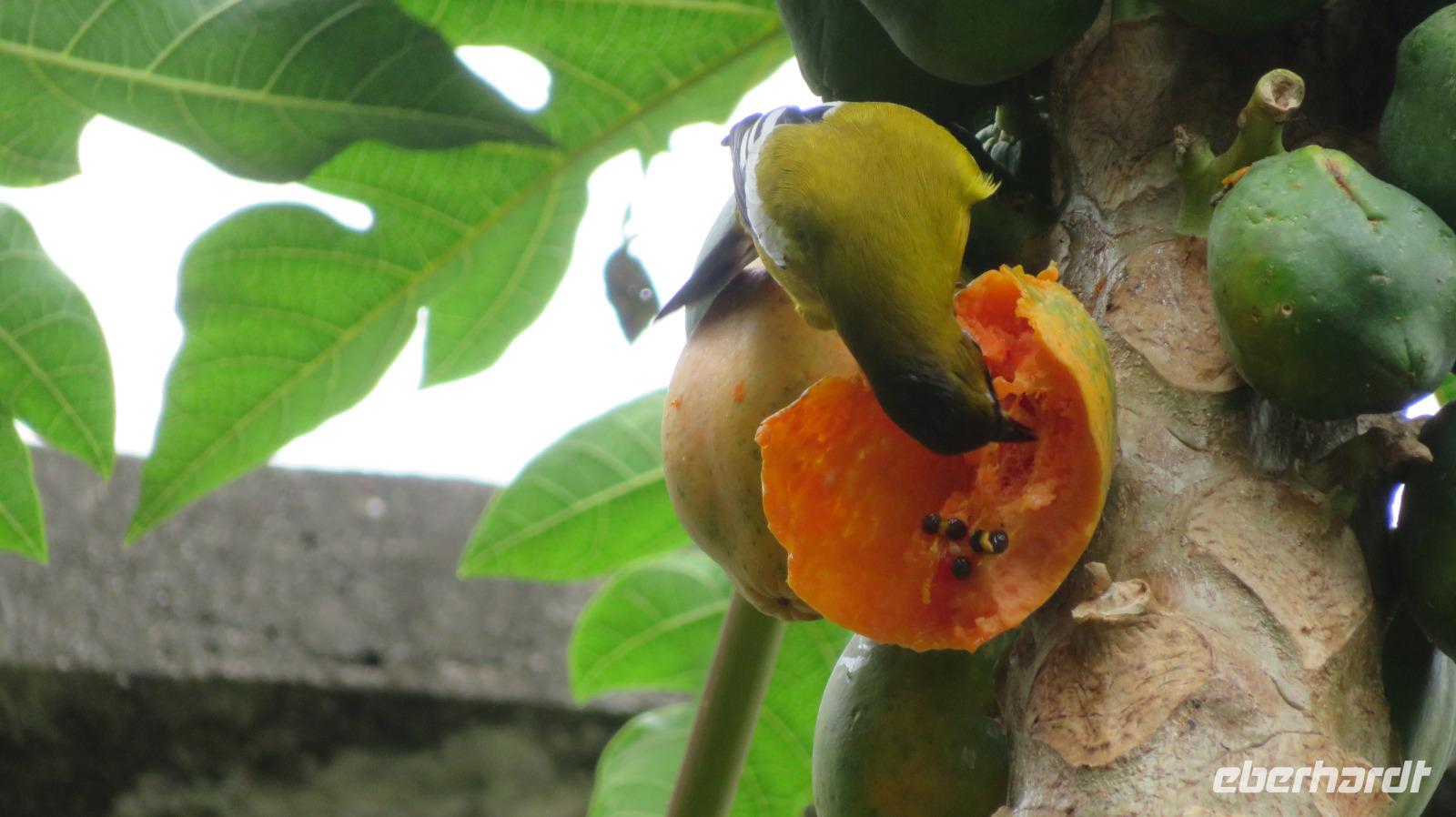 Im Anschluss an die Fahrt gibt es süße, schmackhafte Ananas. Hier würde man sich am liebsten reinlegen. Nachdem wir dann eine Ehrenrunde in Richtung Einbahnstraße gedreht haben, bringt uns der Fahrer nach Cahuita. Bevor wir unsere kleine Wanderung machen, speisen wir hier in einem kleinen einheimischen Lokal und lassen es uns gut gehen. Bei dem anschließenden Spaziergang ist es wie bei der Bootsfahrt. Unsere Guides sehen schon Tiere, da wussten die Tiere noch nicht einmal, dass sie bald dort sind. Das ist einfach super. Somit sehen wir auch hier wieder Äffchen, Faultiere, Waschbären, allerhand unterschiedliche Vögel und zwei Schlangen.