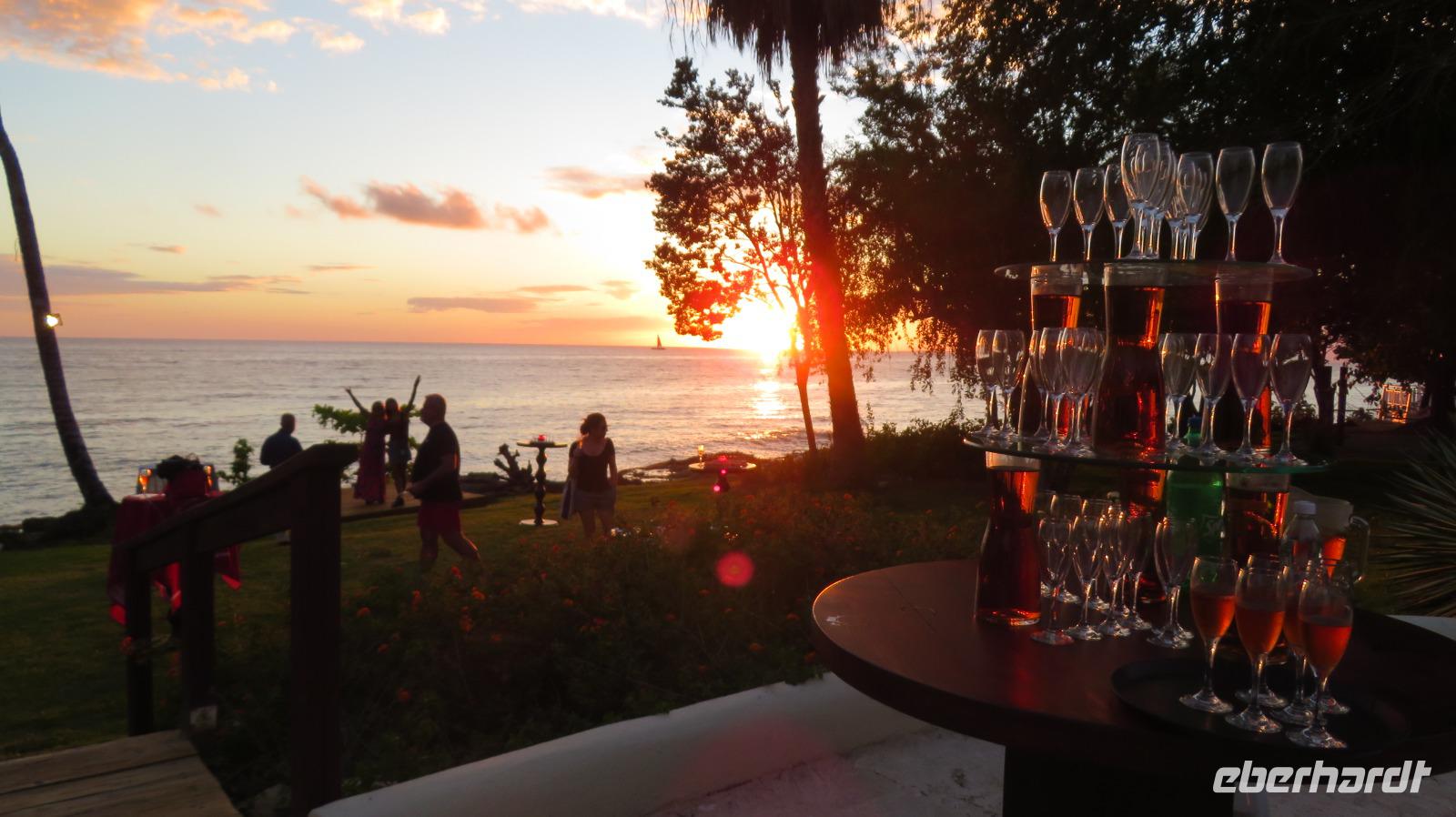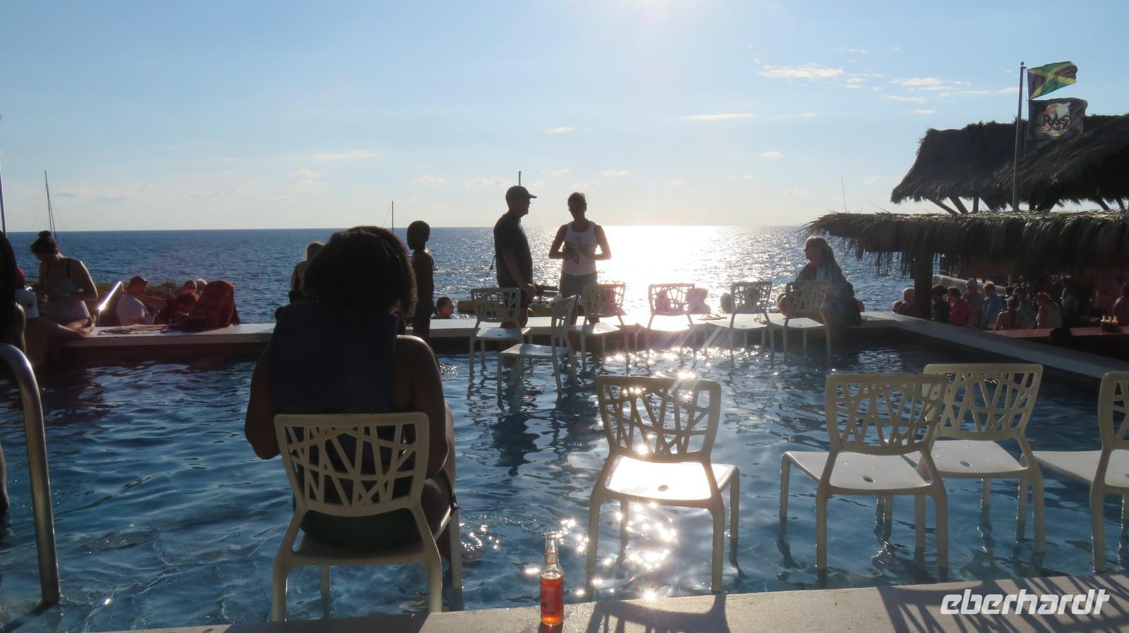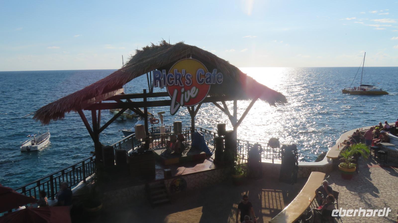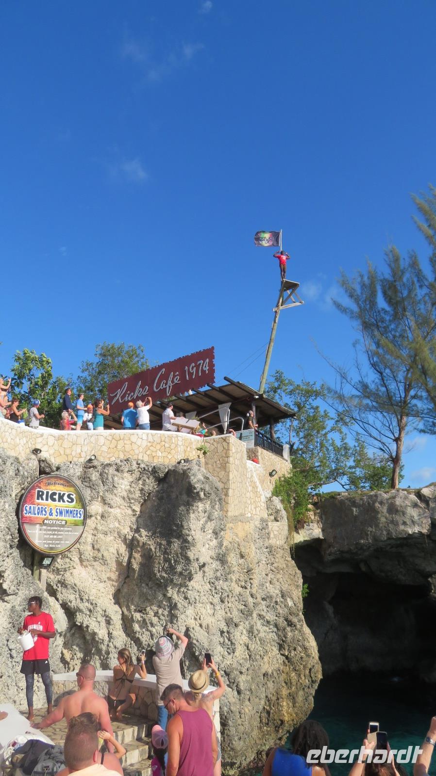 In der Nähe von Negril wird dann die Badehose ausgepackt und wir genießen die Freizeit am Strand. Zum Nachmittag geht es weiter zu der bekanntesten Bar Jamaikas, zu Rick's Cafe. Hier herrscht eine nette Atmosphäre und das Highlight sind die Klippenspringer. Wenn genügend Geld von den Gästen gesammelt wurde, springen die Artisten in die Tiefe. Das ist schon beeindruckend. Leider müssen wir vor dem Sonnenuntergang das nette Fleckchen verlassen und machen uns auf in Richtung Schiff.