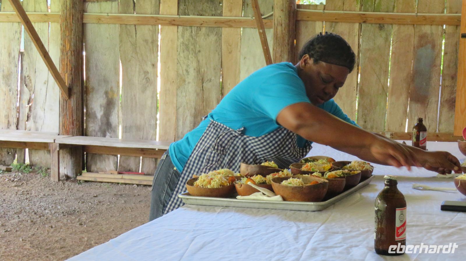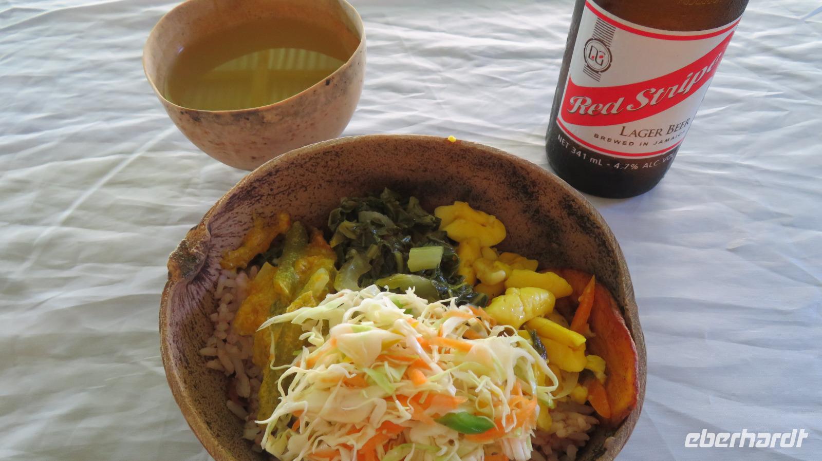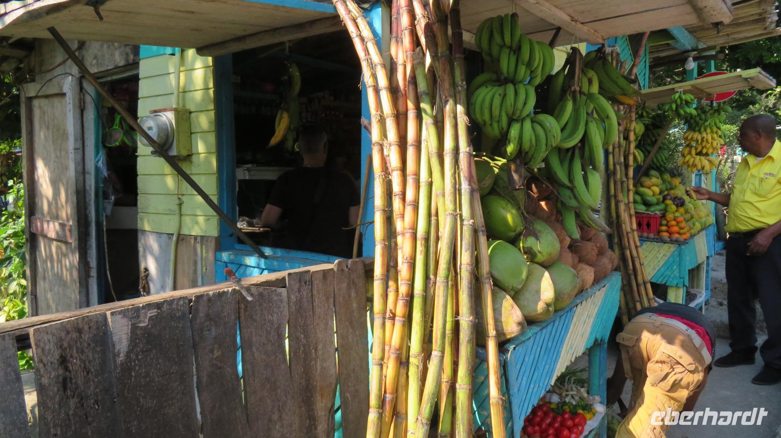 Yeahhh Mann, so begrüßt uns unsere Reiseleiterin Silvia auf der drittgrößten Insel der großen Antillen. Am heutigen Tag geht es hoch in die Blue Mountains. An regnerischen Tagen legt sich ein Nebel über die Berge und dieser schimmert dann bläulich. Wir bekommen den Nebel „leider" nicht zusehen, da es die Sonne wieder gut mit uns meint. Silvia ist guter Dinge und erzählt uns allerhand über ihre zweite Heimat. Insbesondere über den hier angebauten Kaffee. Dieser zählt zu den besten Sorten der Welt. Aufgrund der klimatischen Gegebenheiten wächst die Bohne besonders langsam, ist sehr hart und hat somit ein feines weiches Aroma. Natürlich darf da eine Verkostung nicht fehlen und so kehren wir in eine einfache Behausung ein und lassen uns das schwarze Gold schmecken. Ich, als nicht Kaffeetrinker, kann hier keinen Unterschied ausmachen, aber mein Geschmack ist darauf auch nicht trainiert. Ich freue mich eher um die hier erworbenen Muskatnüsse. Im Distrikt Spring Hill steigen wir aus dem Bus und unternehmen einen kleinen Spaziergang. Silvia ist hier ganz in ihrem Element und erklärt uns die einheimische Flora und Fauna. Nachdem auch die kleinen Moskitos auf ihre Kosten gekommen sind, fahren wir zu einem Maroon Dorf. Die Maroons stammen ursprünglich aus Afrika und entkamen der Sklaverei in Jamaika. Sie sammelten sich in den Bergen und kämpften fortan gegen die Besatzung. Im Dorf besichtigen wir ein kleines Museum und bekommen ein köstliches Mittagessen serviert. Es gibt eine typische jamaikanische Speise die aus Reis mit Kidneybohnen, Ackee und Salat besteht. Wirklich lecker. Währenddessen tanzen die kleinsten und es wird rhythmische Musik gespielt. Die Beine zucken aber da ich nicht mal annähernd so gut tanzen kann wie die auf der Bühne, lasse ich es lieber bleiben. Danach bringt uns der Busfahrer zurück zum Schiff und den Nachmittag verbringen wir gemütlich auf unserem neuen Zuhause.