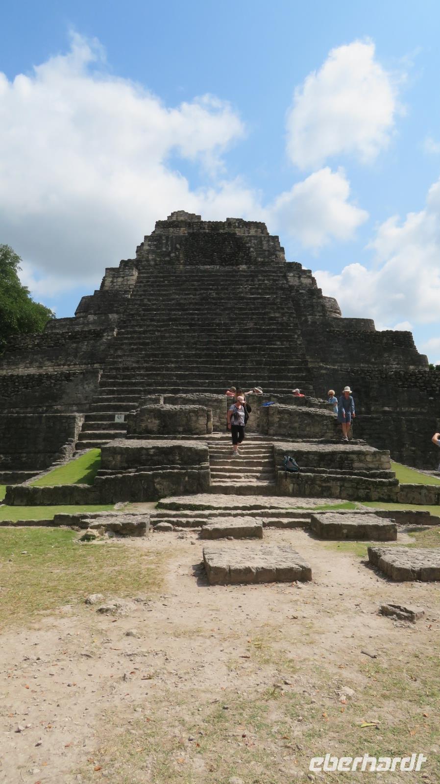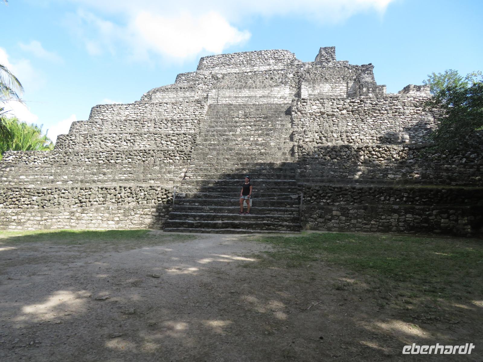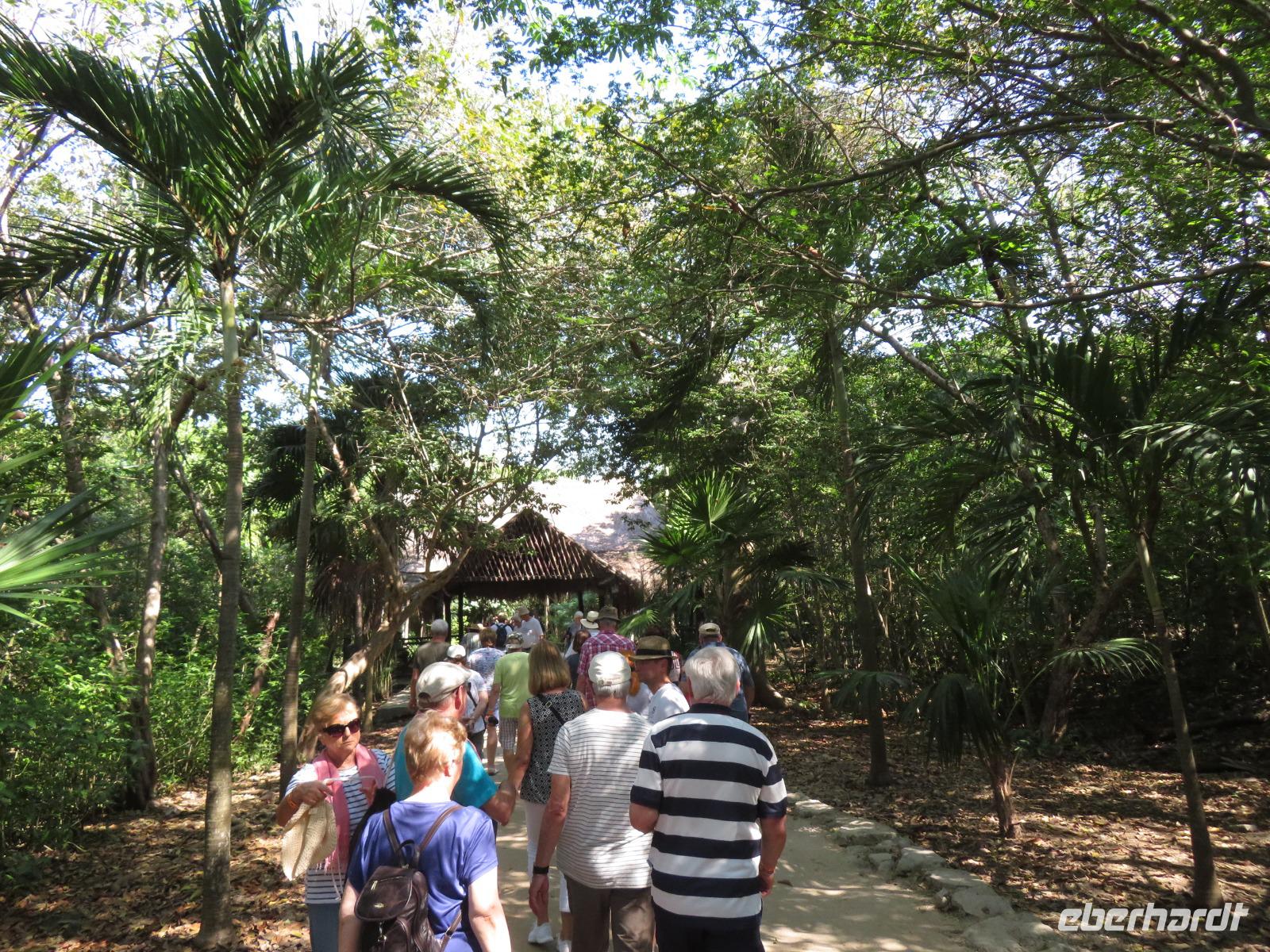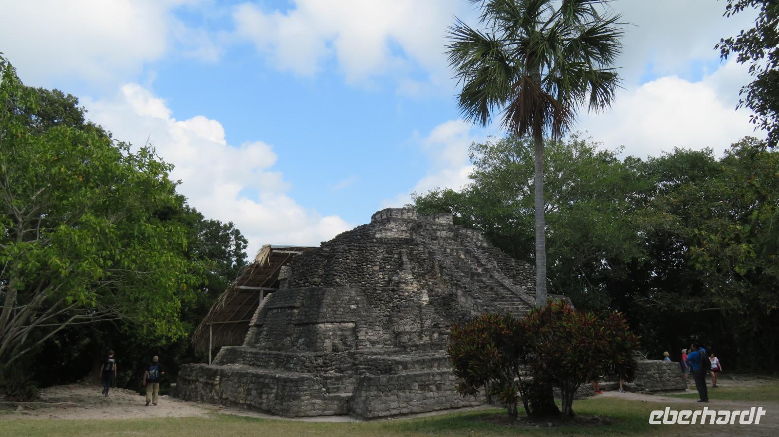Erneut dockt das Schiff in Mexico an. Ein Teil der Gruppe entschied sich Chaccoben zu erkunden und anschließend in der Lagune der sieben Farben zu baden. Der Hafen war heute erneut mehr als gut gefühlt, denn neben unserem Schiff lagen noch drei weitere Schiffe im Hafen. Zunächst ging es in einem viel zu engen Bus in Richtung Maya Pyramide. Gestern hatten wir anscheinend die europäische Variante und heute ist es die mexikanische Variante. Vor Ort führt uns der Guide durch die Ruinen von Chaccoben. Hier sind nur 30 Prozent ausgegraben und somit kann man sich kaum vorstellen, wie groß das hier einmal war. Nachdem wir Chaccoben zum Teil erkundet haben, geht es weiter in Richtung Mittagessen und baden in der Lagune. Das Buffet ist bereits eröffnet und hier wurde ordentlich für uns gegrillt. Das Essen schmeckt vorzüglich und da wir nicht ganz so viel Zeit haben, gehen wir anschließend erneut wieder mit vollem Bauch ins Wasser. Hier treffen wir uns alle und fachsimpeln, wo sich den die restlichen sechs von den sieben Farben verstecken. Bis zur Abfahrt haben wir sie nicht entdecken können, aber es war trotzdem ein schöner Ausflug.
