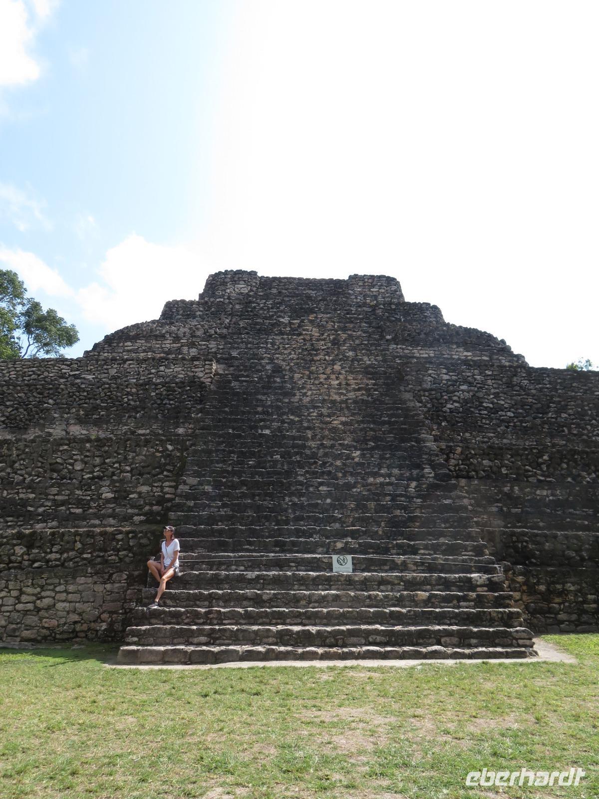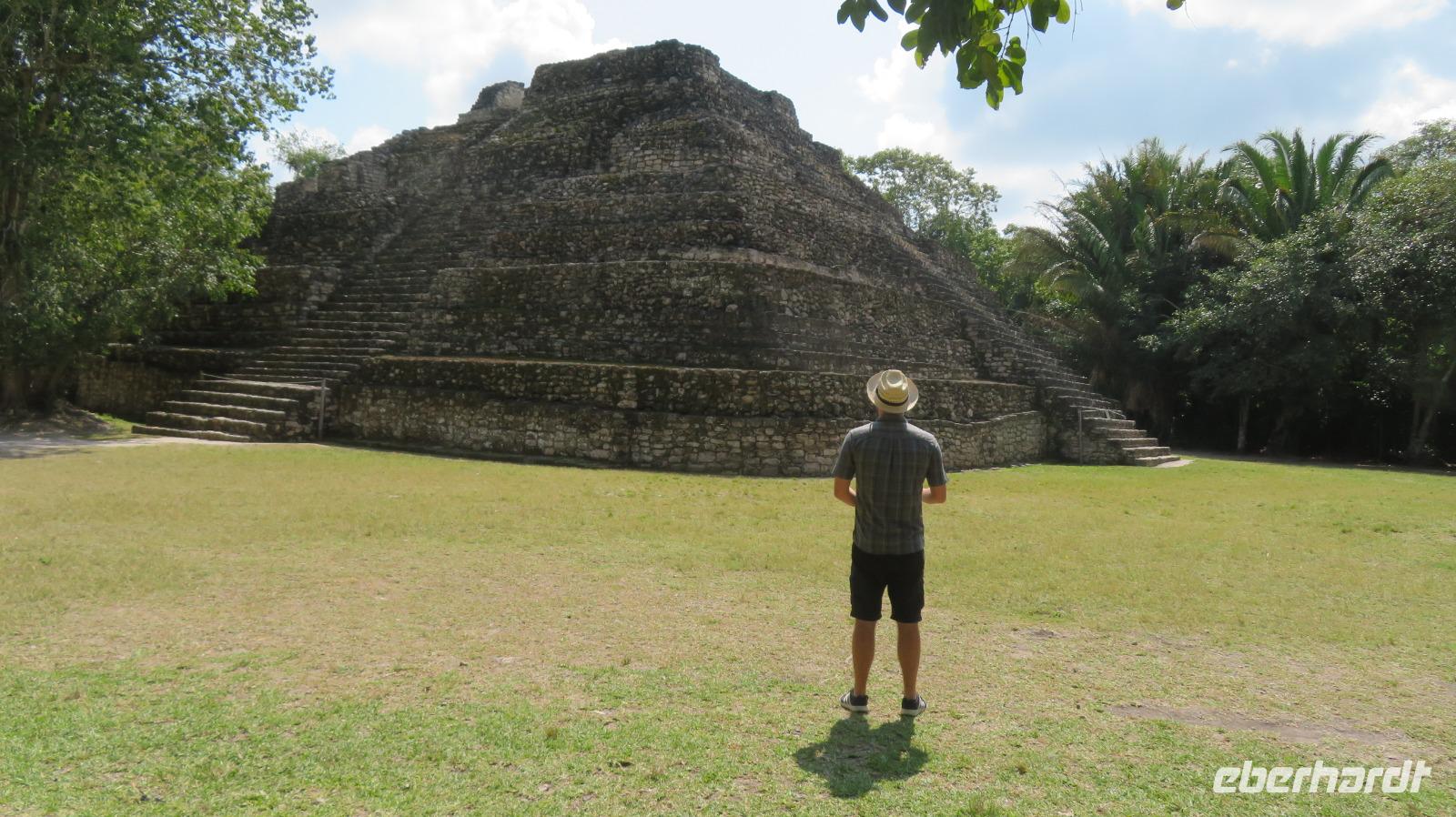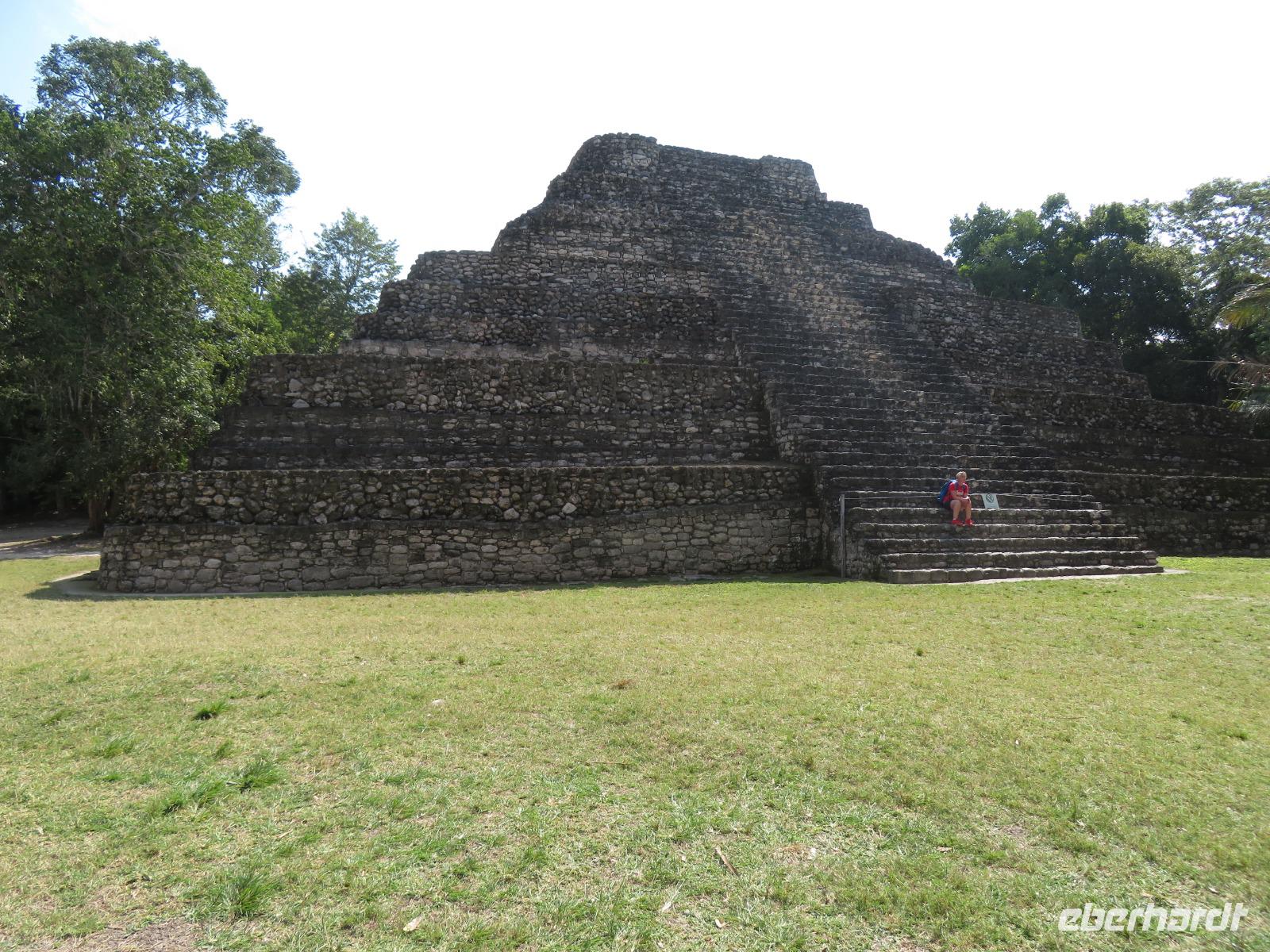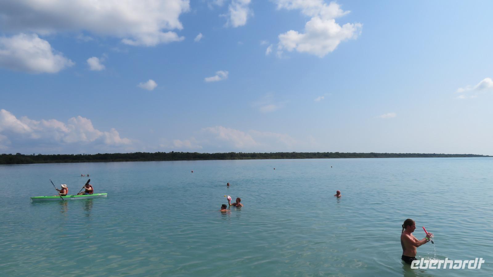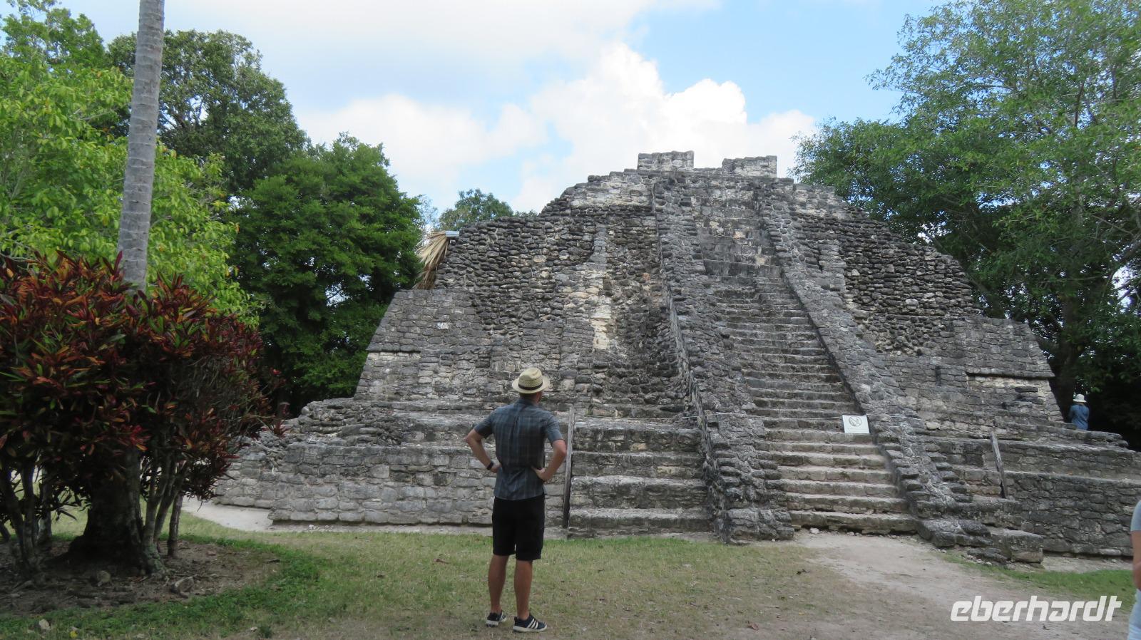 Erneut dockt das Schiff in Mexico an. Ein Teil der Gruppe entschied sich Chaccoben zu erkunden und anschließend in der Lagune der sieben Farben zu baden. Der Hafen war heute erneut mehr als gut gefühlt, denn neben unserem Schiff lagen noch drei weitere Schiffe im Hafen. Zunächst ging es in einem viel zu engen Bus in Richtung Maya Pyramide. Gestern hatten wir anscheinend die europäische Variante und heute ist es die mexikanische Variante. Vor Ort führt uns der Guide durch die Ruinen von Chaccoben. Hier sind nur 30 Prozent ausgegraben und somit kann man sich kaum vorstellen, wie groß das hier einmal war. Nachdem wir Chaccoben zum Teil erkundet haben, geht es weiter in Richtung Mittagessen und baden in der Lagune. Das Buffet ist bereits eröffnet und hier wurde ordentlich für uns gegrillt. Das Essen schmeckt vorzüglich und da wir nicht ganz so viel Zeit haben, gehen wir anschließend erneut wieder mit vollem Bauch ins Wasser. Hier treffen wir uns alle und fachsimpeln, wo sich den die restlichen sechs von den sieben Farben verstecken. Bis zur Abfahrt haben wir sie nicht entdecken können, aber es war trotzdem ein schöner Ausflug.