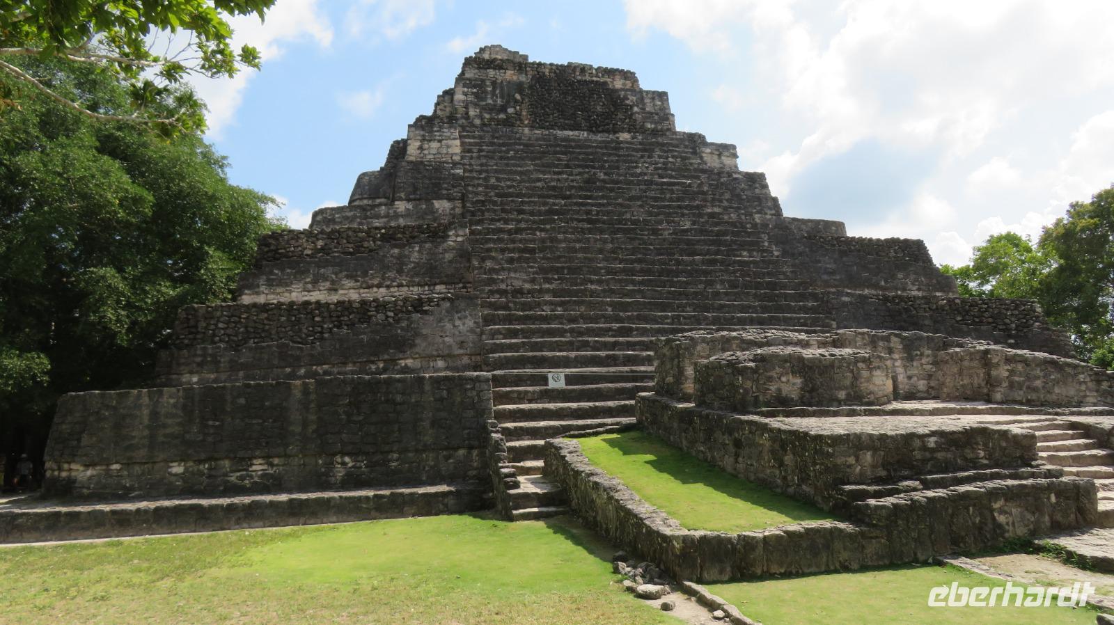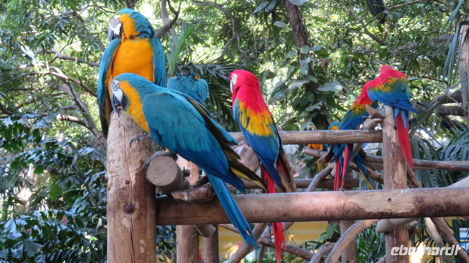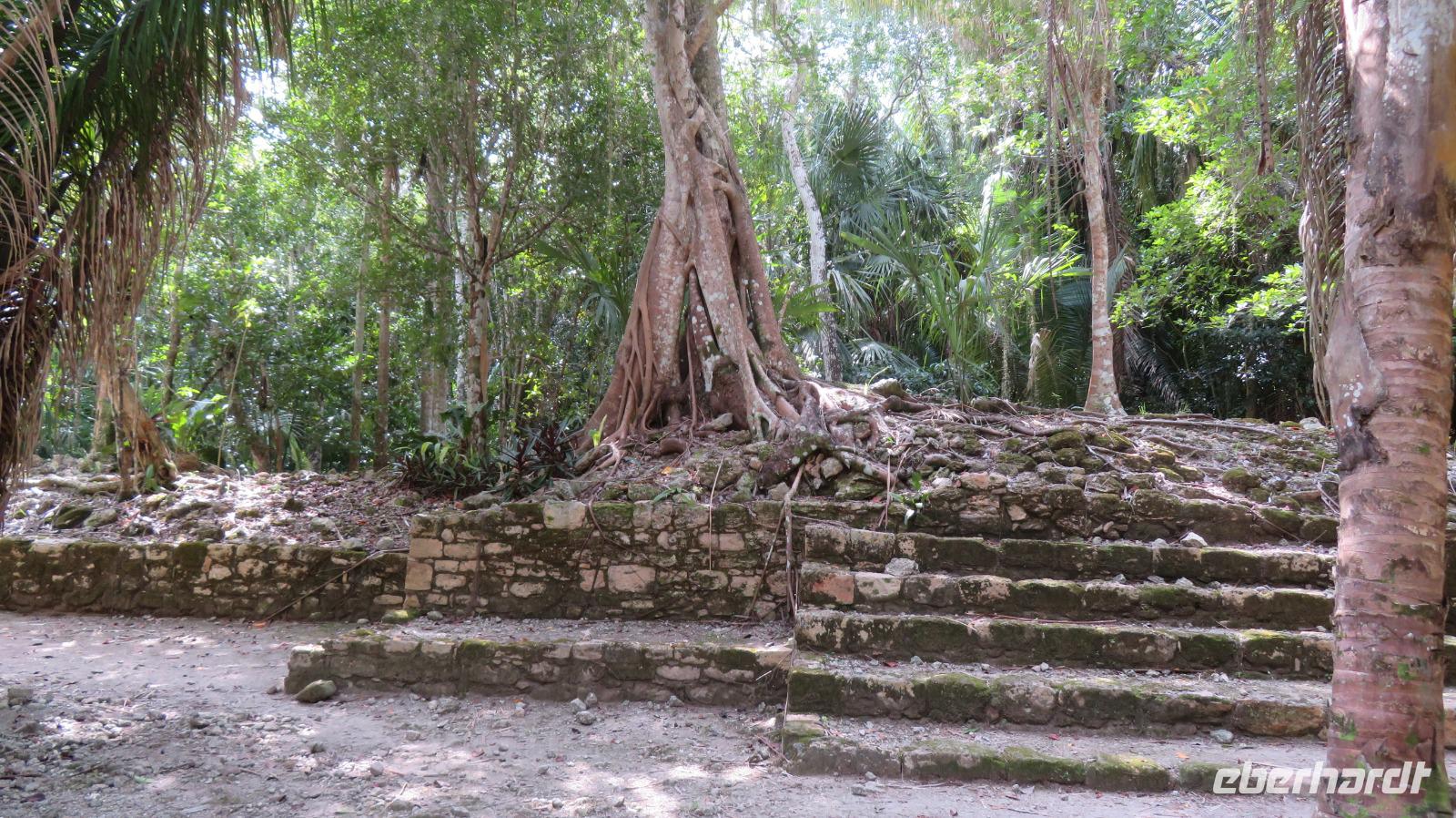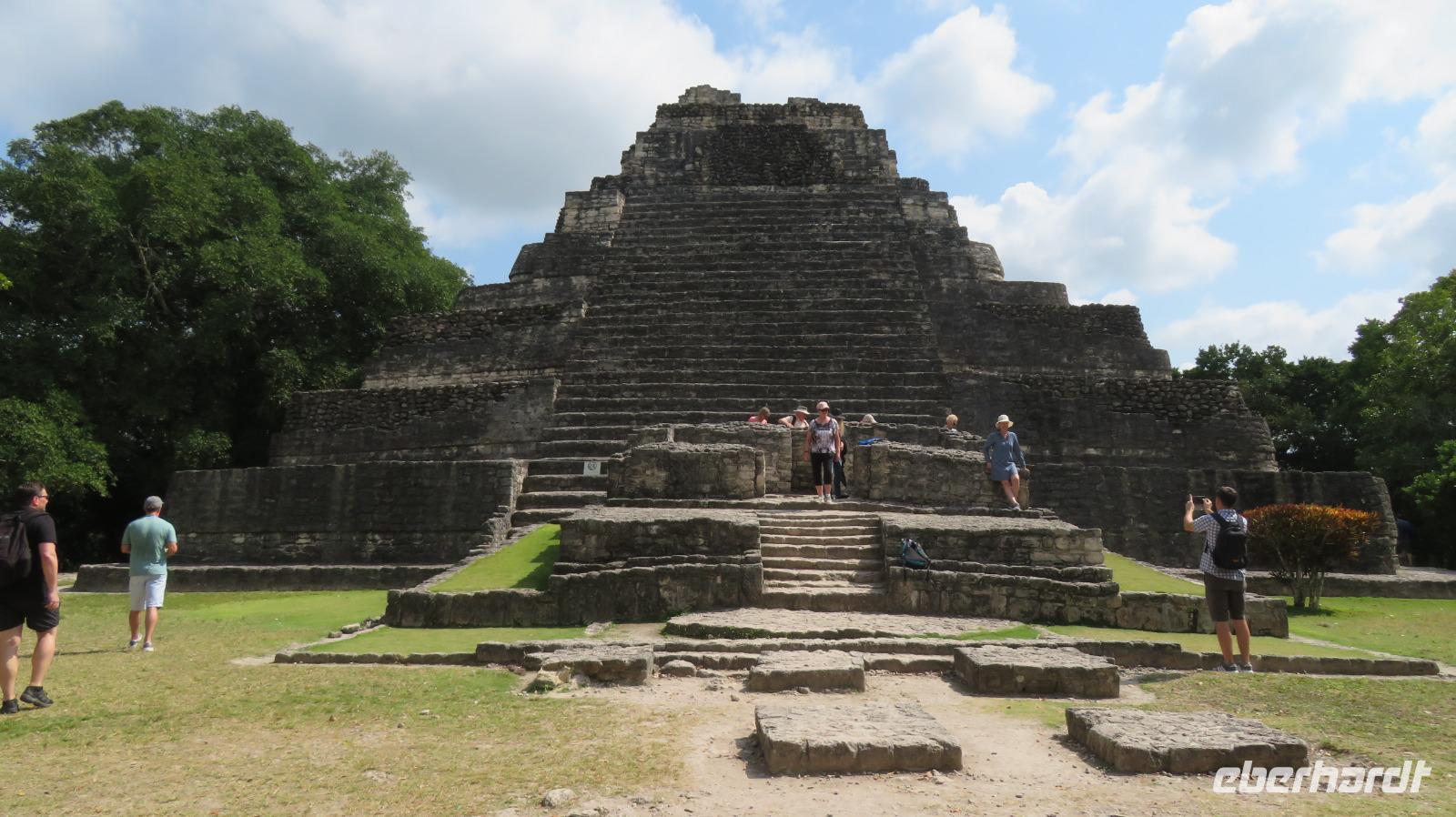 Erneut dockt das Schiff in Mexico an. Ein Teil der Gruppe entschied sich Chaccoben zu erkunden und anschließend in der Lagune der sieben Farben zu baden. Der Hafen war heute erneut mehr als gut gefühlt, denn neben unserem Schiff lagen noch drei weitere Schiffe im Hafen. Zunächst ging es in einem viel zu engen Bus in Richtung Maya Pyramide. Gestern hatten wir anscheinend die europäische Variante und heute ist es die mexikanische Variante. Vor Ort führt uns der Guide durch die Ruinen von Chaccoben. Hier sind nur 30 Prozent ausgegraben und somit kann man sich kaum vorstellen, wie groß das hier einmal war. Nachdem wir Chaccoben zum Teil erkundet haben, geht es weiter in Richtung Mittagessen und baden in der Lagune. Das Buffet ist bereits eröffnet und hier wurde ordentlich für uns gegrillt. Das Essen schmeckt vorzüglich und da wir nicht ganz so viel Zeit haben, gehen wir anschließend erneut wieder mit vollem Bauch ins Wasser. Hier treffen wir uns alle und fachsimpeln, wo sich den die restlichen sechs von den sieben Farben verstecken. Bis zur Abfahrt haben wir sie nicht entdecken können, aber es war trotzdem ein schöner Ausflug.