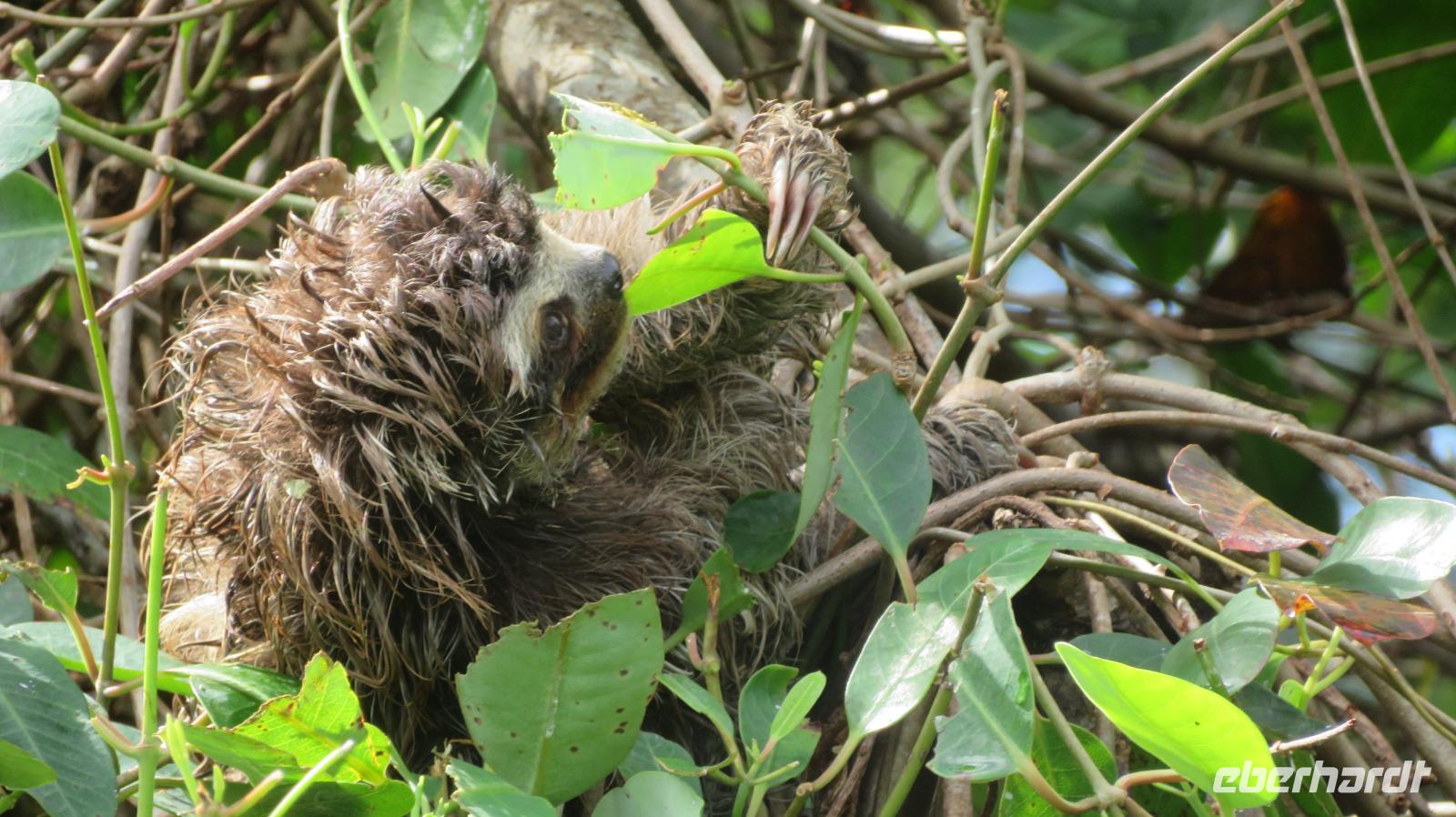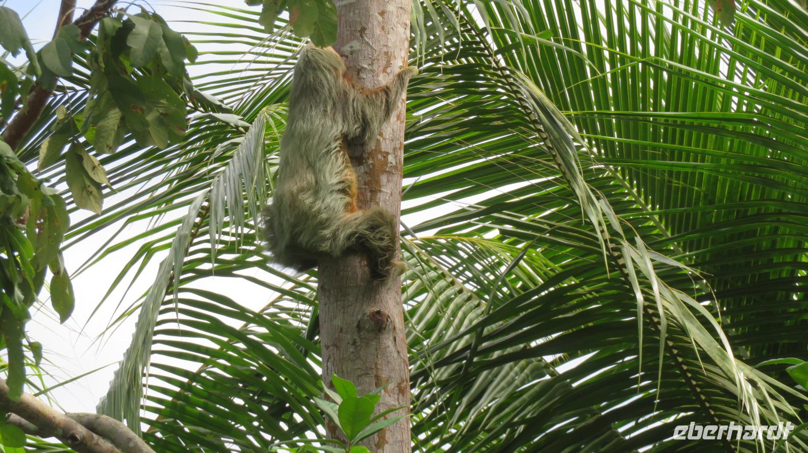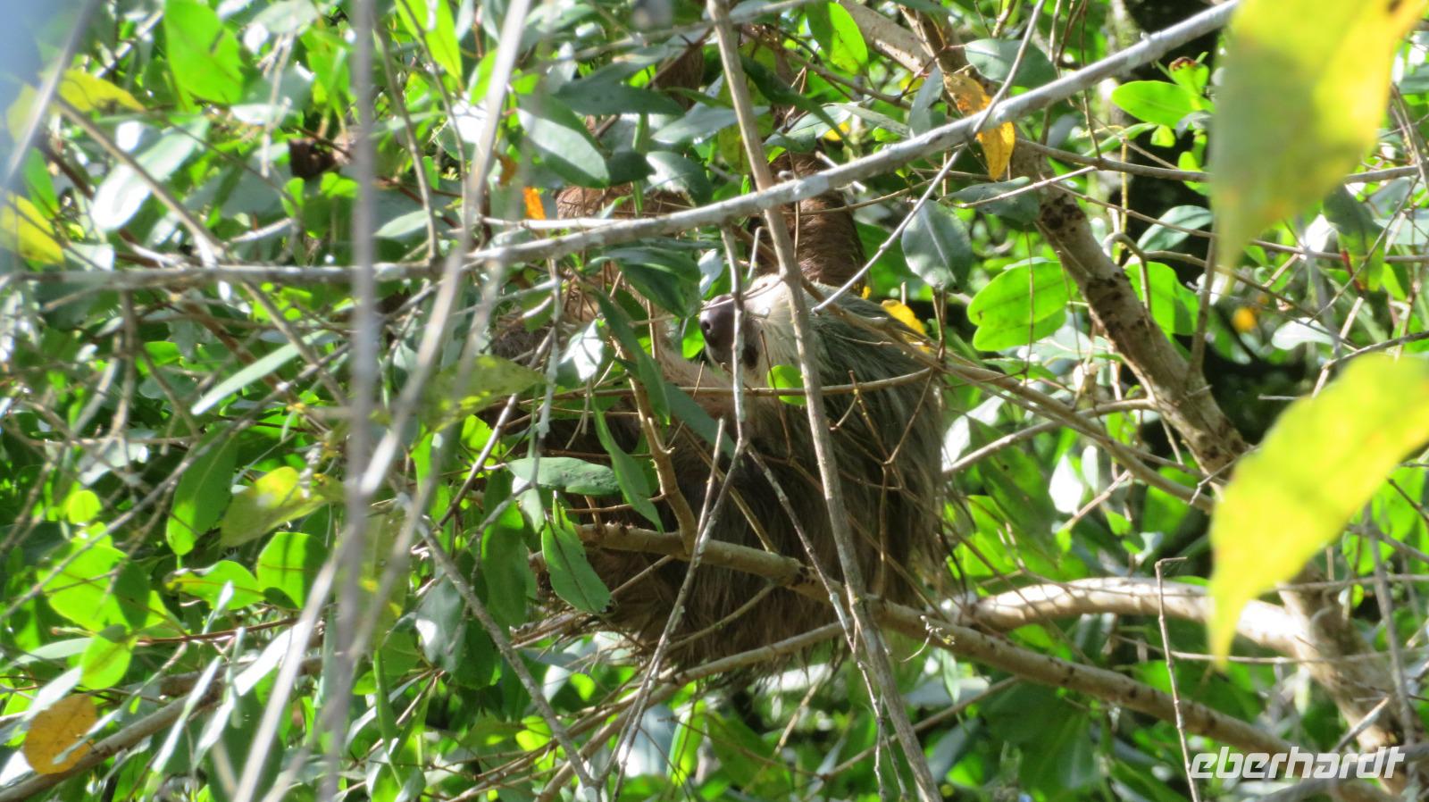 Welches Land kann mehr Vogelarten aufweisen als ganz Europa? Richtig, Costa Rica. Enrique, unsere Reiseleiter vor Ort, holt uns am Hafen ab und nach nicht einmal einer Minute entdecken wir schon das erste Faultier. Um es vorneweg zu nehmen, auf meiner letzten Rundreise durch Costa Rica habe ich in 16 Tagen 3 Faultiere gesehen. An diesem Tag werden es geschätzte 15 Tiere. Doch der Reihe nach. Als erstes geht es mit dem Bus zu den Kanälen von Tortugero. Hier wechseln wir das Fortbewegungsmittel und schippern rund zwei Stunden durch die Kanäle. Unser Fahrer, Enrique und seine Frau haben geschärfte Augen, denn sie sehen einfach alles. Daher wird es nie langweilig, da sie ständig neue Vögel, Faultiere, Affen, Leguane, Echsen und Basilisken enttarnen.