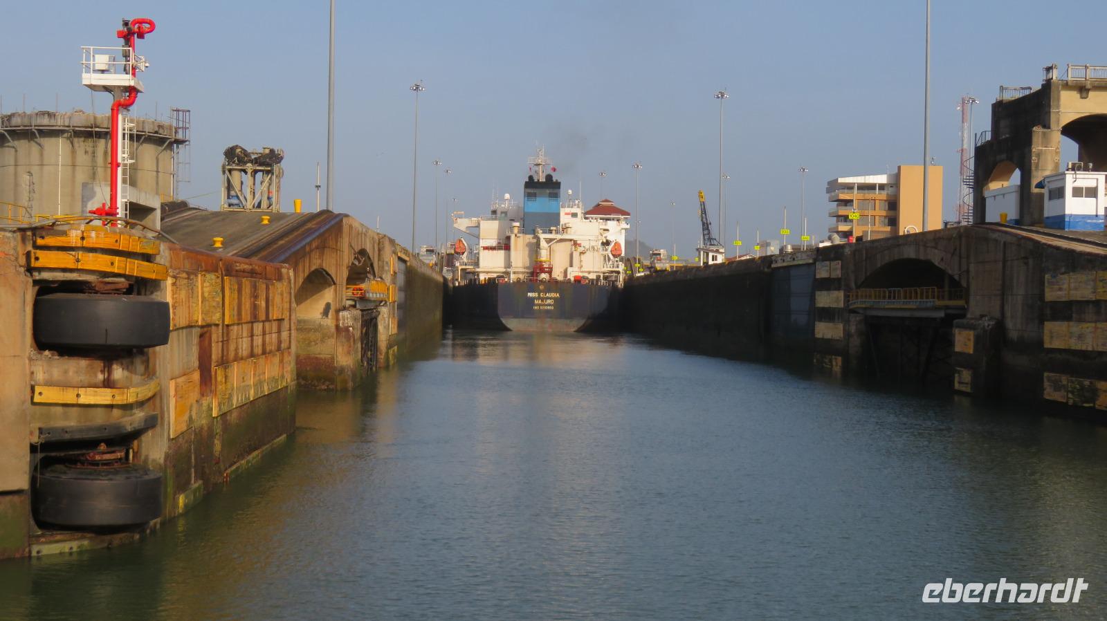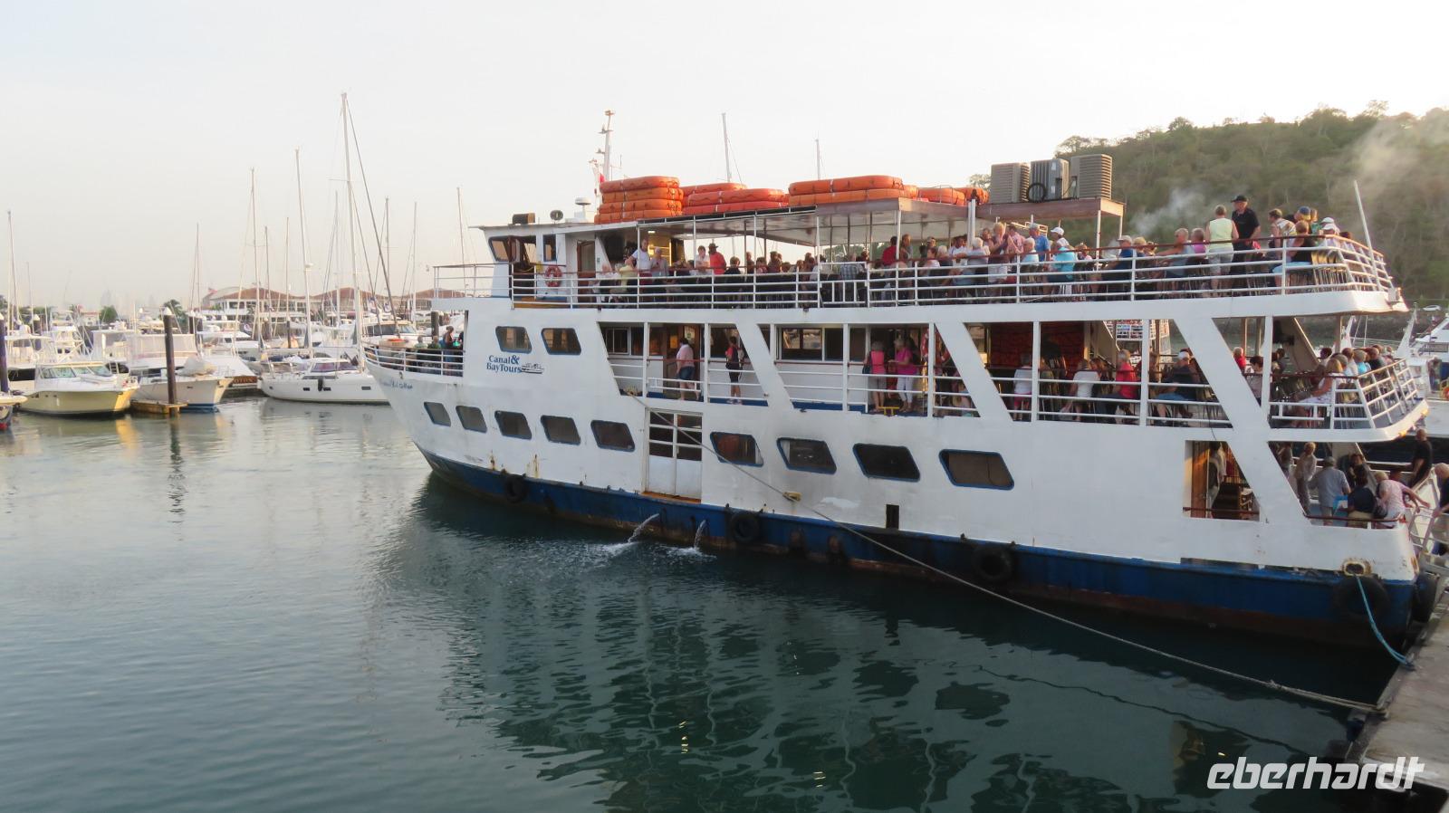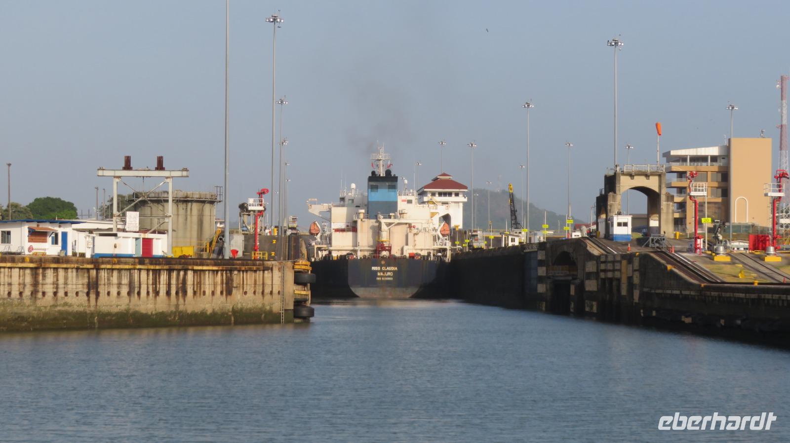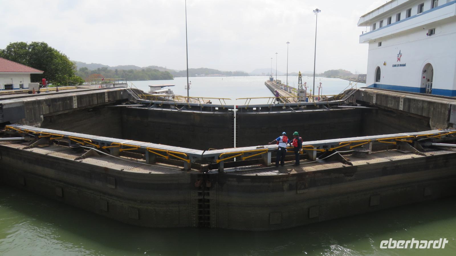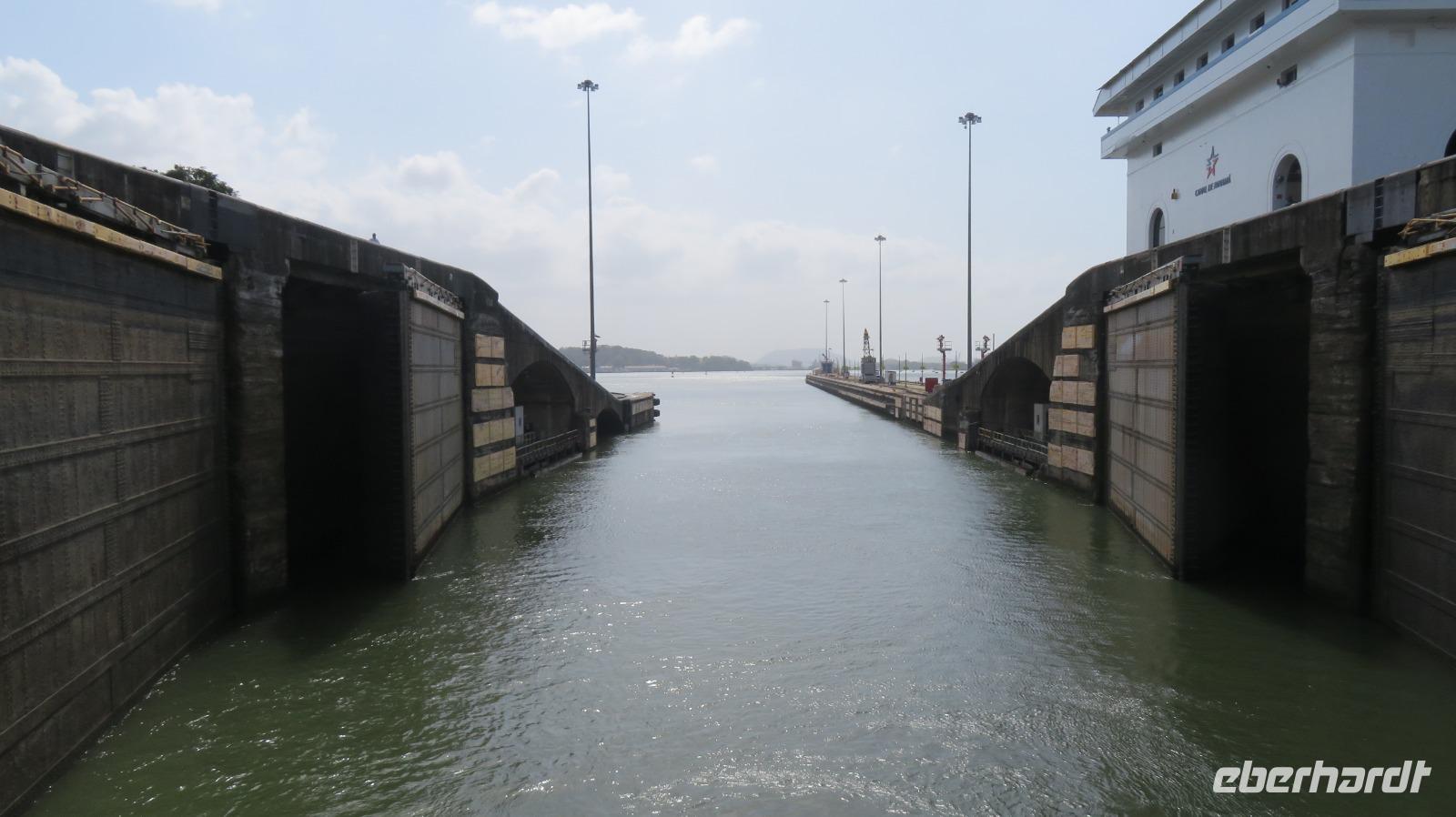 Wir befahren heute nicht die komplette Länge des Kanals, denn das würde 8 bis 10 Stunden dauern. Daher lernen wir heute die Miraflores Schleuse und die Pedro Miguel Schleuse kennen. Es ist einfach imposant, wenn man in eine 1 Kilometer lange Schleuse hineinfährt und dann mehrere Meter nach oben befördert wird. Nach den beiden Schleusen, die aus mehreren kleinen Schleusen besteht, schippern wir noch eine Weile durch den Kanal ehe uns unser Bus und der gut gelaunte Reiseleiter wieder zu unserem großen Schiff zurückbringt.