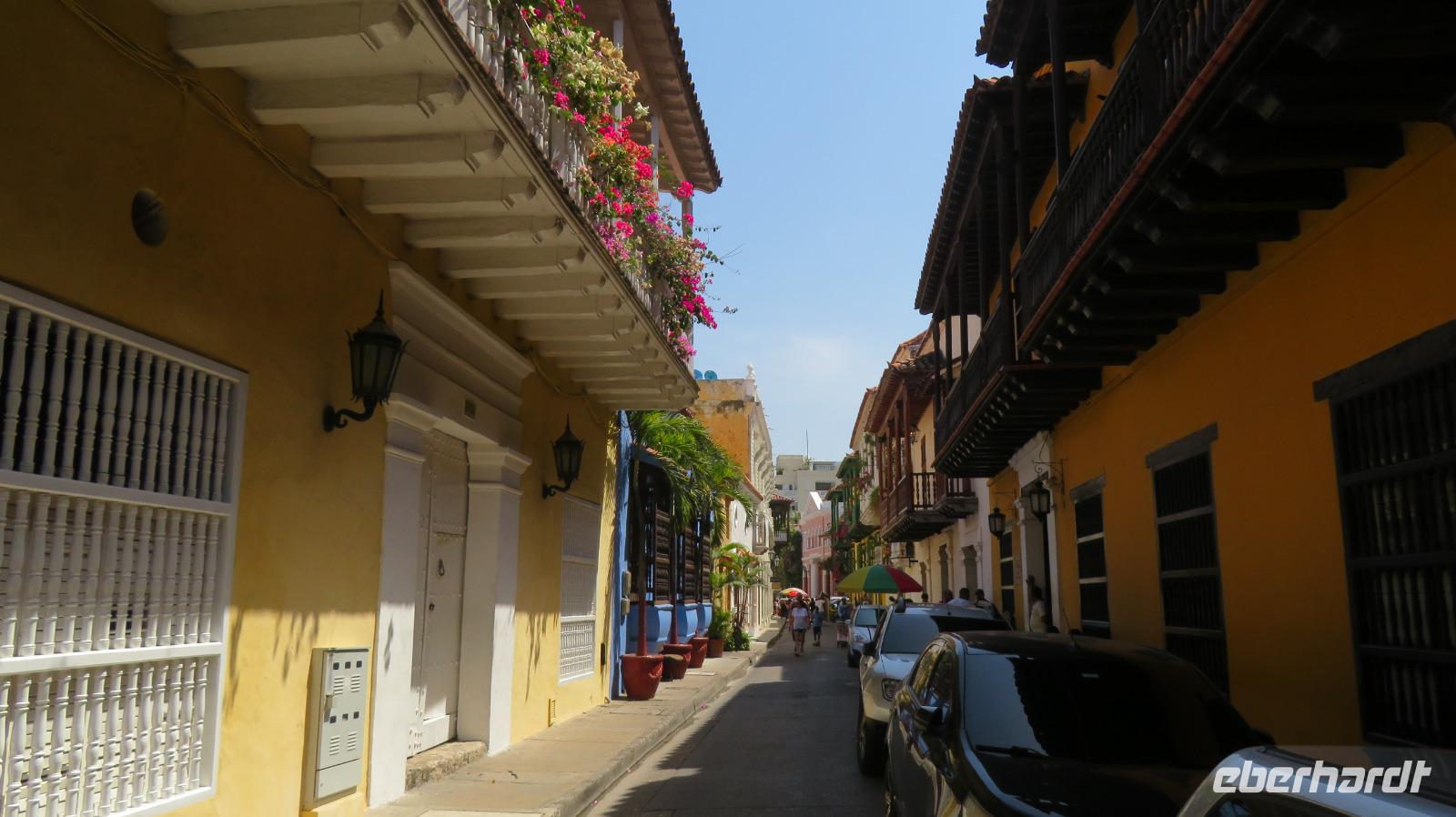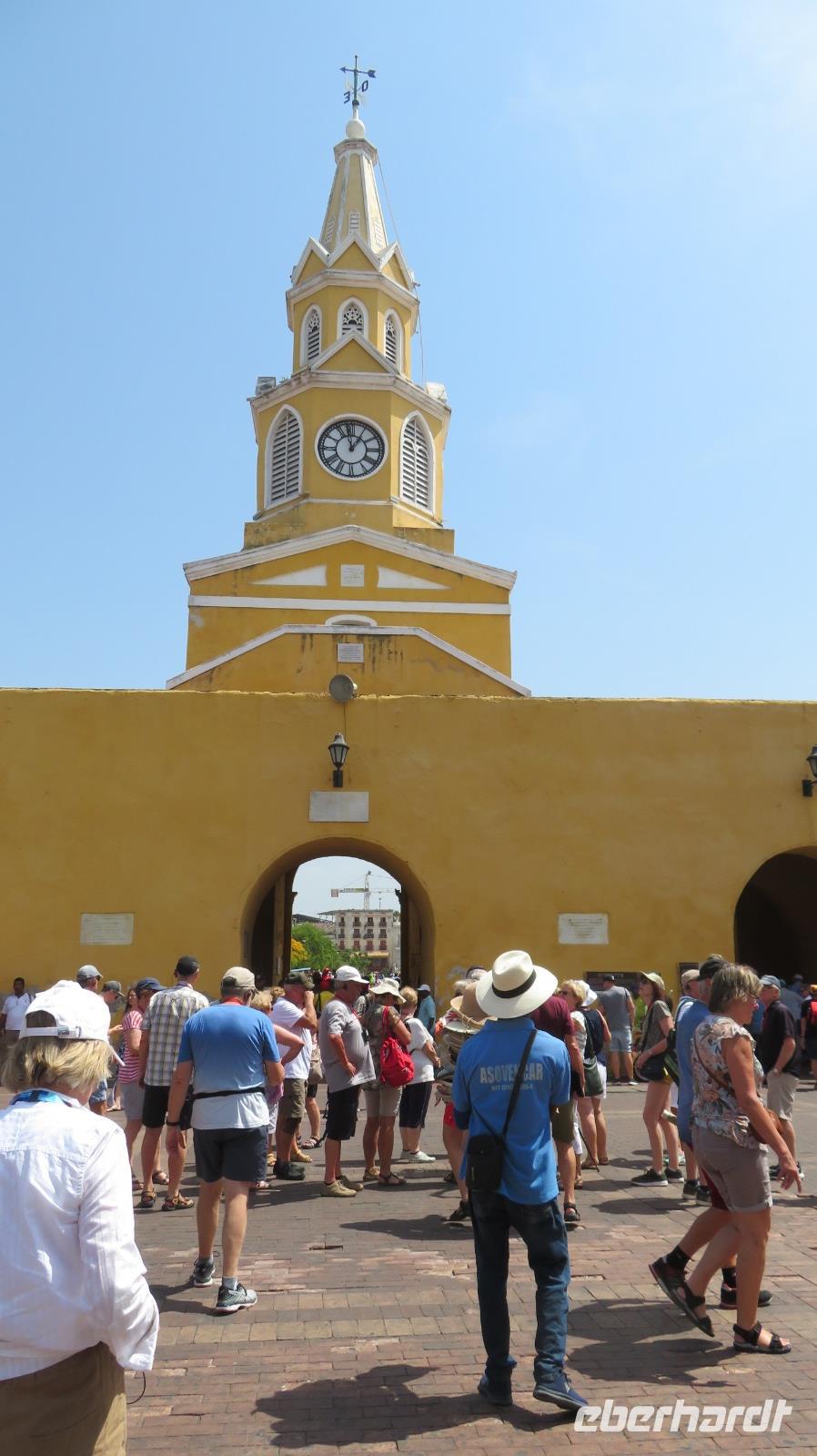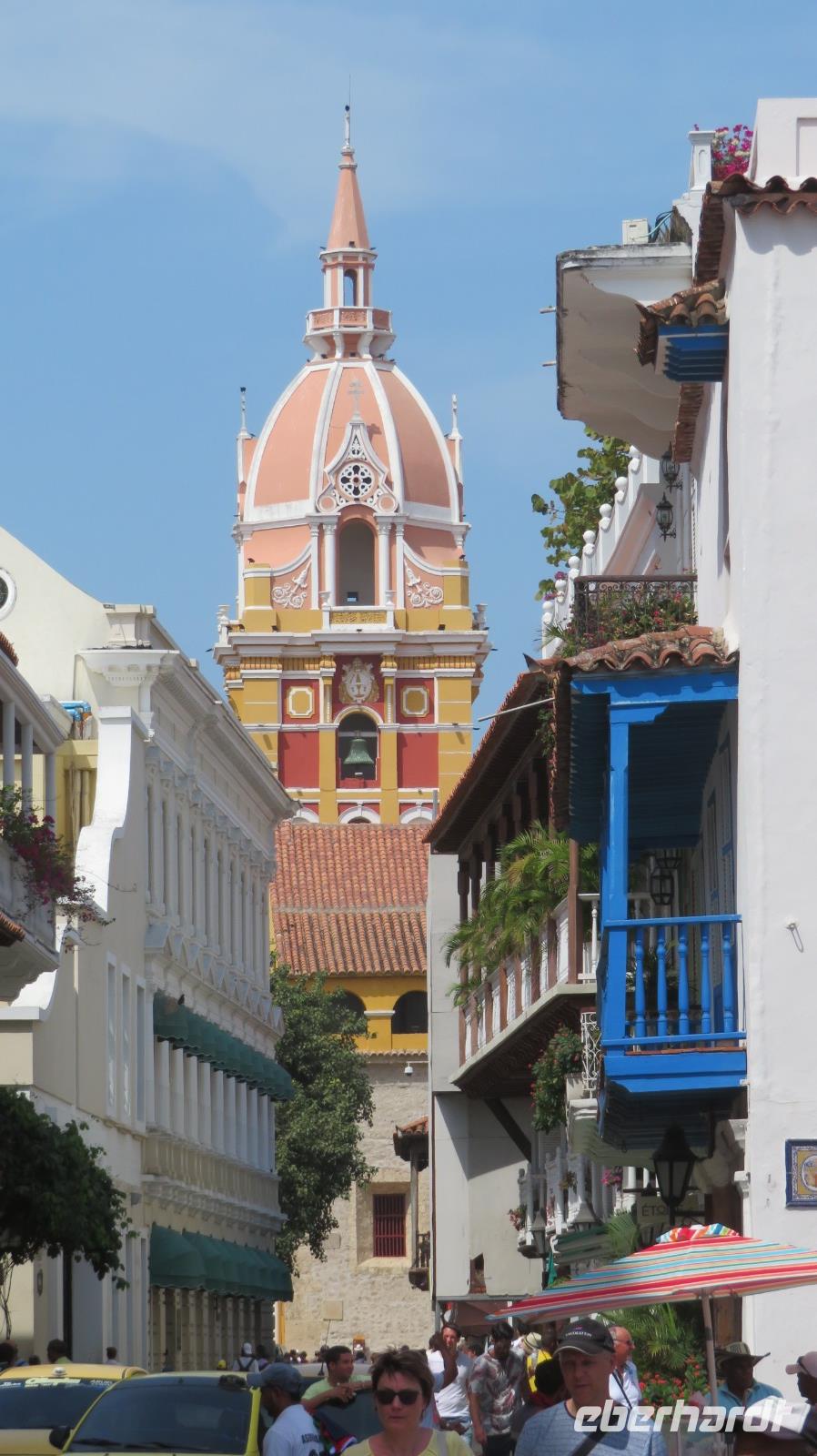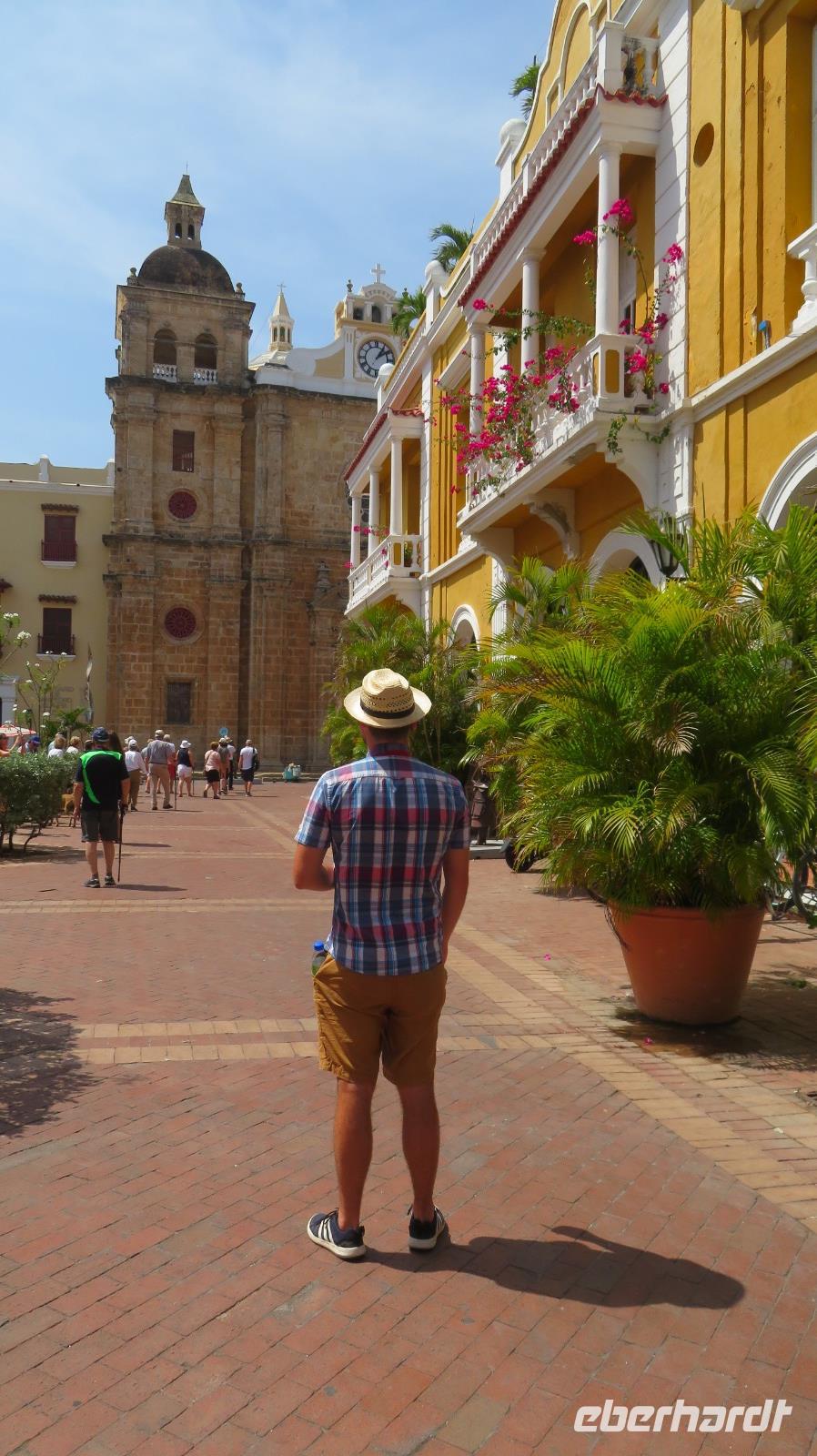 Das letzte neue Land auf unserer Kreuzfahrt ist Kolumbien mit der Hafenstadt Cartagena. Ein Teil der Gruppe unternimmt heute mit mir den Stadtrundgang durch Cartagena. Als erstes fahren wir mit dem Bus zum San Felipe Kastell. Das Meisterwerk spanischer Baukunst ist eine imposante Festung aus dem 16. Jahrhundert. Nicht weniger imposant sind die fliegenden Händler, die von allen Seiten uns etwas verkaufen wollen. Bevor wir am Parque de la Marina den Bus verlassen und zu einem rund 1,5 stündigen Spaziergang aufbrechen, bekommen wir die Möglichkeit ein Andenken in den hiesigen Shops zu erwerben. Die Altstadt von Cartagena gehört seit 1984 zum UNESCO Weltkulturerbe und gehört zu den schönsten Kolonialstädten Südamerikas. Dies empfinden wir ebenso. In der Altstadt kommt uns ein alter Oldtimer entgegen, die Türen und die Balkone sind groß und hölzern und an jeder Ecke herrscht ein buntes Treiben. Wir laufen an der Santo Domingo Kirche, der Kathedrale und dem Uhrenturm vorbei, staunen über die Künste eines Malers und lauschen einer künstlerischen Darbietung.